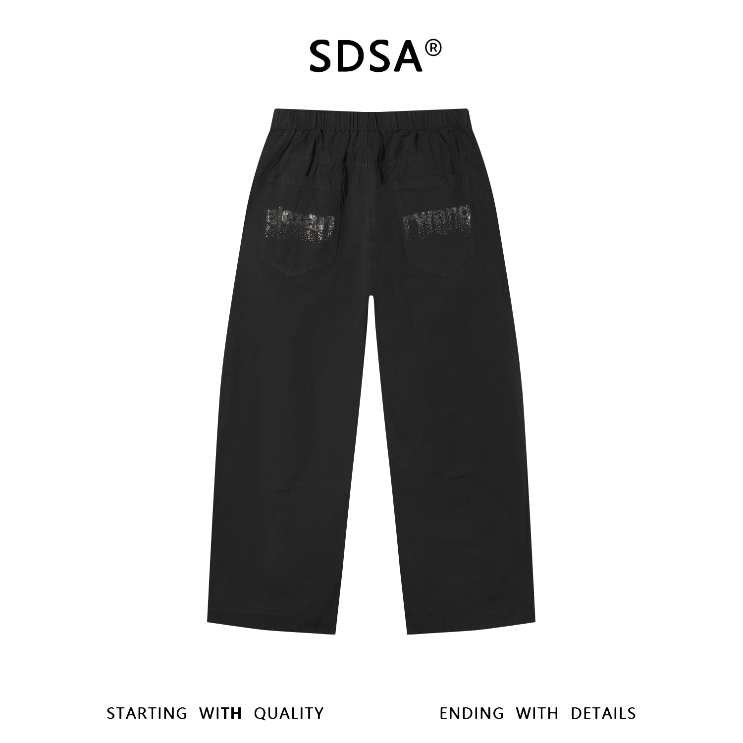 SDSA男装2026新款轻奢舒适后背烫钻字母黑色休闲裤美式街头宽松