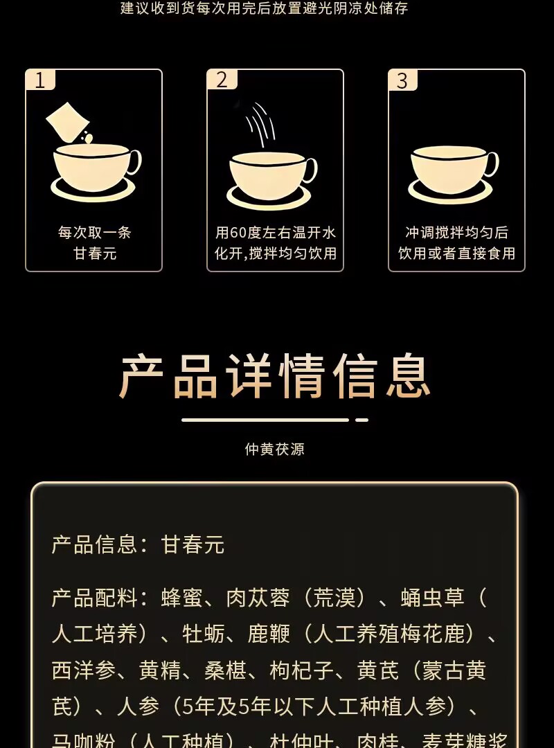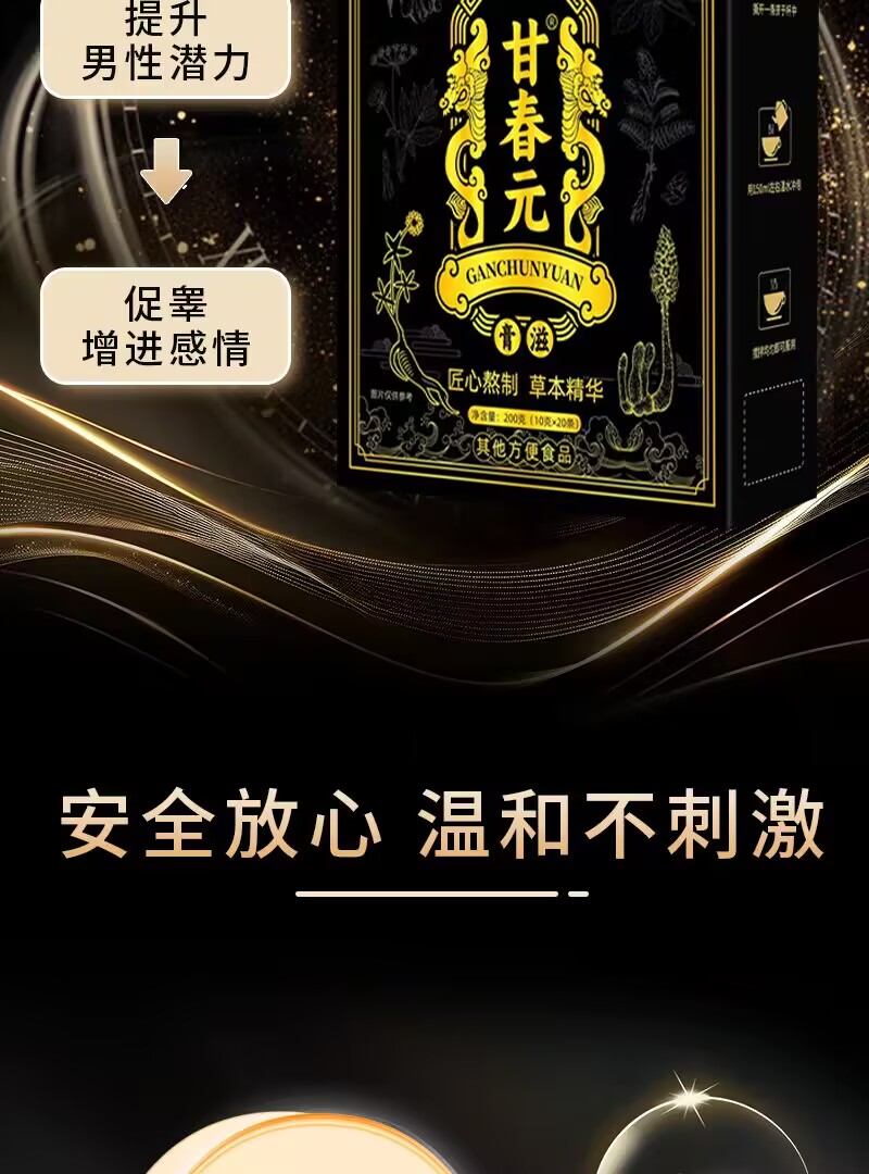 甘春元是非常适合男性应用的保健产品,在其中所包含的人参和黄精,还有玛咖粉和黑枸杞以及鹿鞭等原材料,都能够起到一定的滋补功效,服用以后可以帮助改善肾虚引起的腰膝酸软等症状,并且坚持服用还可以帮助有效改善性生活质量低下以及性生活时间短的问题,对于男性朋友是非常友好的,可以帮助有效提高男性性生活功能。