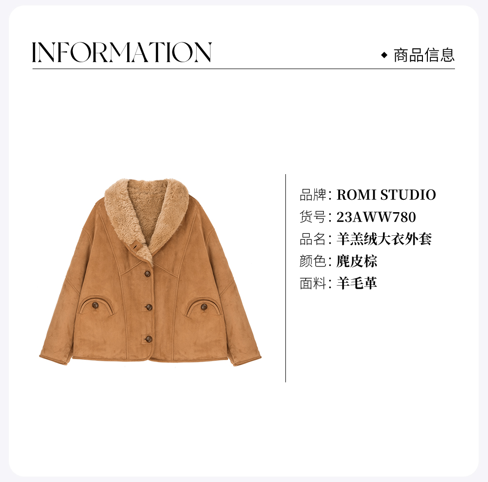 ROMI STUDIO进口冰岛腔调穿搭皮毛一体羊羔绒大衣外套23AWW780
