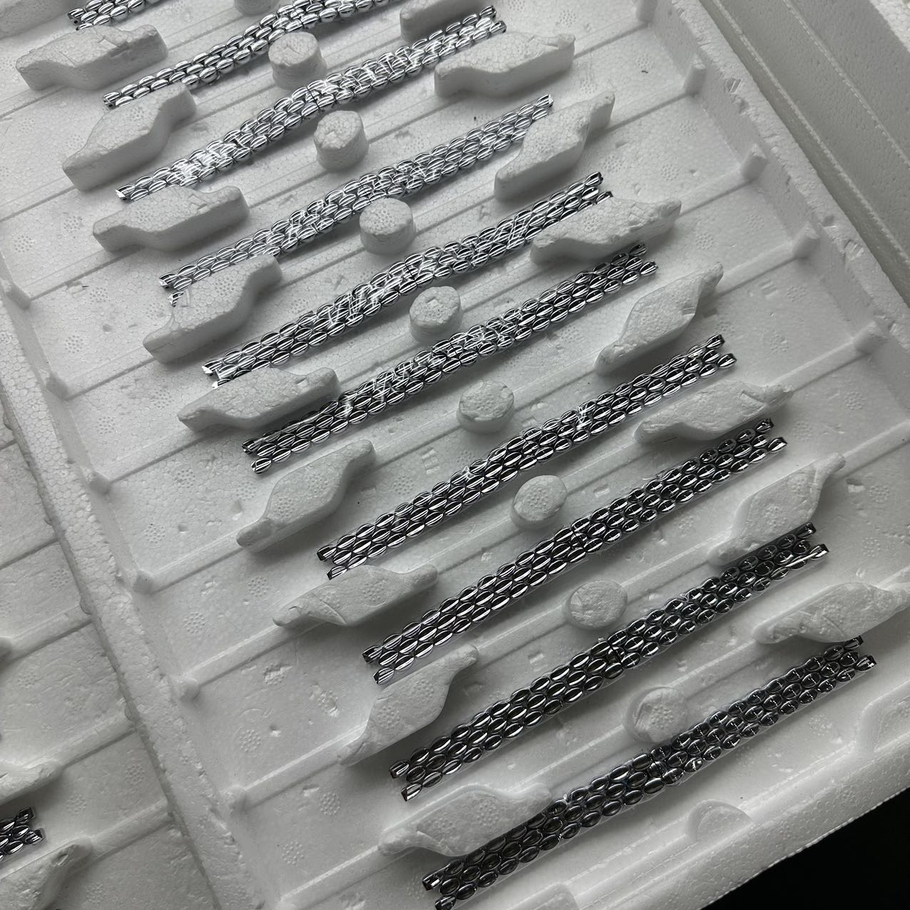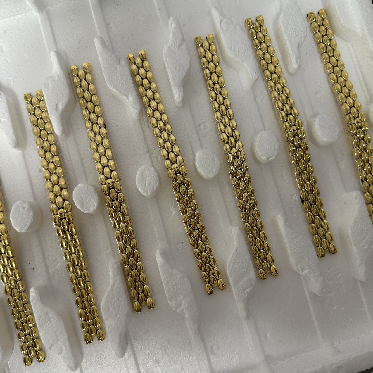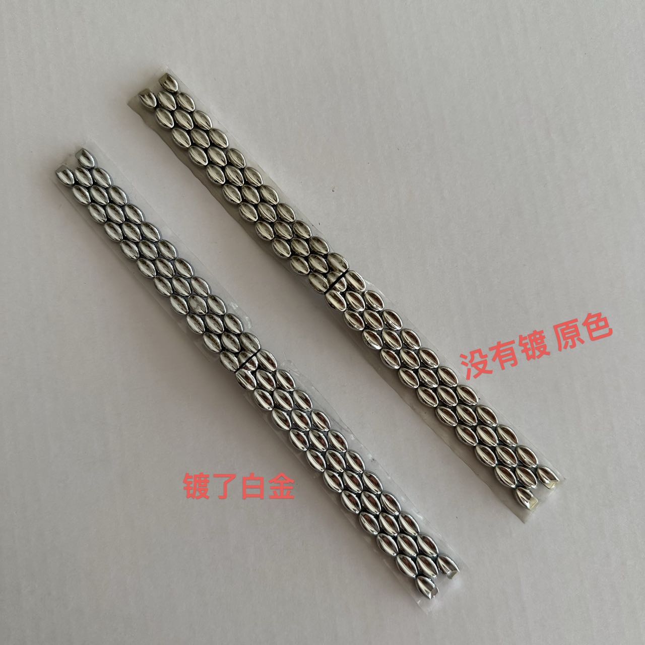 纯手工制作编织表带,都是一粒一粒加工,手工编排,因为其又小粒又像瓜子一样,不是原厂数据跟大厂,一般的无法制作