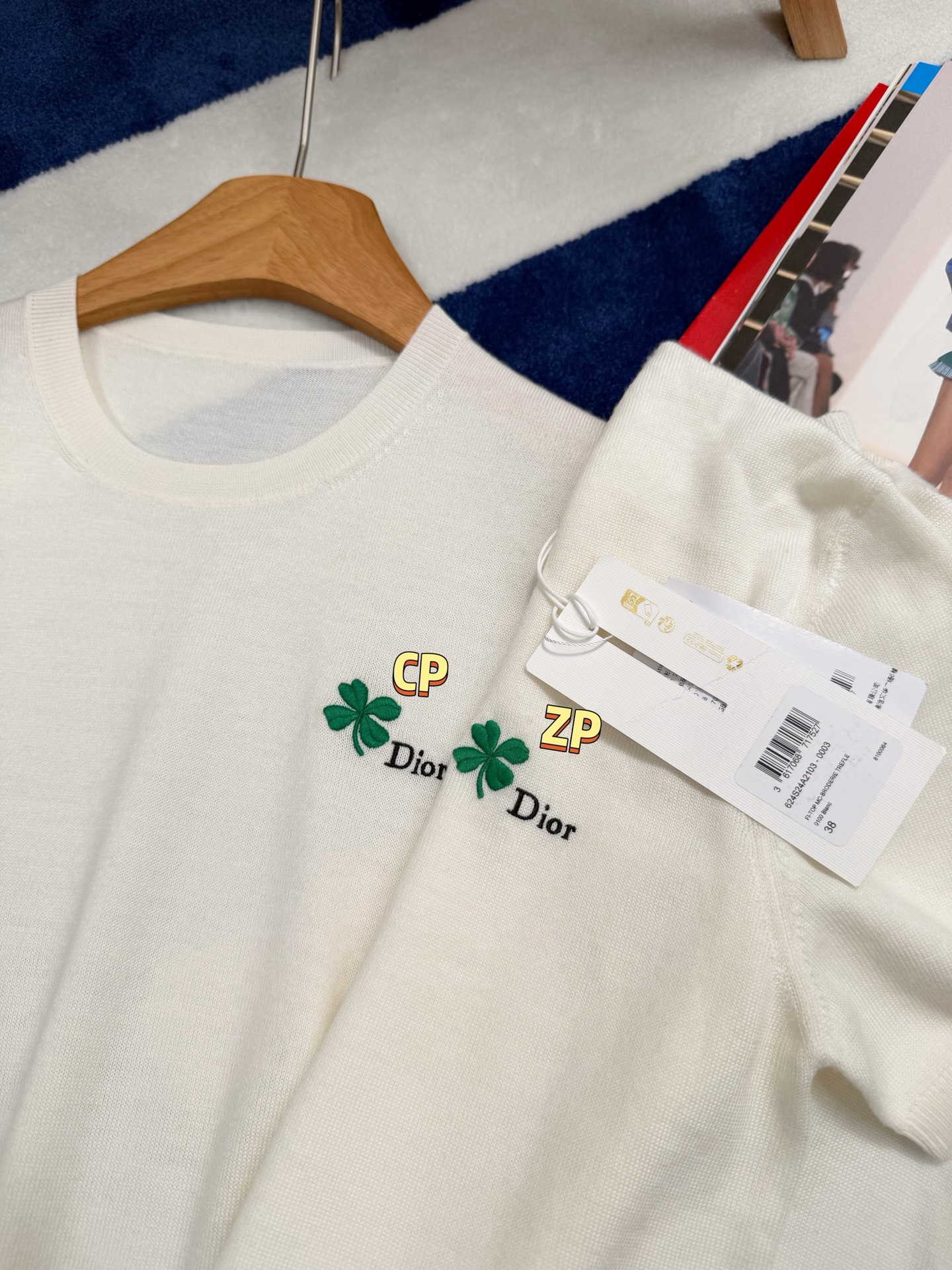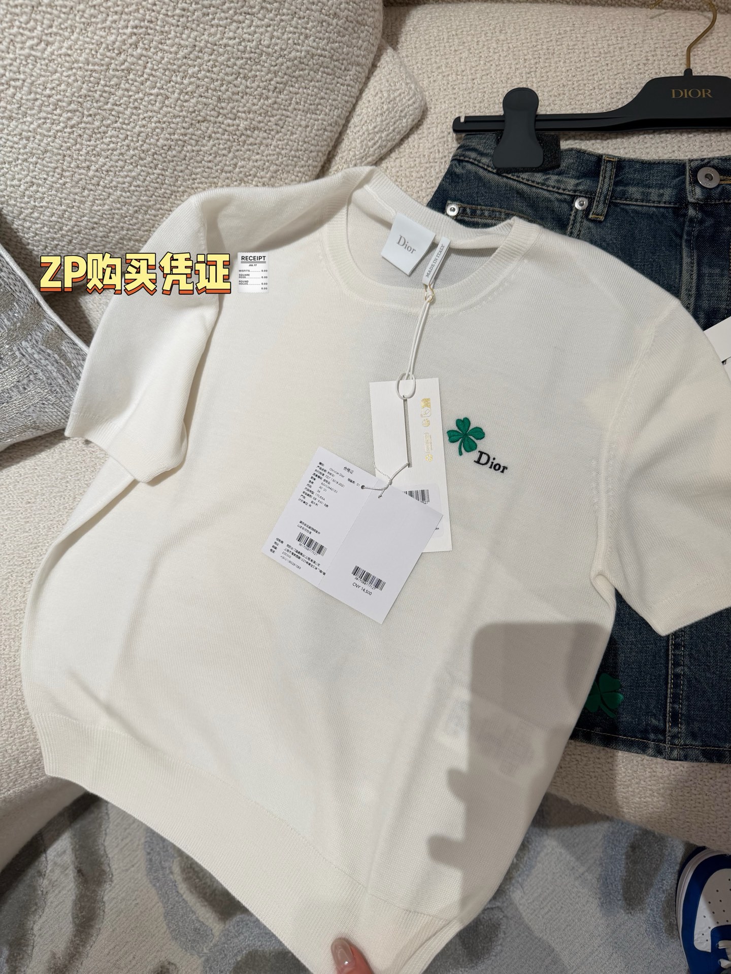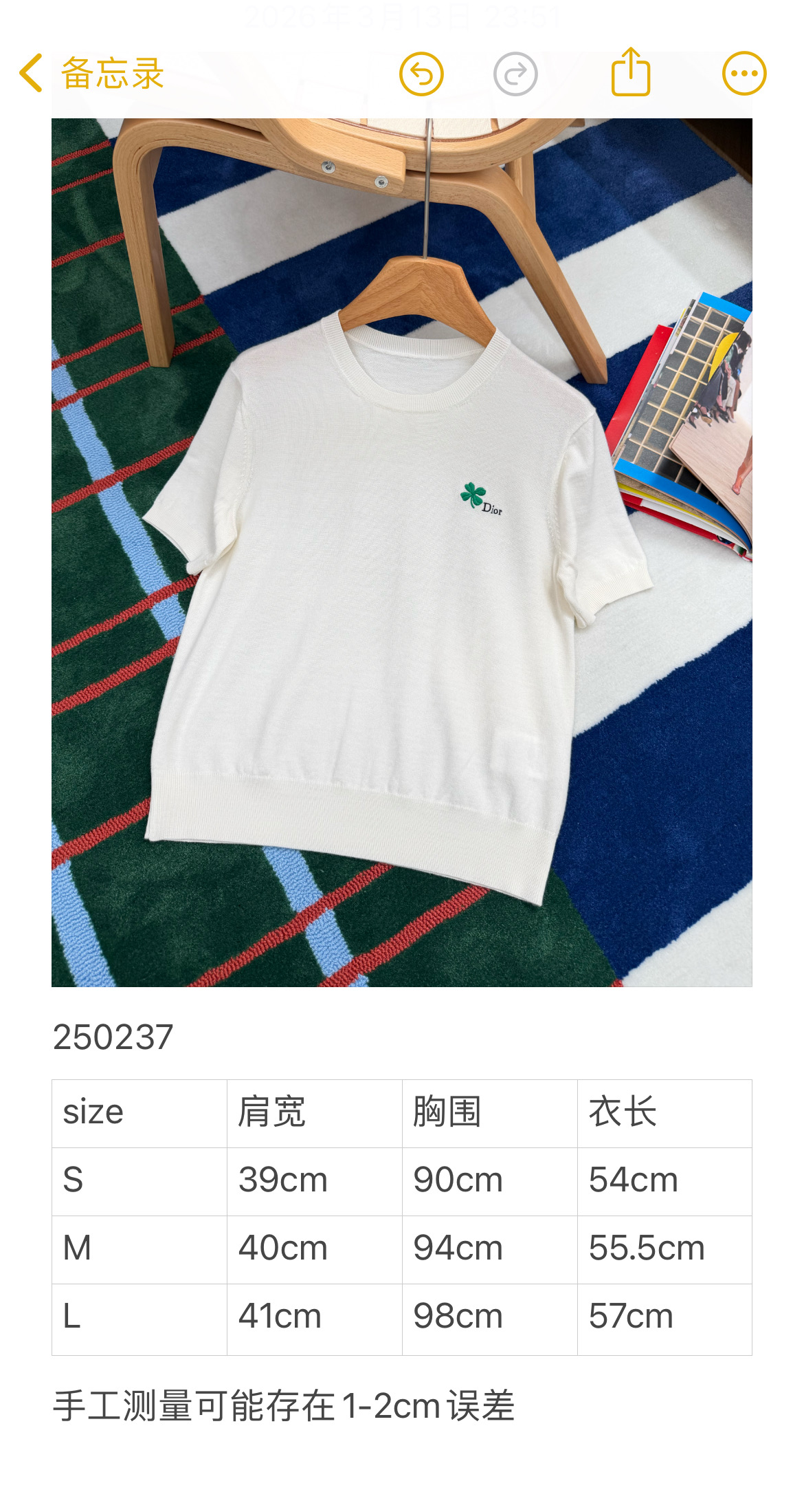 【新款现货发售】D家26Ss最新款白色针织短袖✨ 明星同款氛围感拉满🔝自带幸运四叶草刺绣标识🍀 温柔又显贵,人手必入的氛围感单品〰️特殊定制纱线🧶 软糯亲肤又透气,白色自带高级滤镜,是质感天花板没错了‼️利落圆领➕修身短袖设计,简约不挑人🥳单穿显瘦、叠穿随性,松弛感直接拉满〰️精致四叶草刺绣点缀,低调藏着小心机,工艺感与现代美学完美融合,时髦精闭眼冲😜码数SML