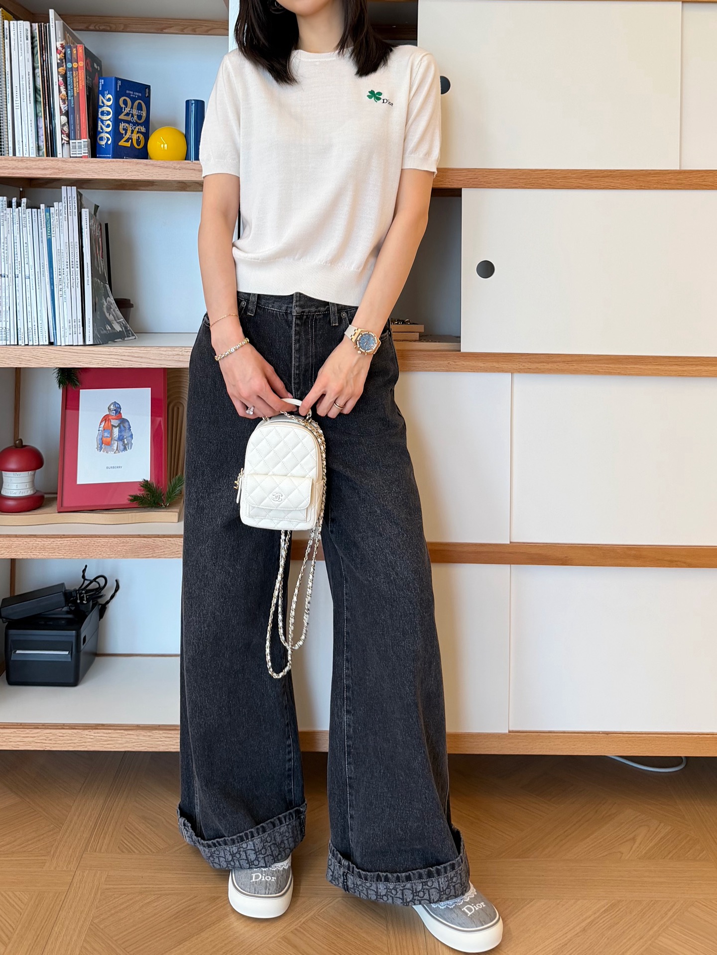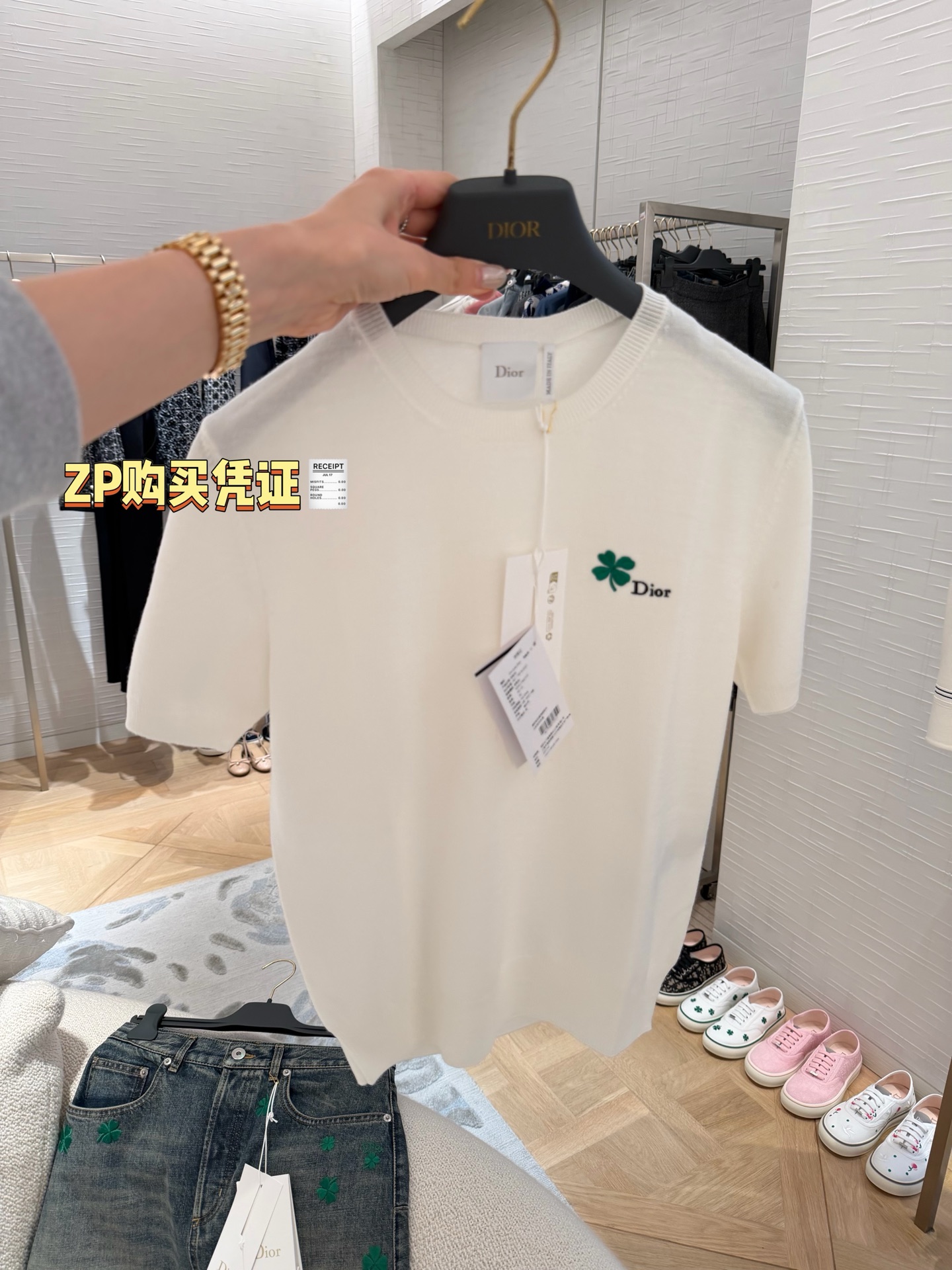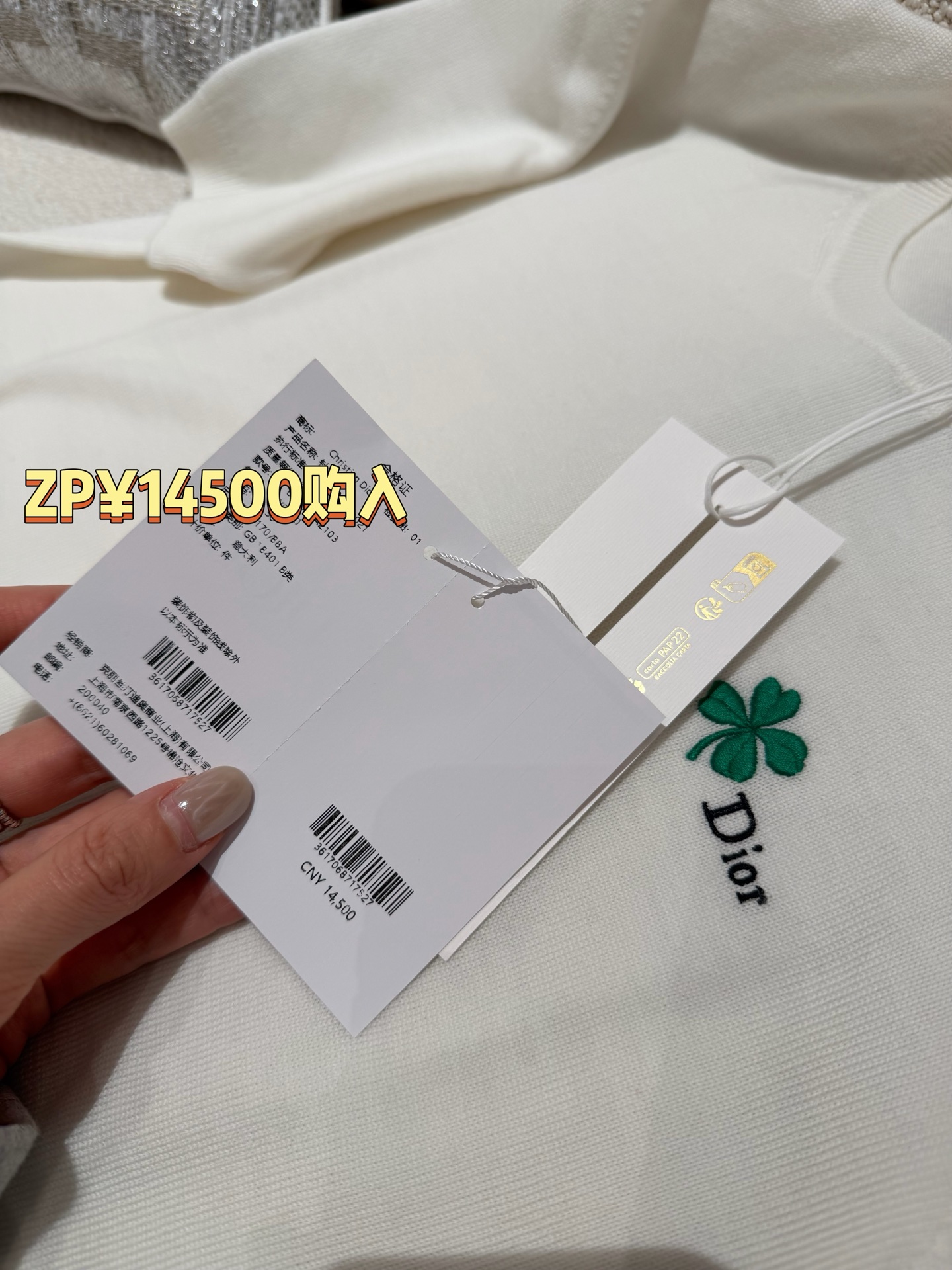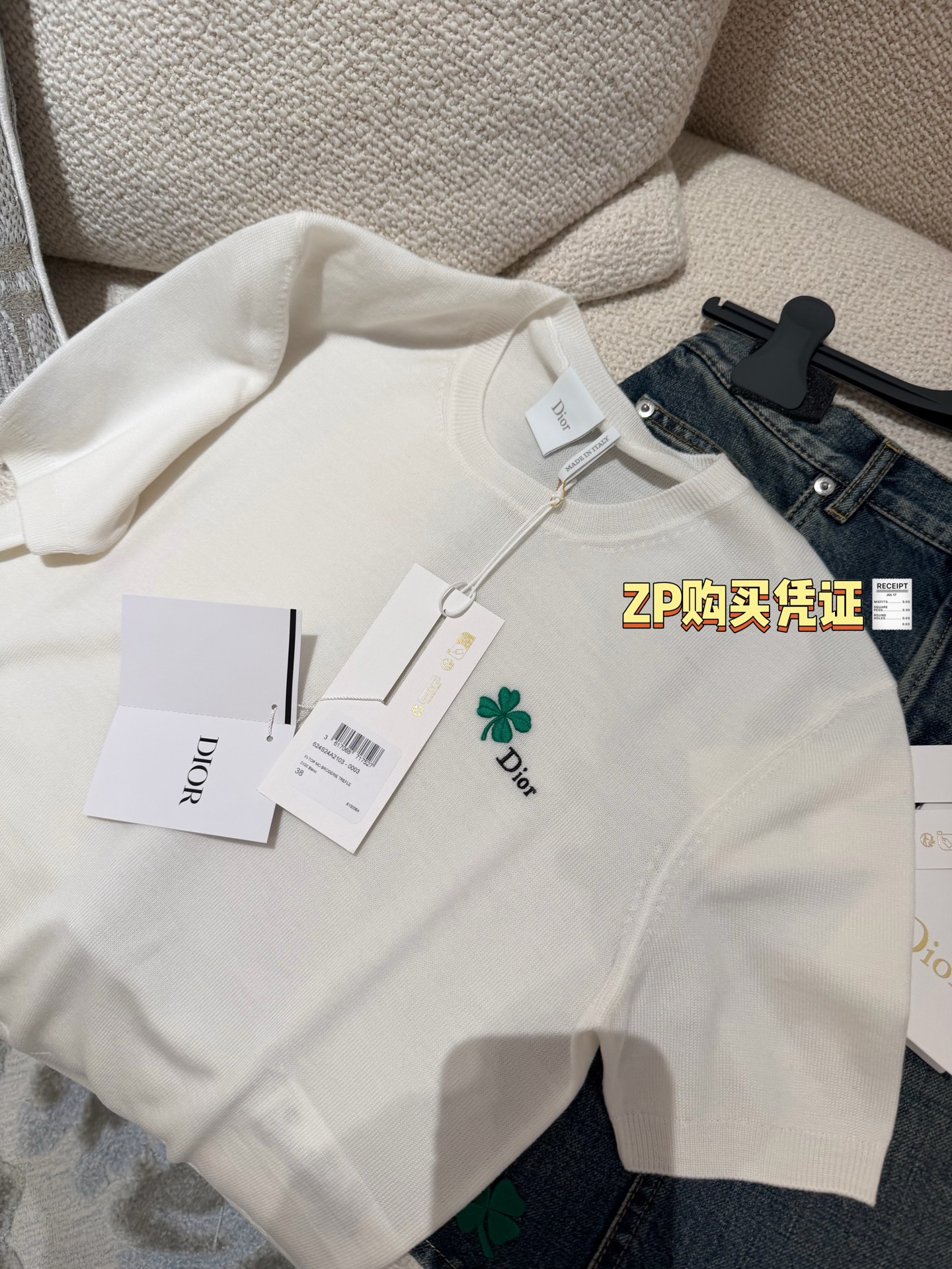 【新款现货发售】D家26Ss最新款白色针织短袖✨ 明星同款氛围感拉满🔝自带幸运四叶草刺绣标识🍀 温柔又显贵,人手必入的氛围感单品〰️特殊定制纱线🧶 软糯亲肤又透气,白色自带高级滤镜,是质感天花板没错了‼️利落圆领➕修身短袖设计,简约不挑人🥳单穿显瘦、叠穿随性,松弛感直接拉满〰️精致四叶草刺绣点缀,低调藏着小心机,工艺感与现代美学完美融合,时髦精闭眼冲😜码数SML