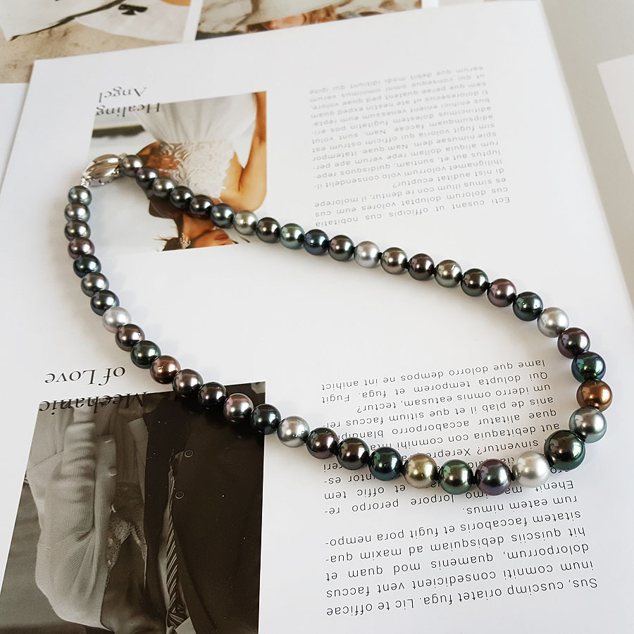 名称 | 收藏级极强晕彩约8.0-10.8MM混彩黑蝶大溪地海水珍珠项链 |