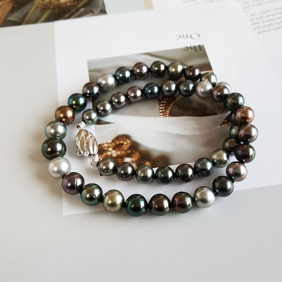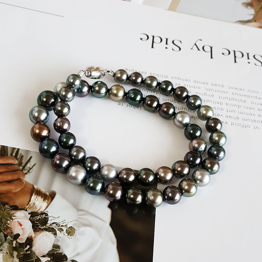 【天然正品】收藏级极强晕彩约8.0-10.8MM混彩黑蝶大溪地海水珍珠项链151224NJM17 现售价:17800