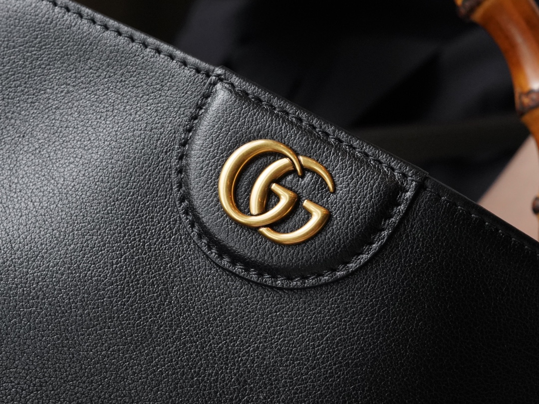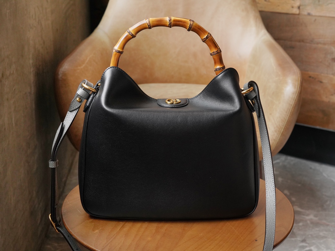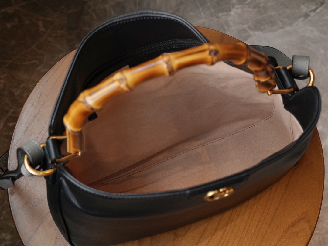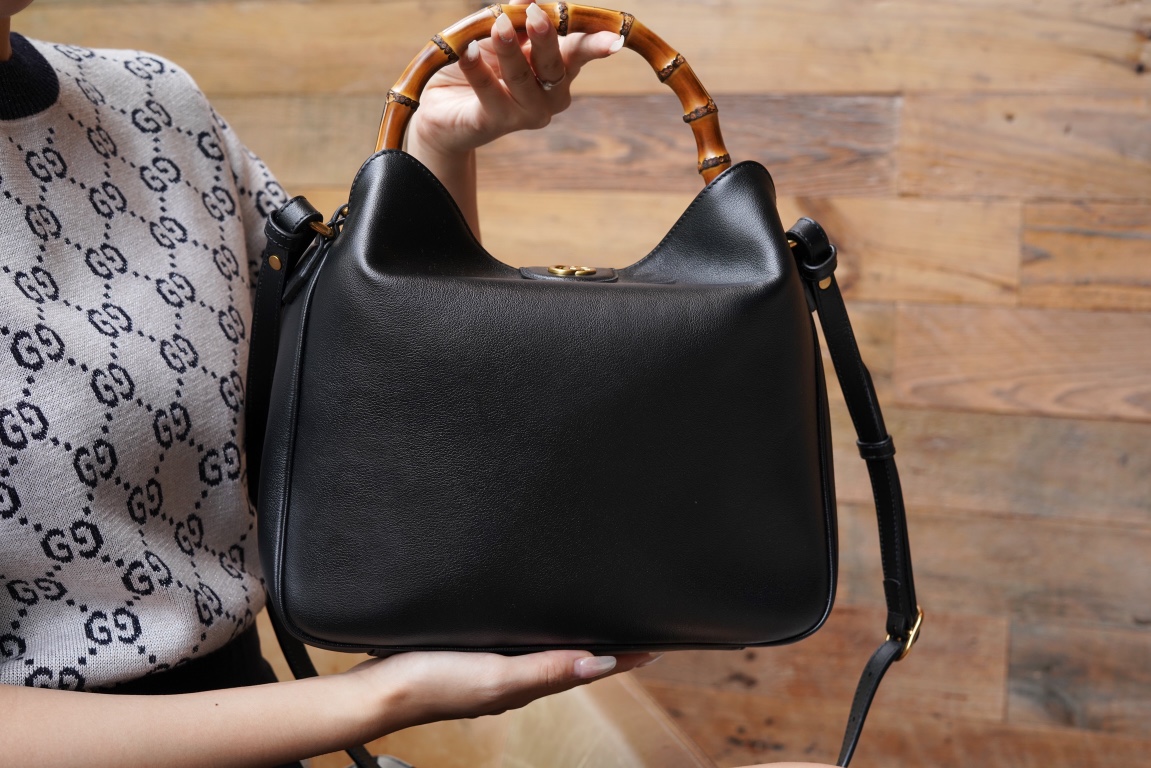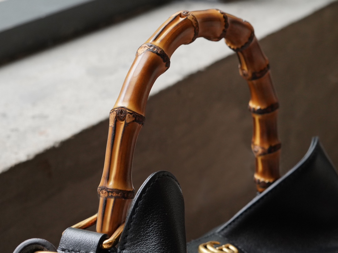 这款中号肩背包巧妙糅合品牌颇具辨识度的两大元素——竹节提手和双G配件,赋予整个造型以独特魅力。这款配饰以黑色皮革匠心打造,配以灰色撞色皮革肩带,令整个设计更加亮眼。