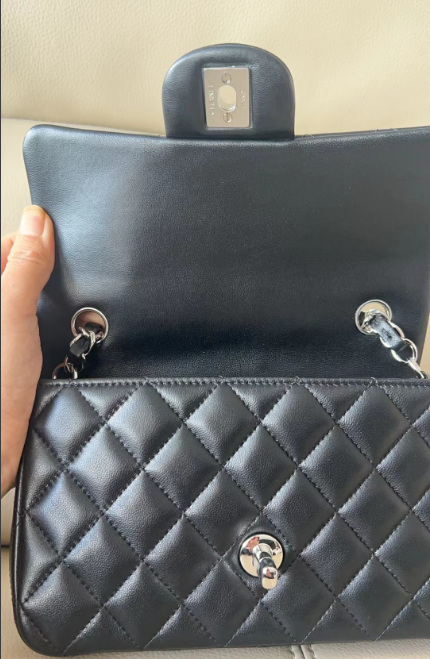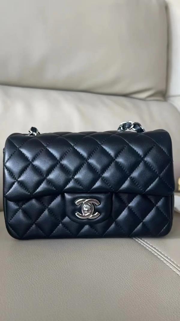 香奶奶 3尺寸! 19BAG金扣链条口盖包斜挎单肩包女款黑色