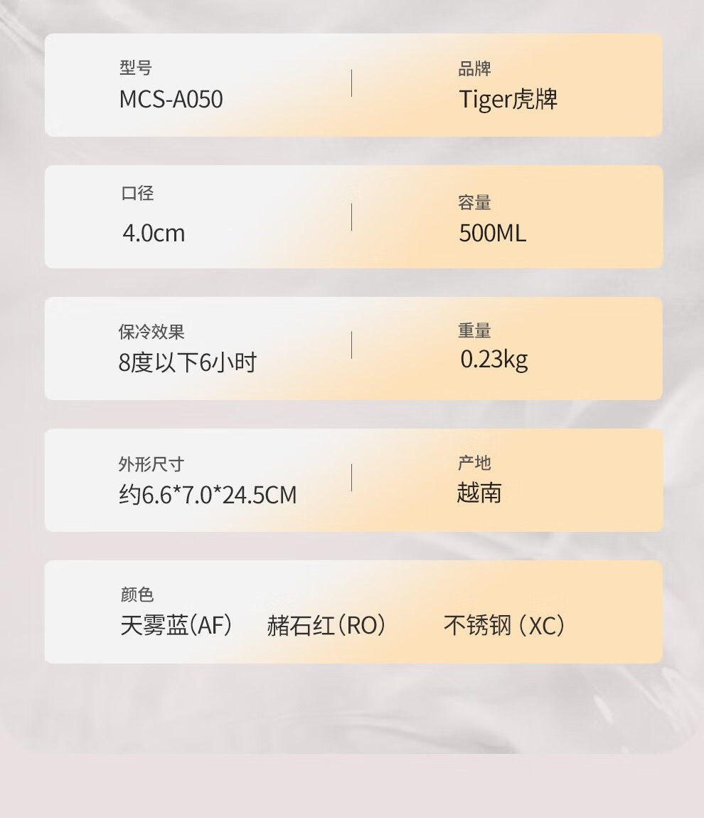 虎牌(TIGER) 虎牌(TIGER)不锈钢吸管保温保冷MCS-A050运动户外高颜值随手杯 不锈钢色(XCT)
