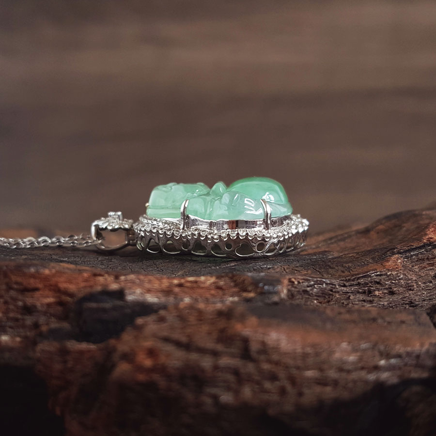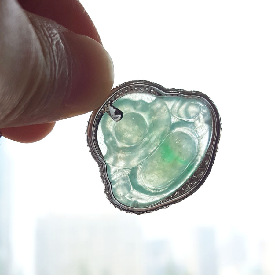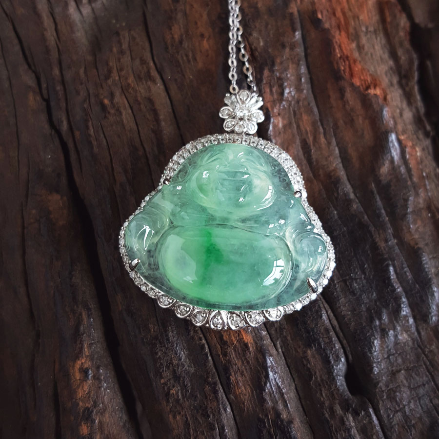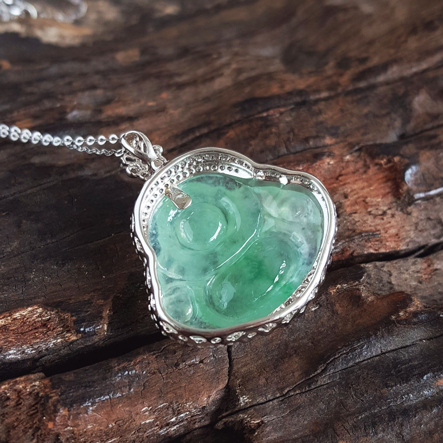名称 | AU750白金豪镶钻镶天然细腻冰种飘阳绿佛公翡翠吊坠项链 |