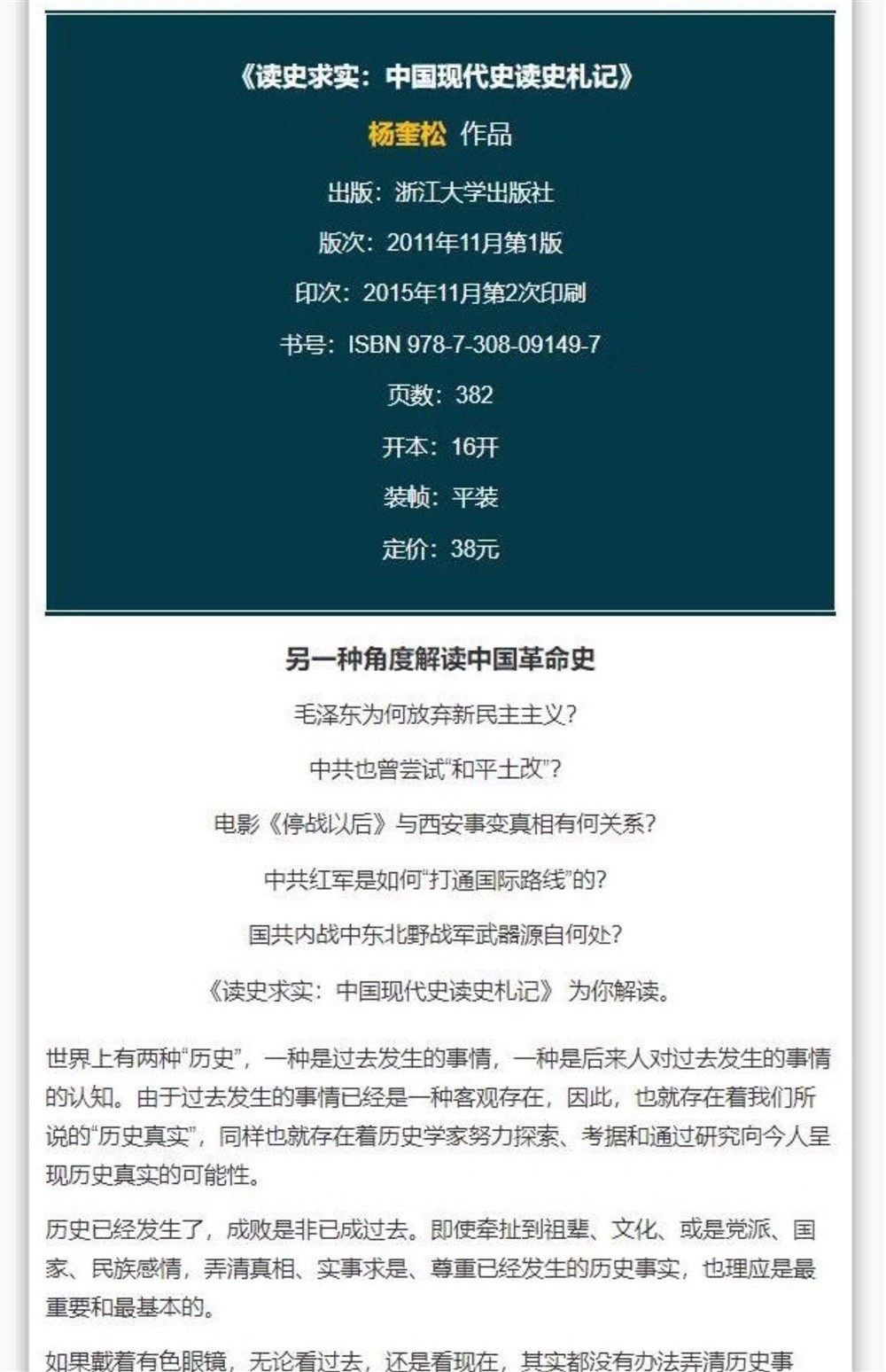 《读史求实: 中国现代史读史札记》 杨奎松 著 浙江大学出版社