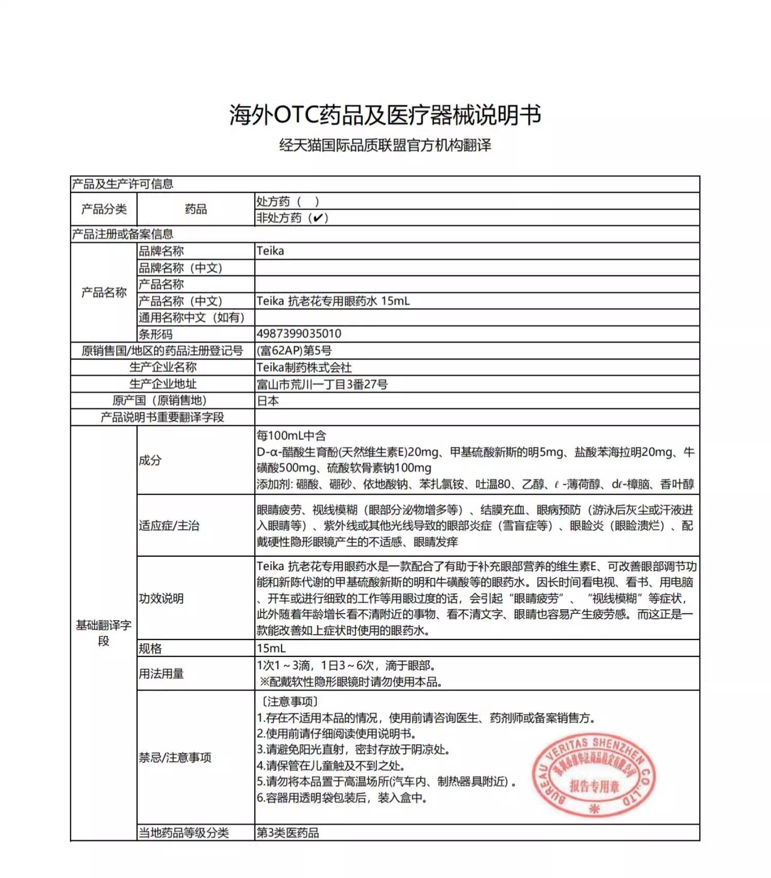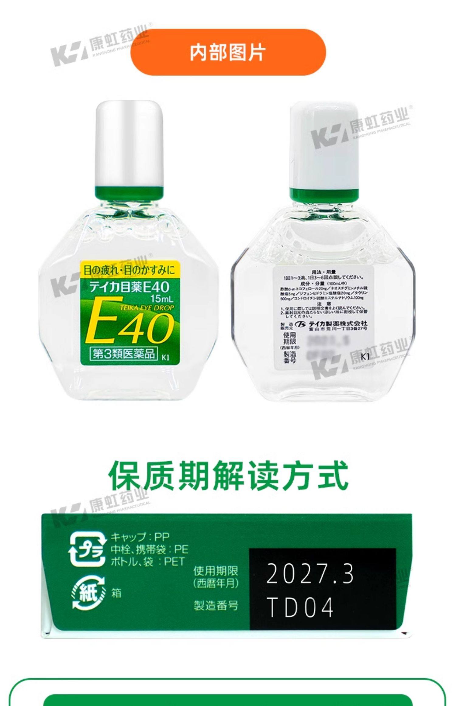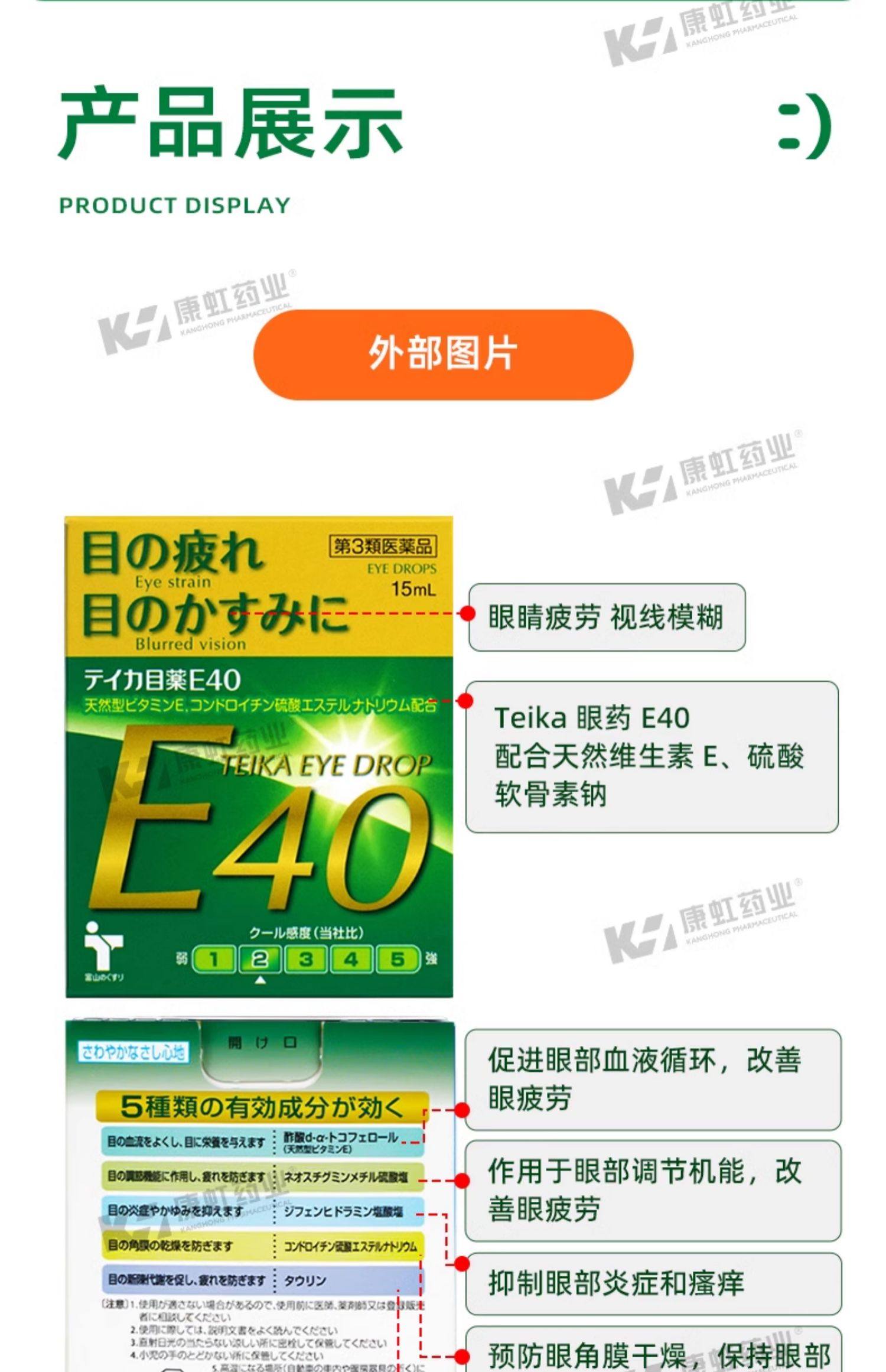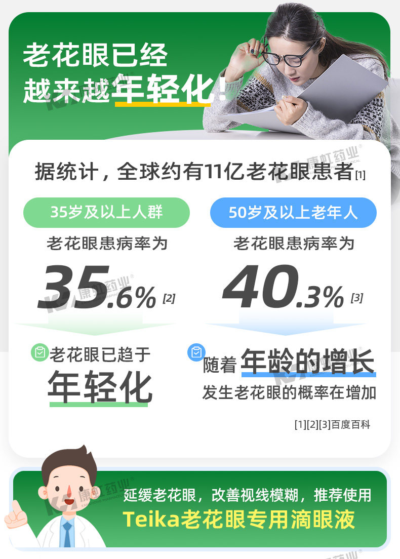 日本teika老花眼专用滴眼液E40眼药水缓解视疲劳眼睛模糊老年人