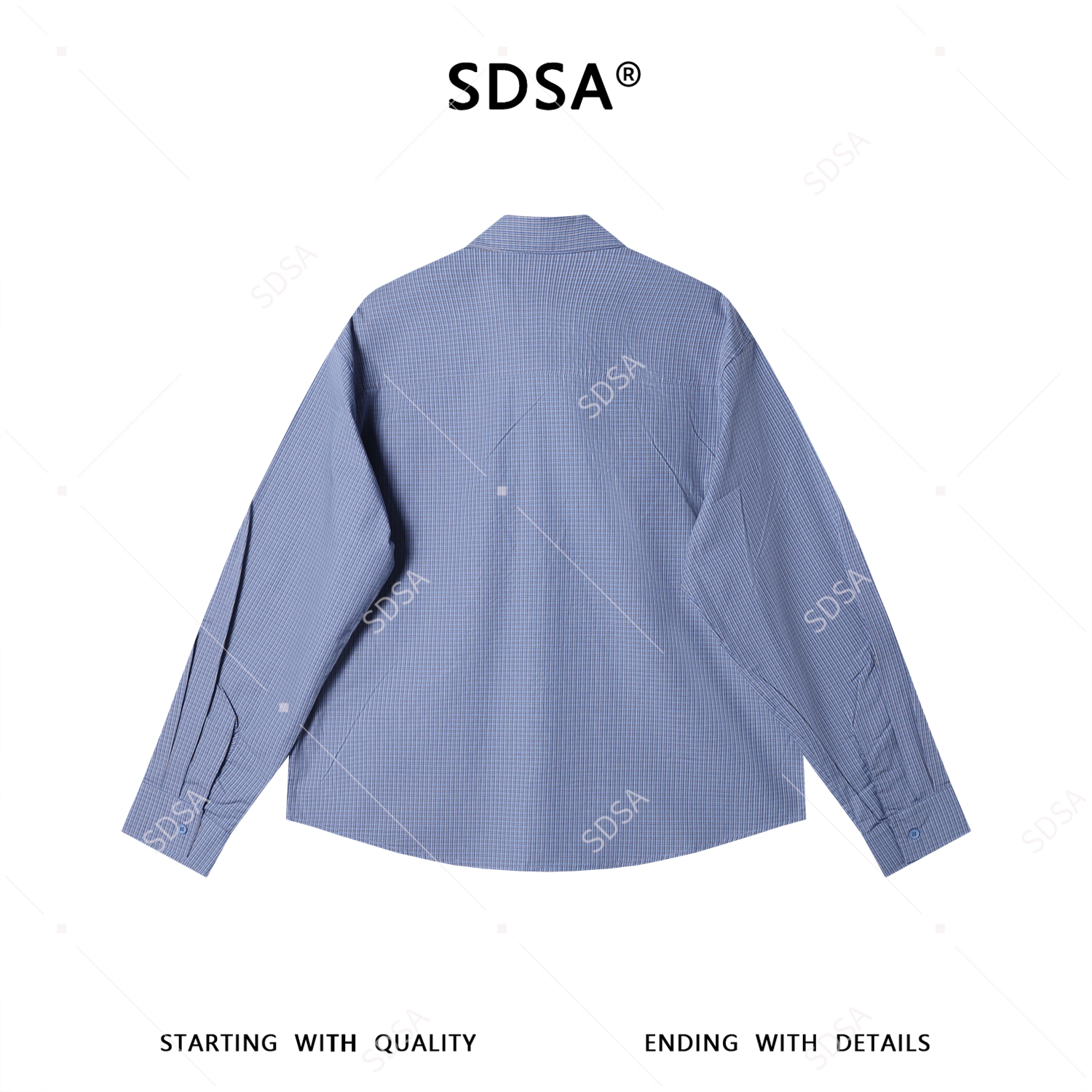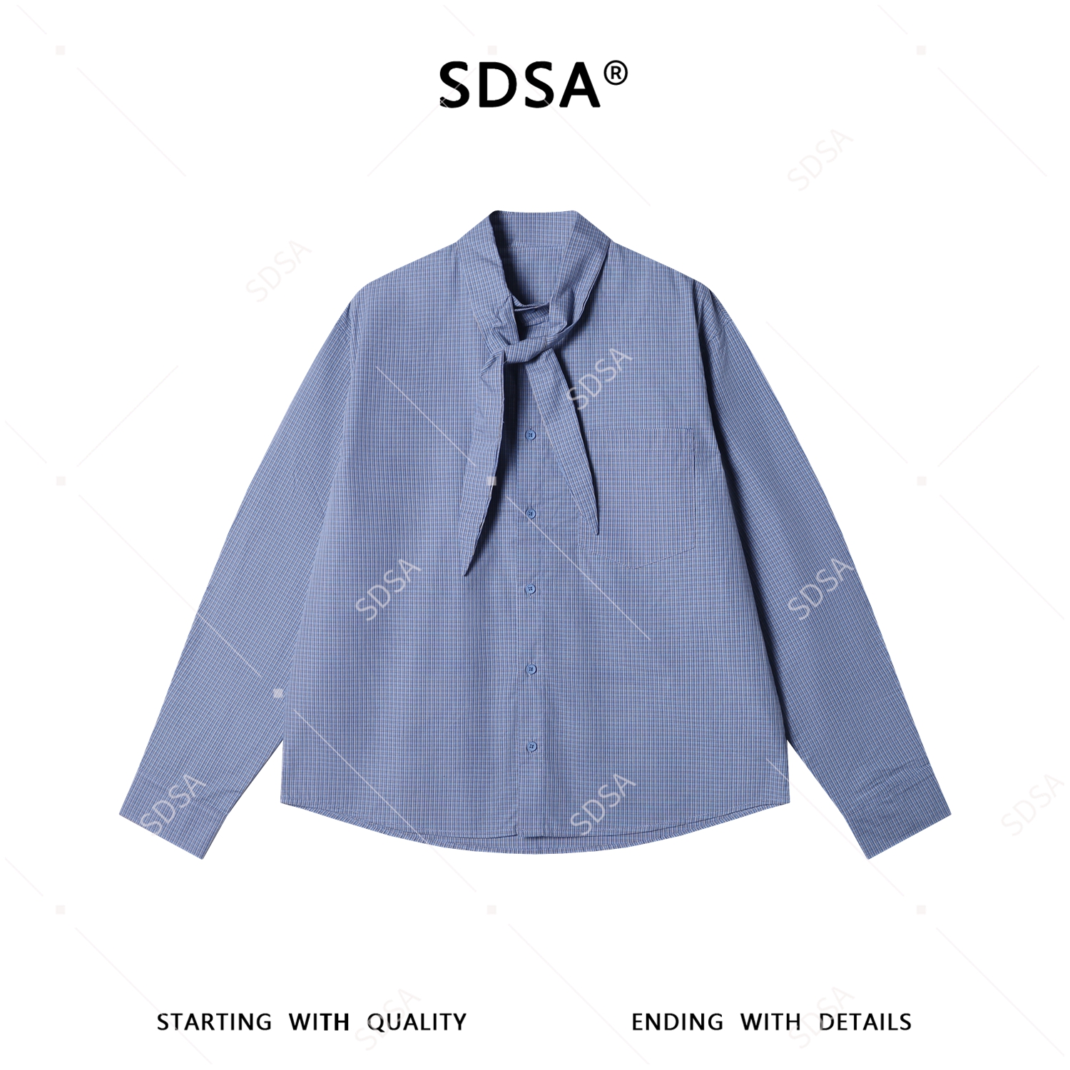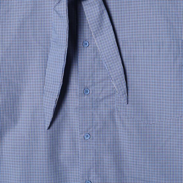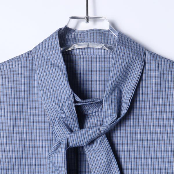 42877SDSA男装2026新款高贵轻奢细格纹系带衬衫宽松设计感百搭长袖衬衫