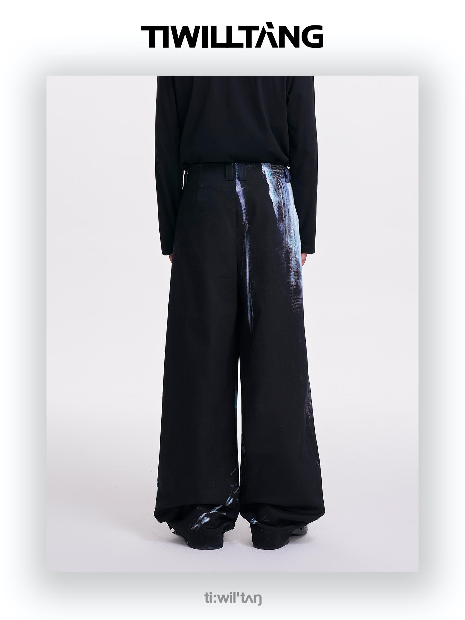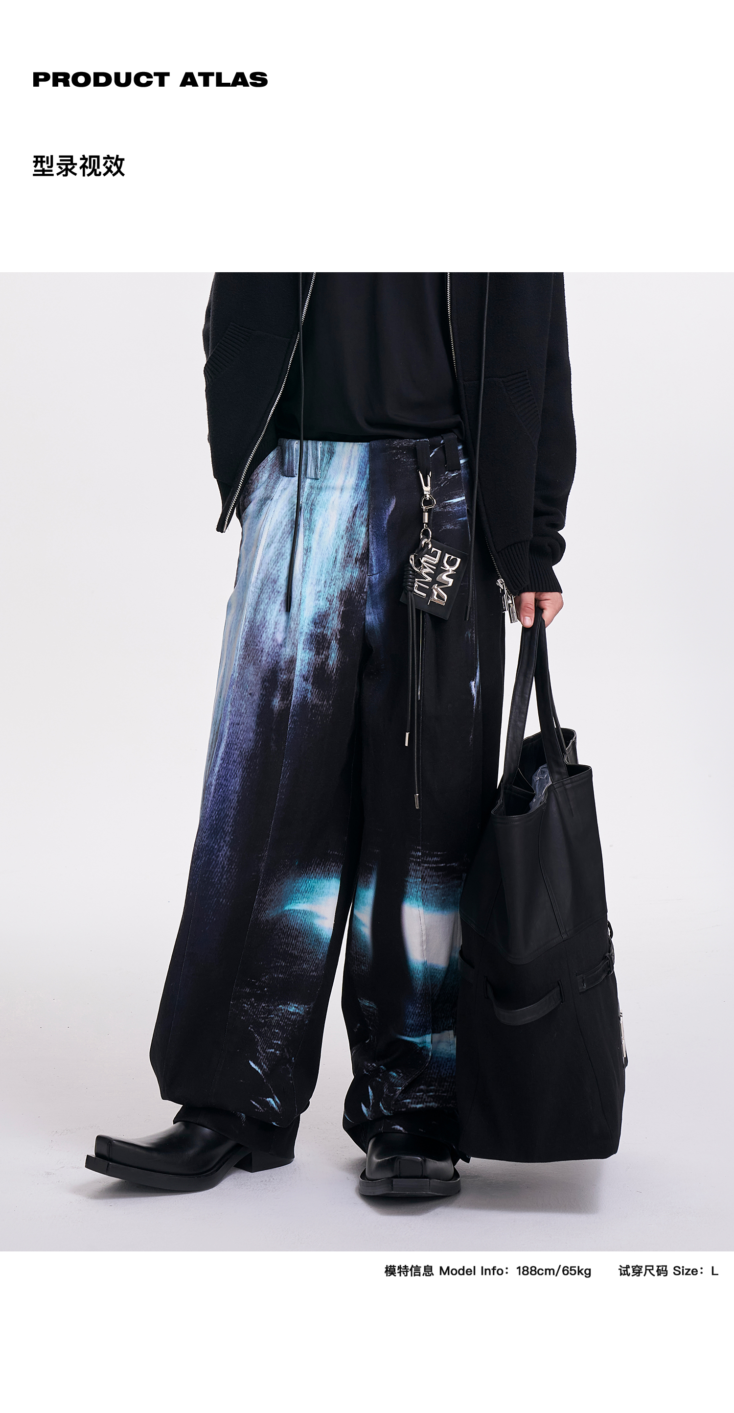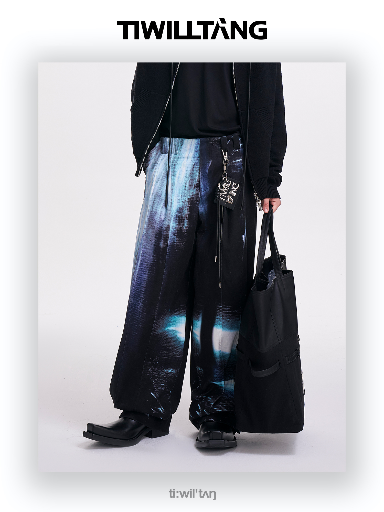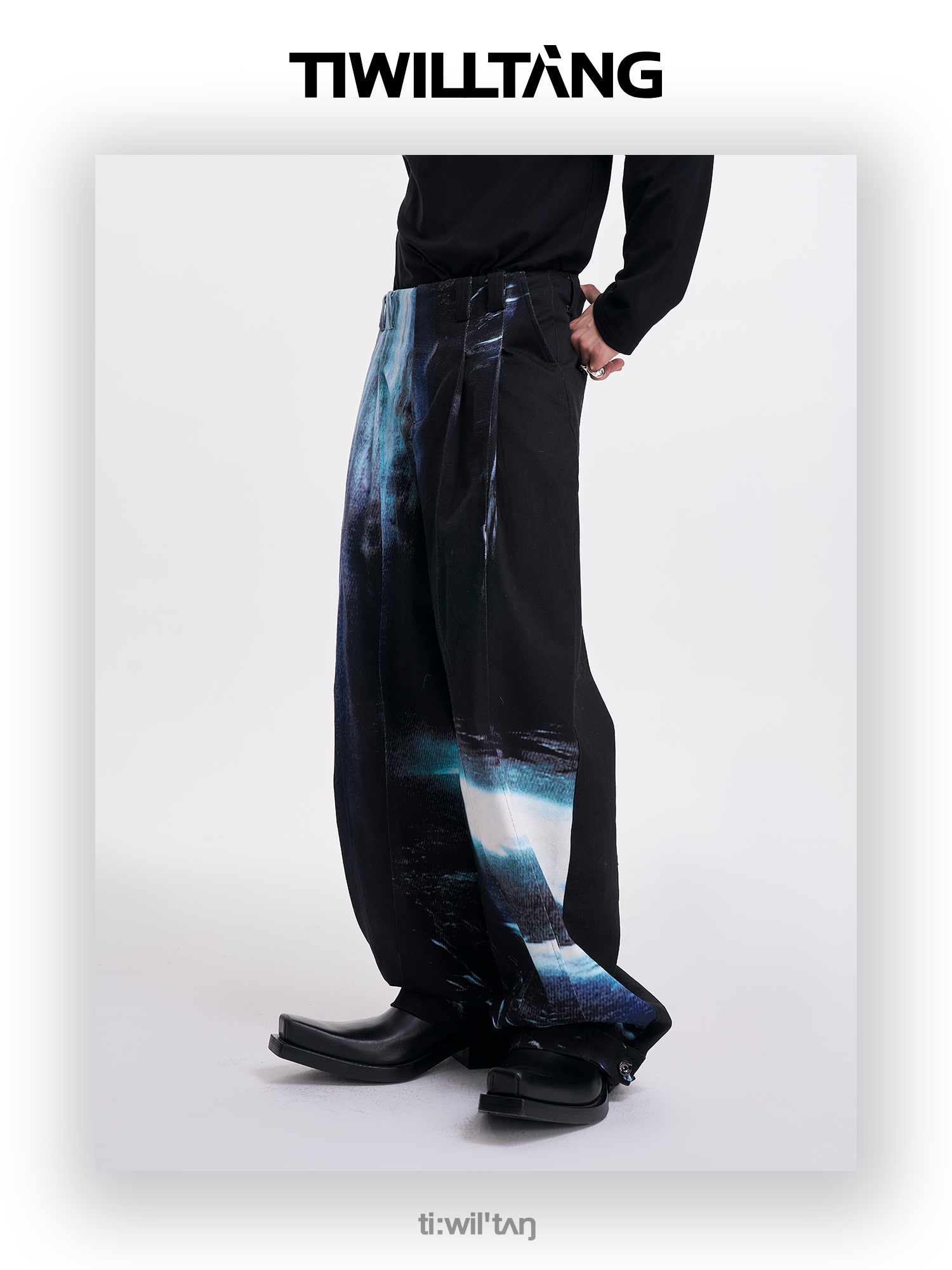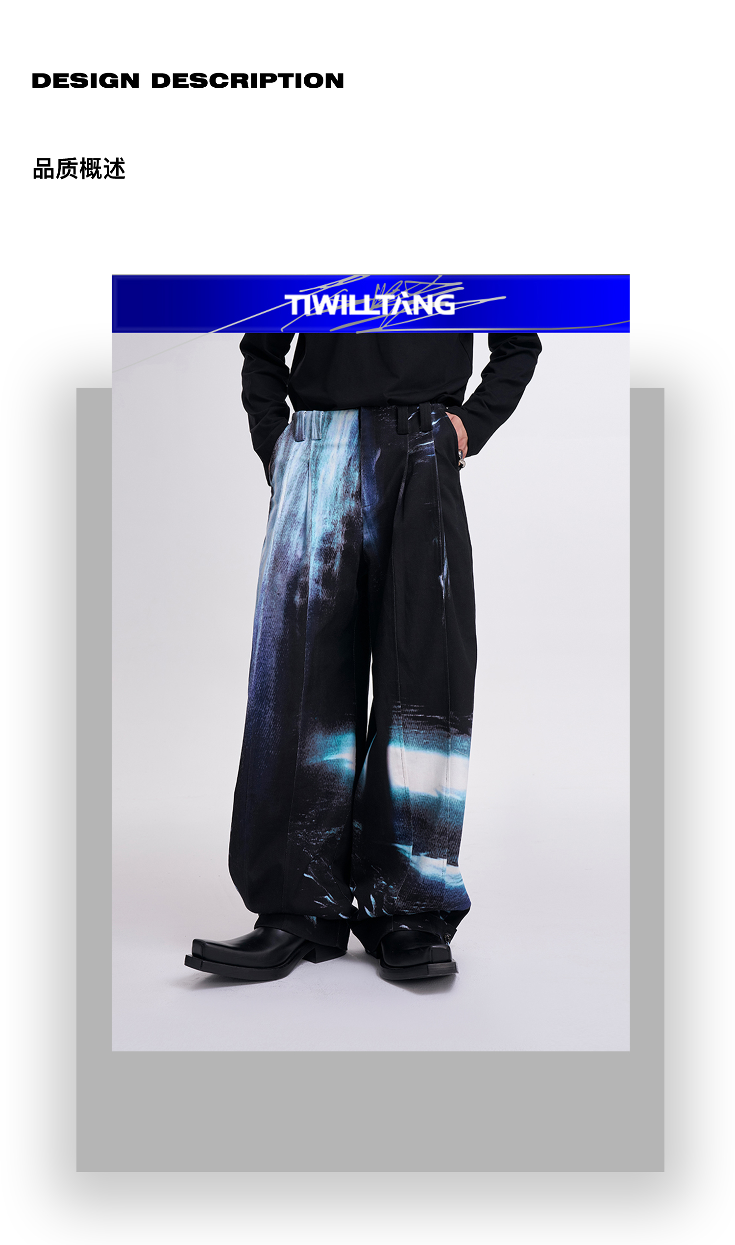 启世录TIWILLTANG"迹瀑浮焰"先锋闪验原创印花廓形工装堆叠长裤