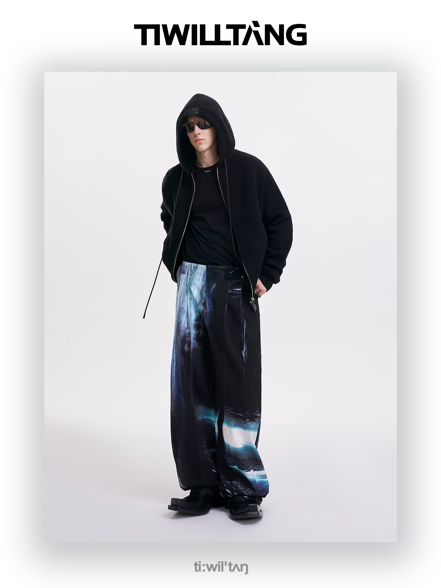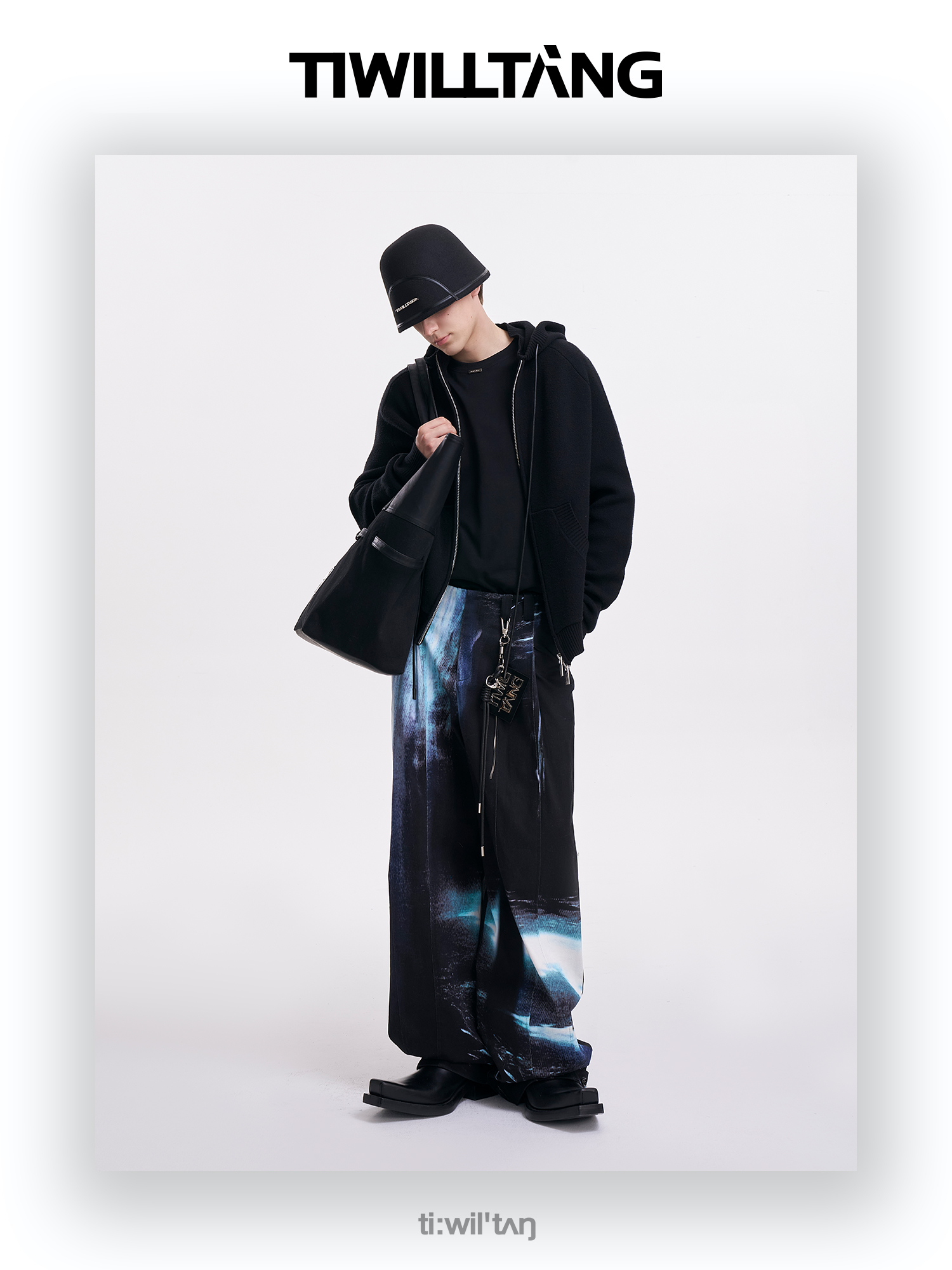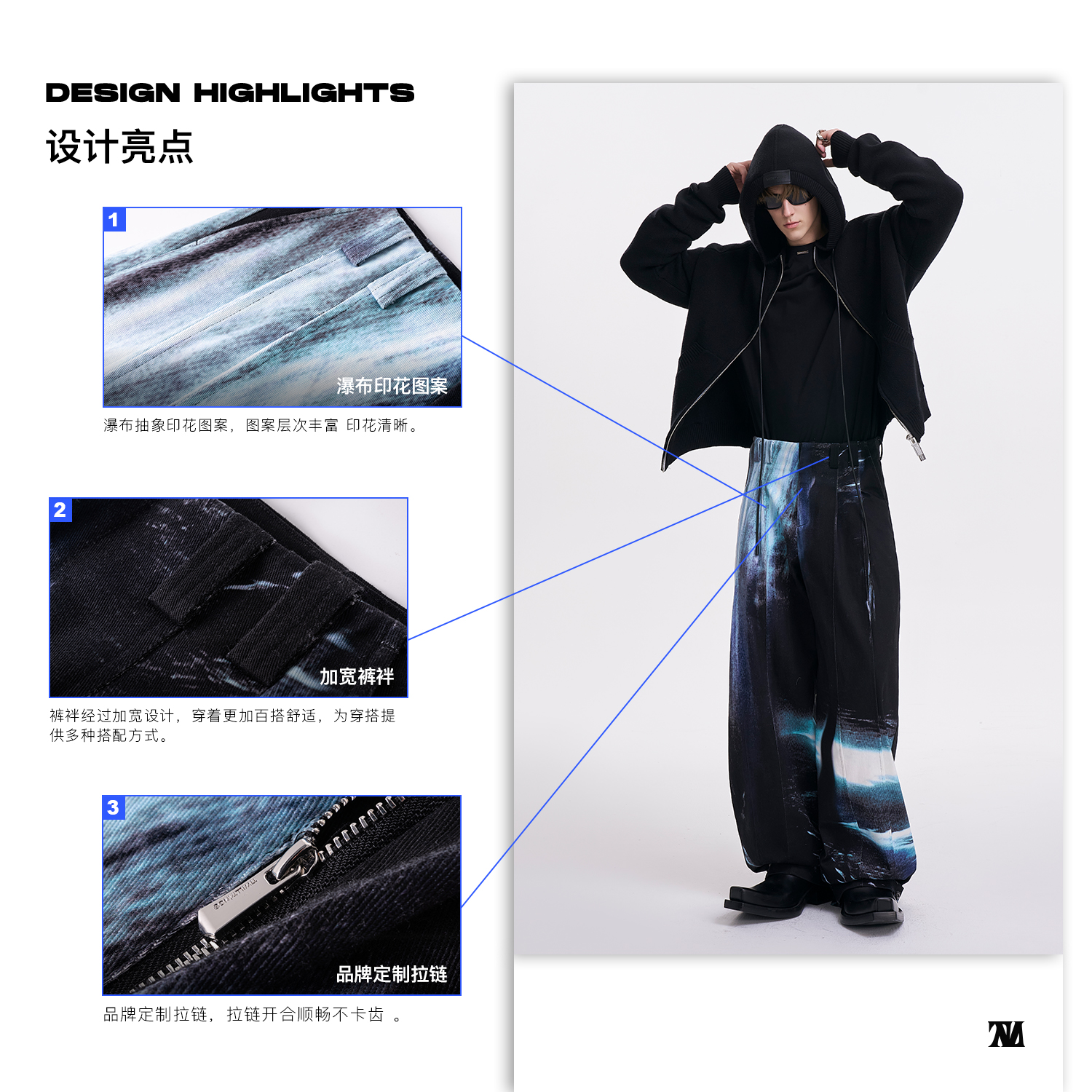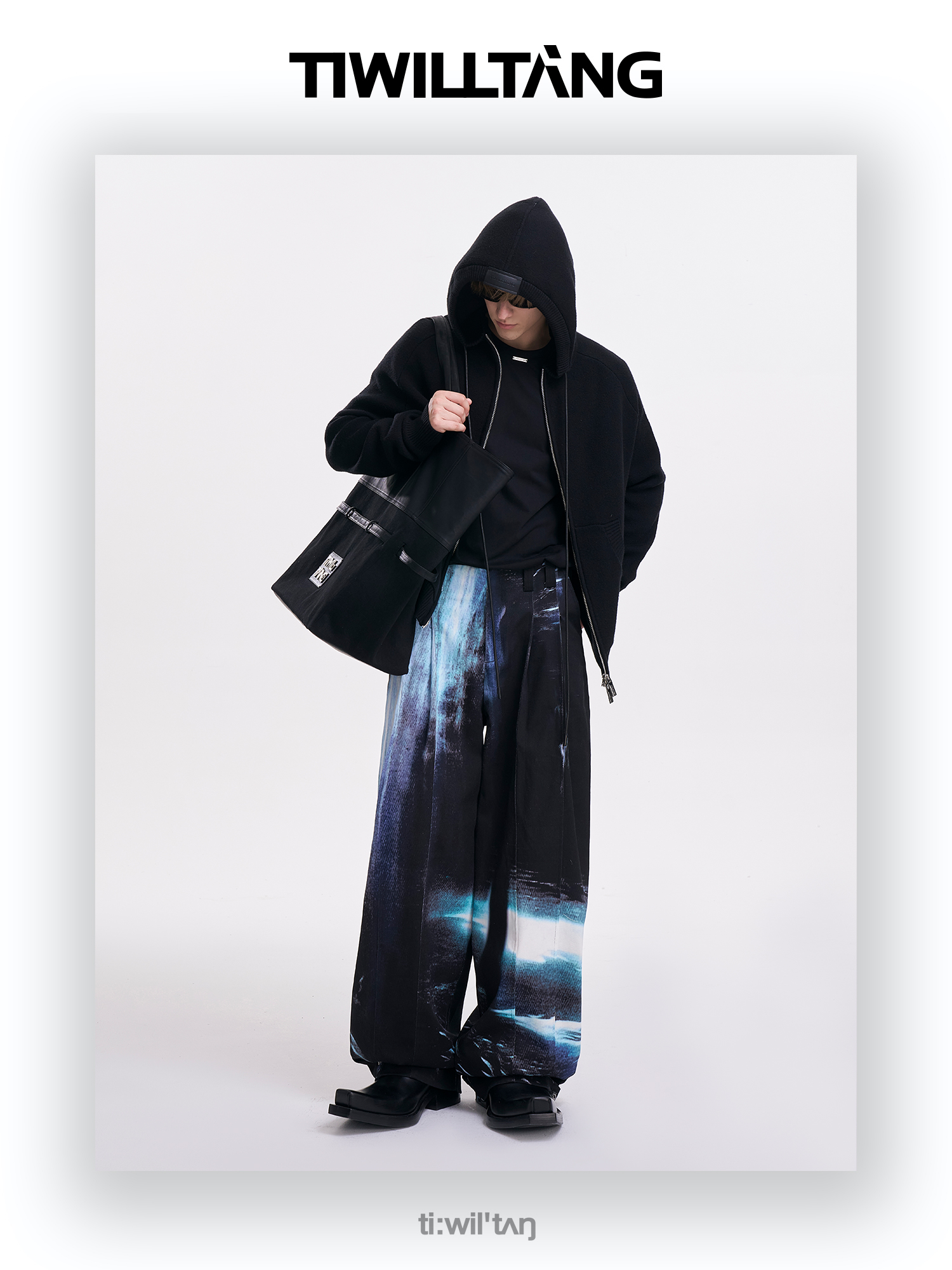 启世录TIWILLTANG"迹瀑浮焰"先锋闪验原创印花廓形工装堆叠长裤