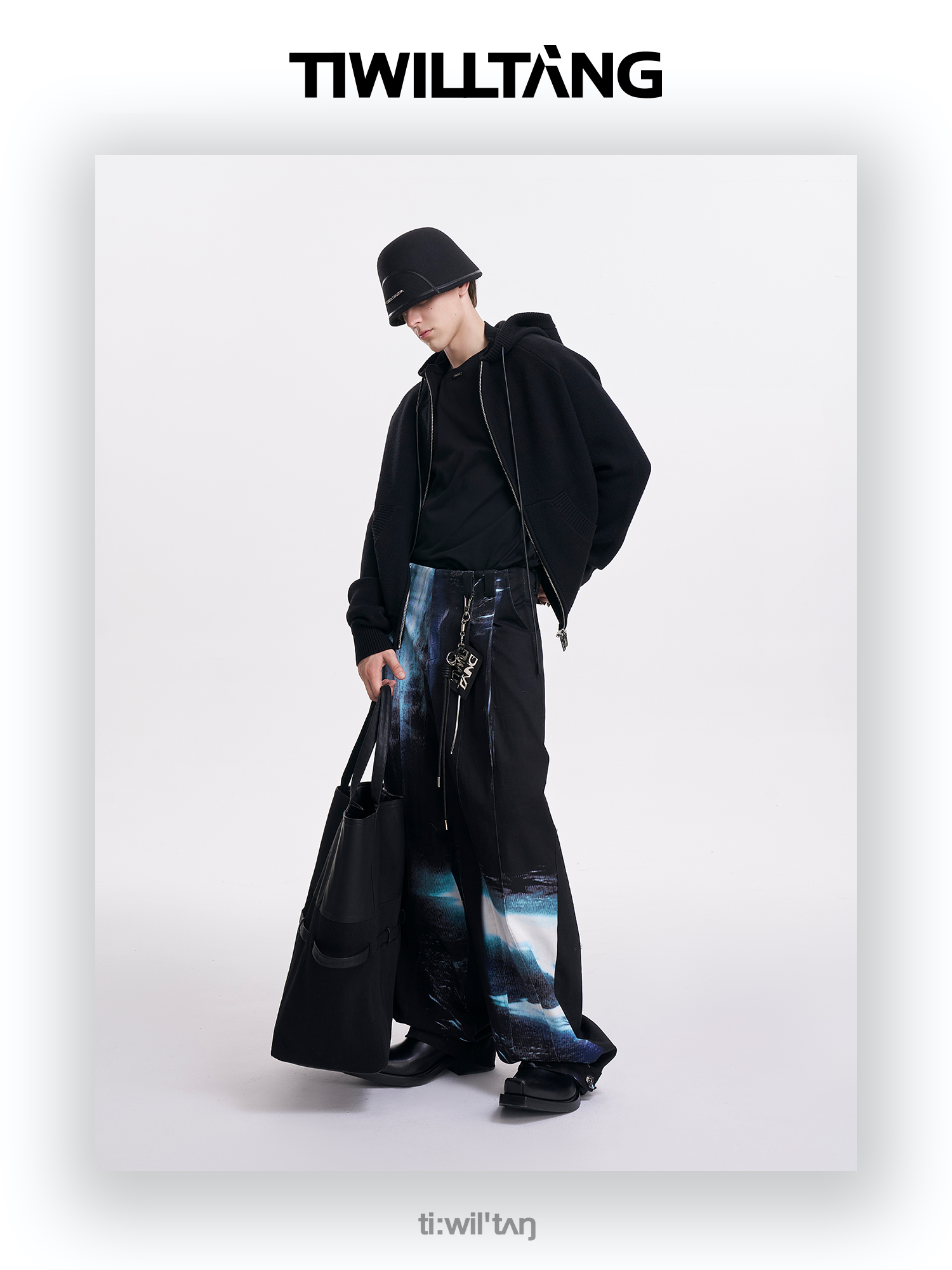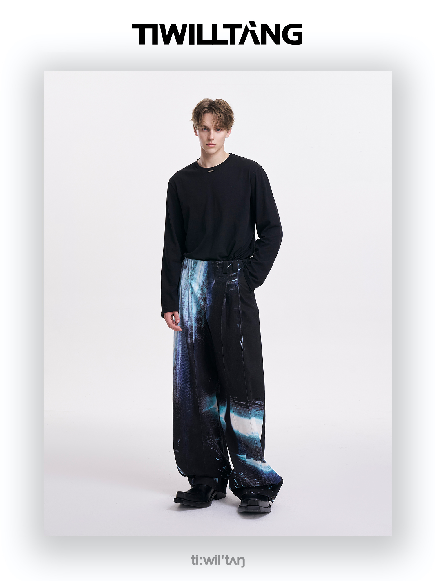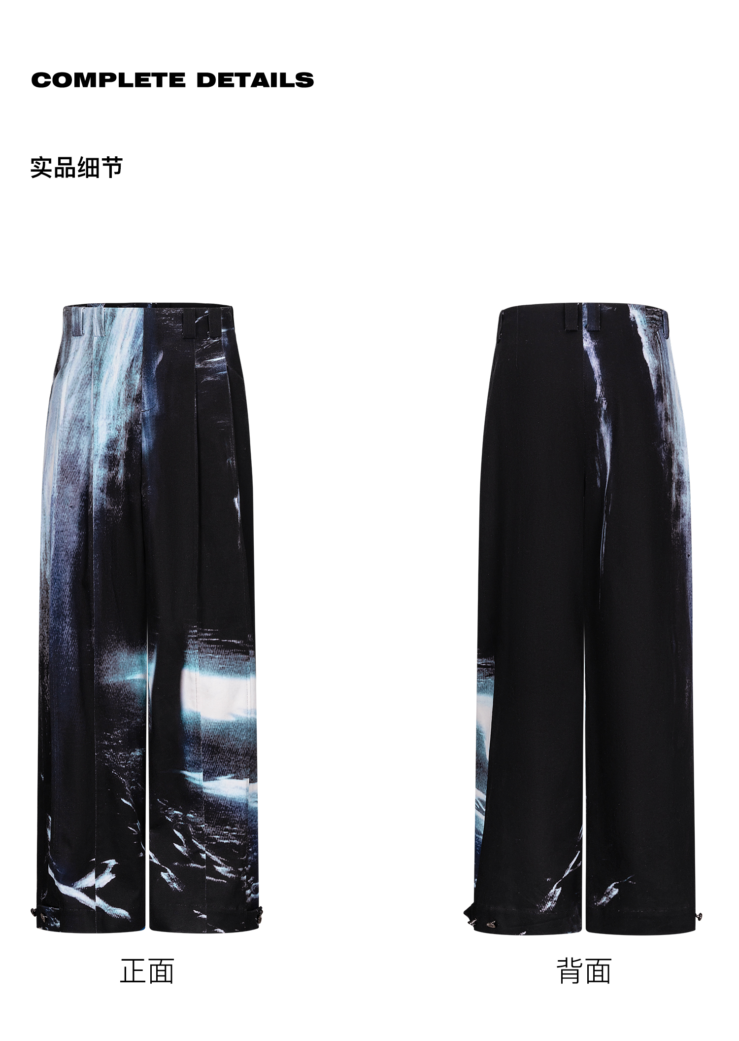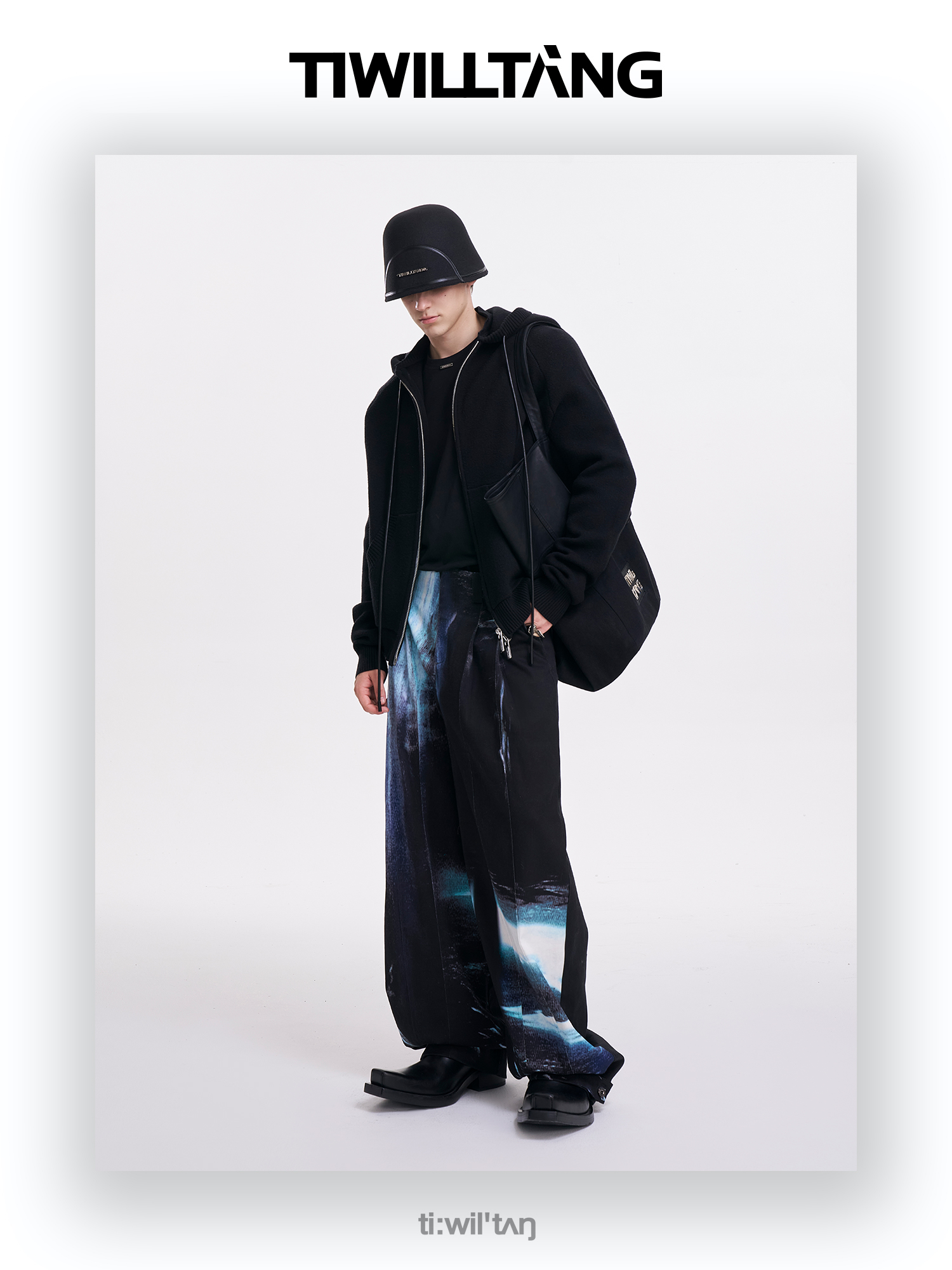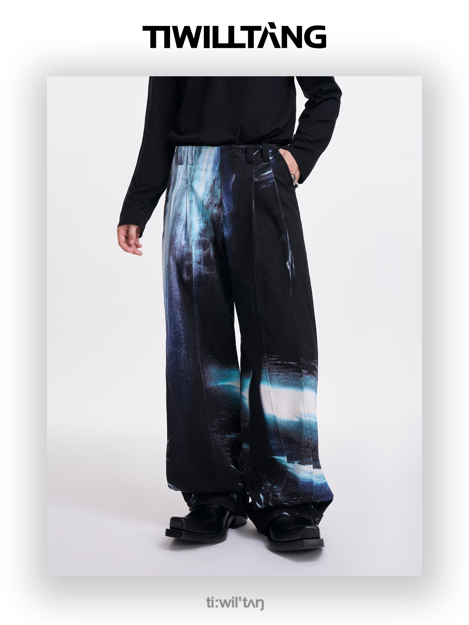 启世录TIWILLTANG"迹瀑浮焰"先锋闪验原创印花廓形工装堆叠长裤