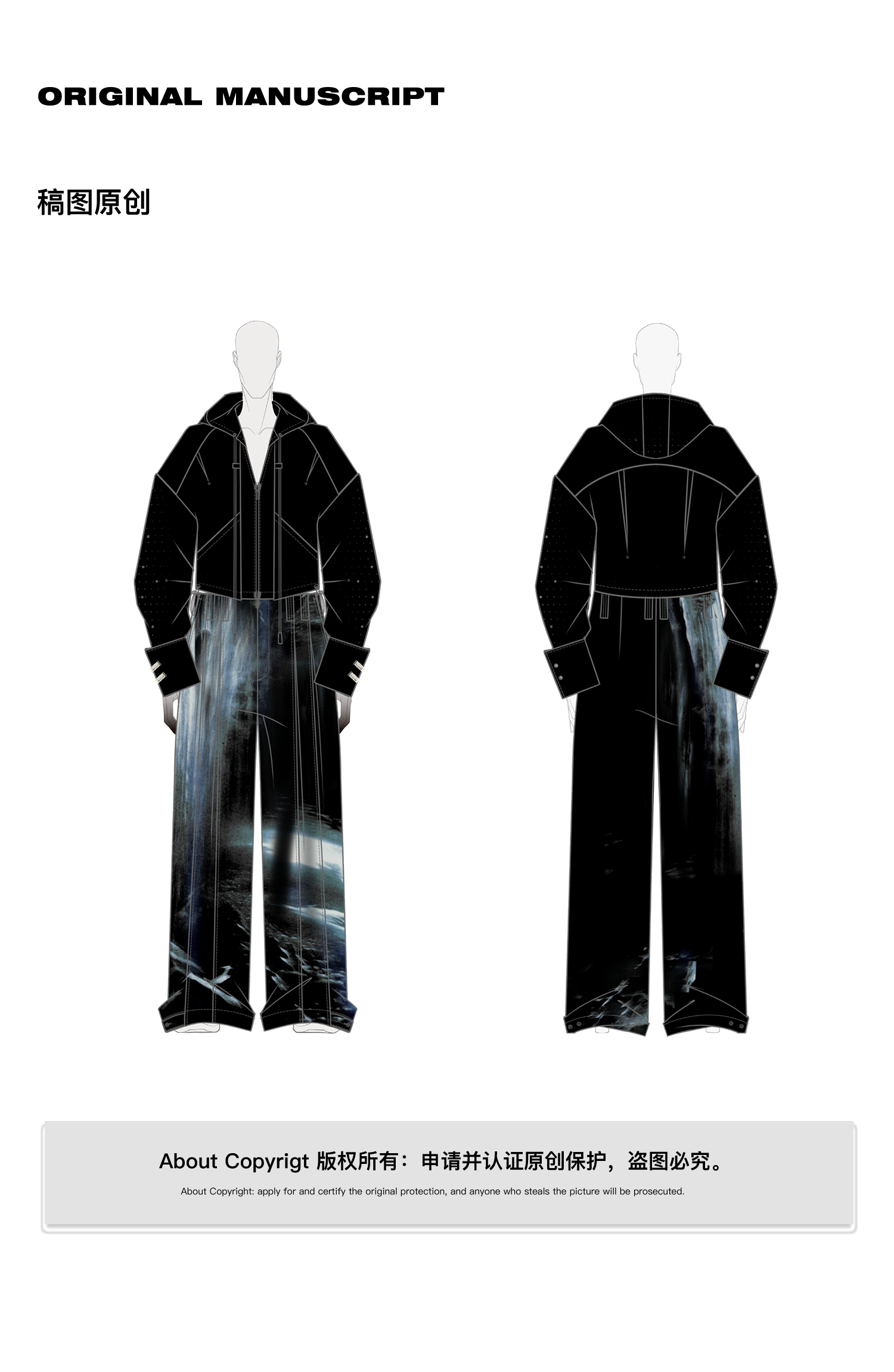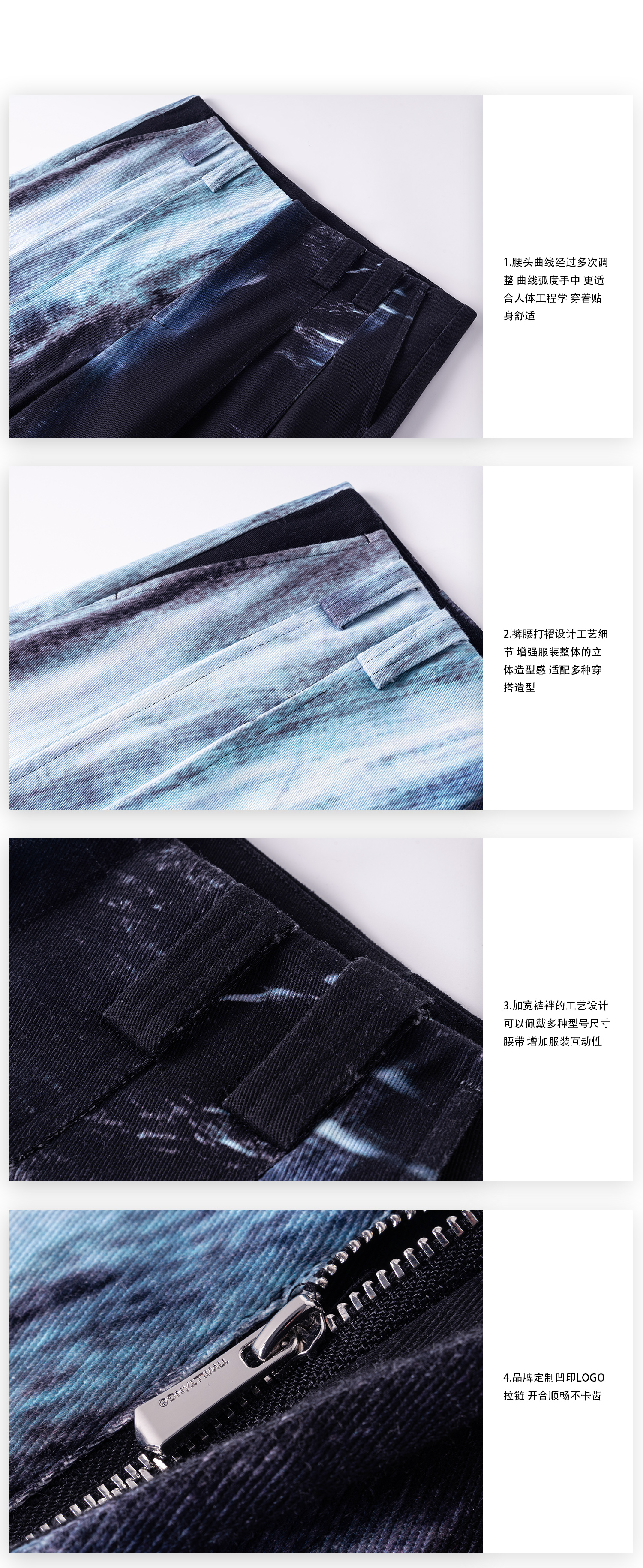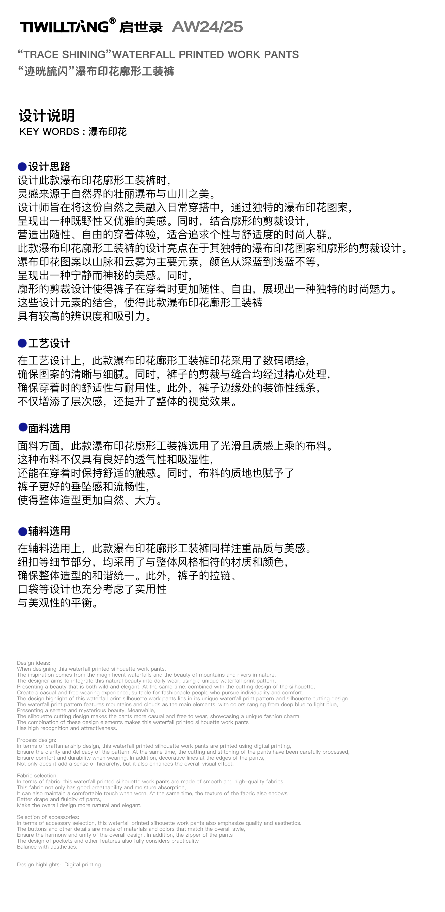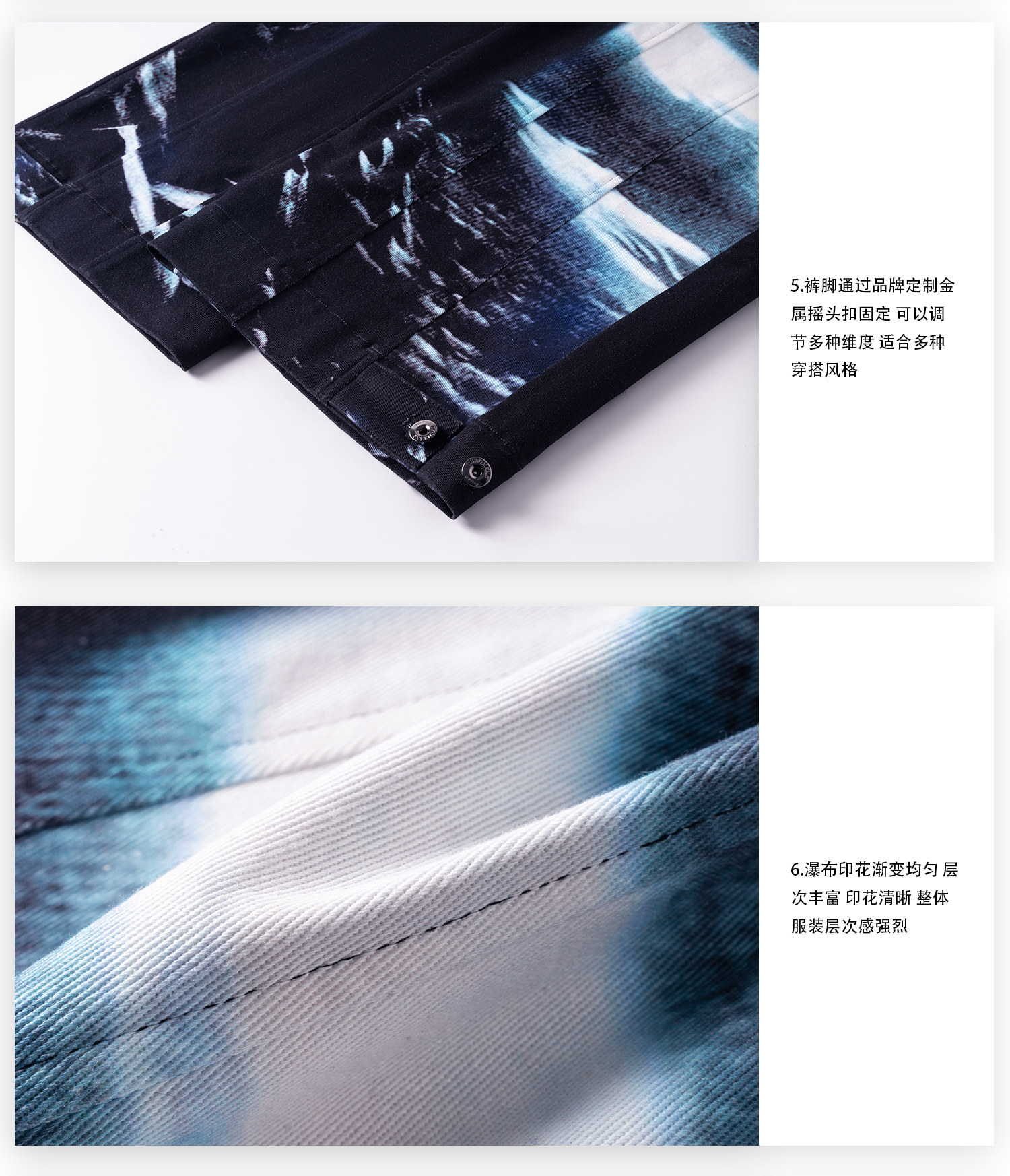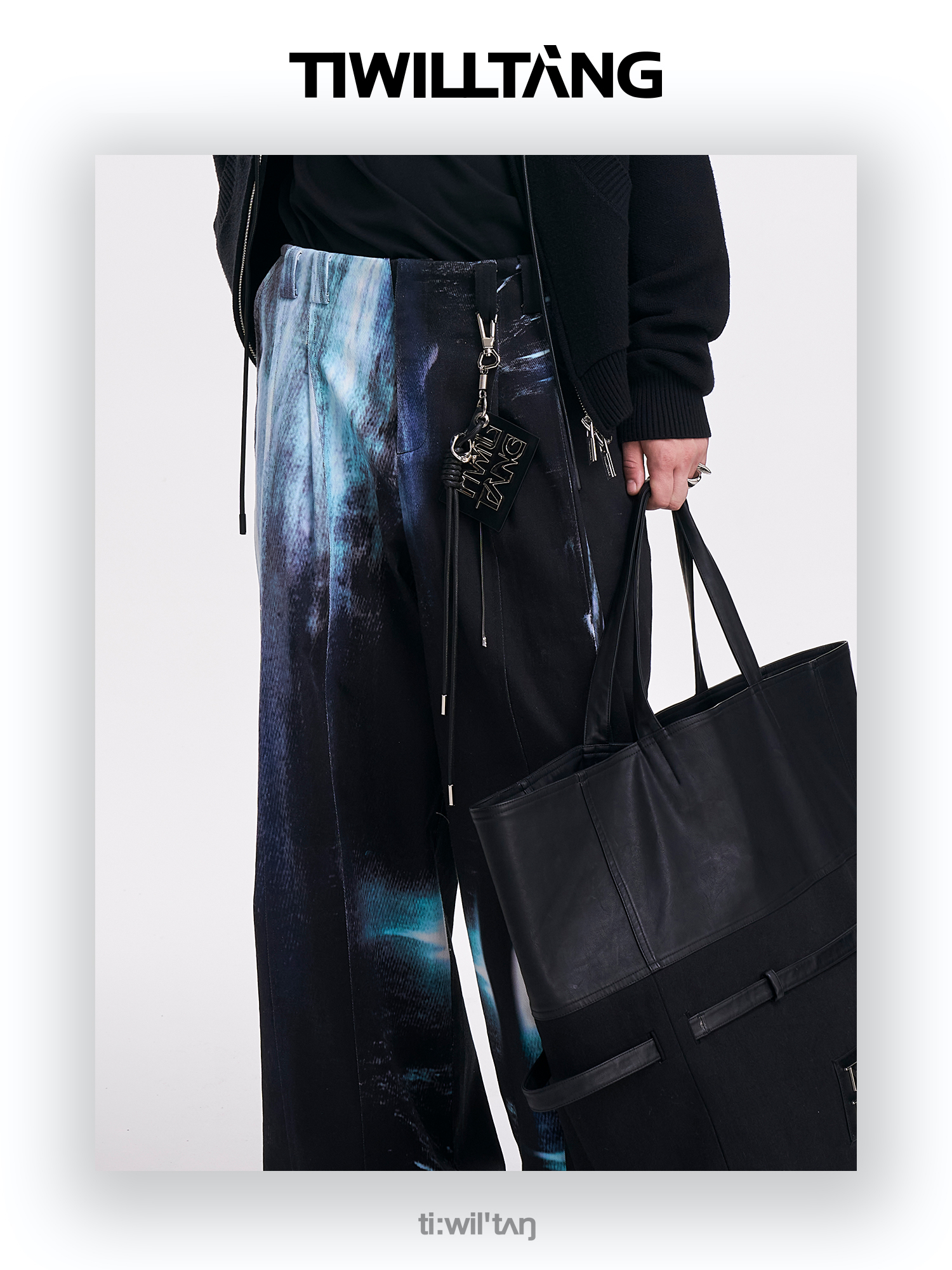 启世录TIWILLTANG"迹瀑浮焰"先锋闪验原创印花廓形工装堆叠长裤