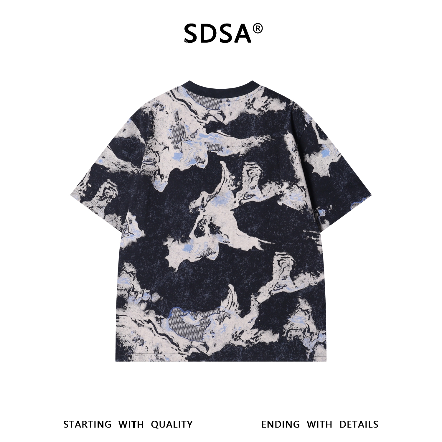 26T148SDSA男装2026新款高贵轻奢时尚简约扎染撞色战马印花圆领短袖T恤