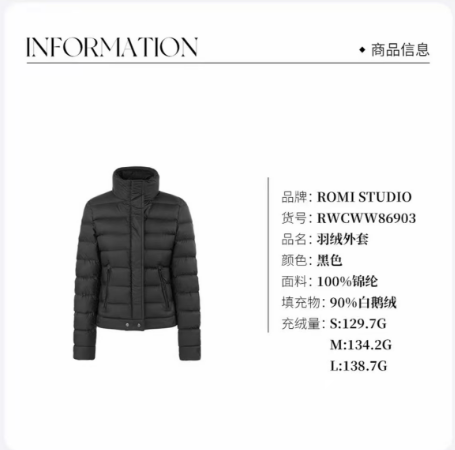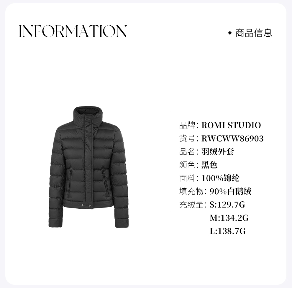 ROMISTUDIO“双面两穿”90白鹅绒柔软肤感立领羽绒服 RWCWW86903