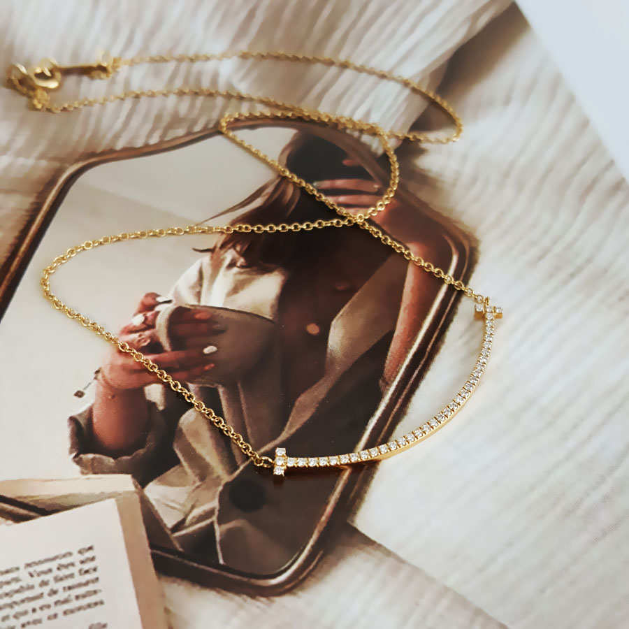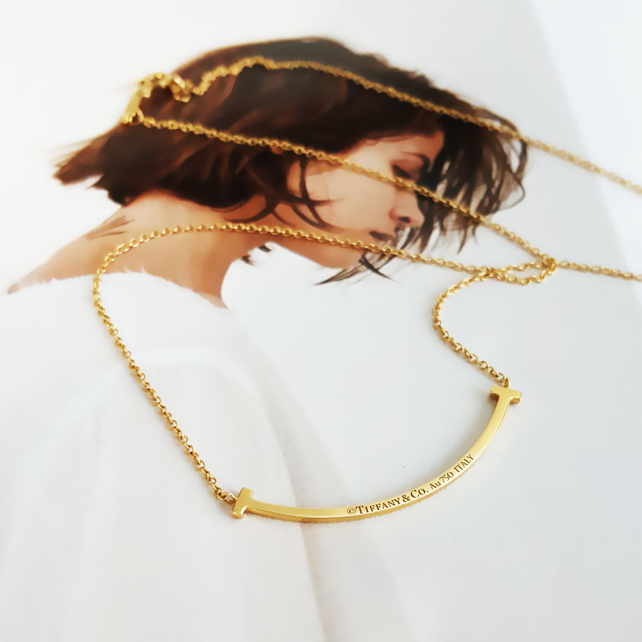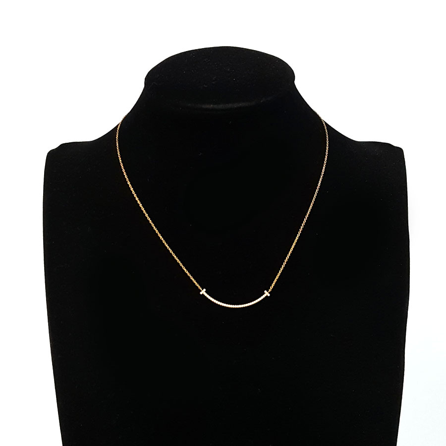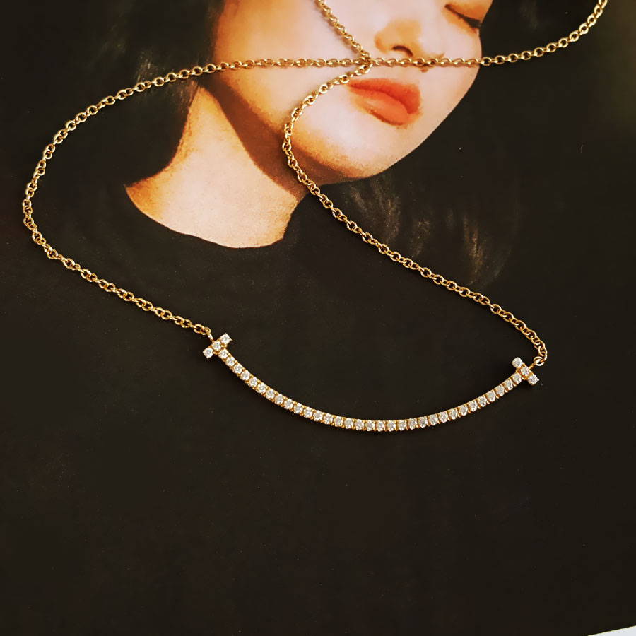 【95新】Tiffany & Co.蒂芙尼Tiffany T 系列小号18K黄金满钻笑脸Smile项链女士081025TJ03现售价:10000
