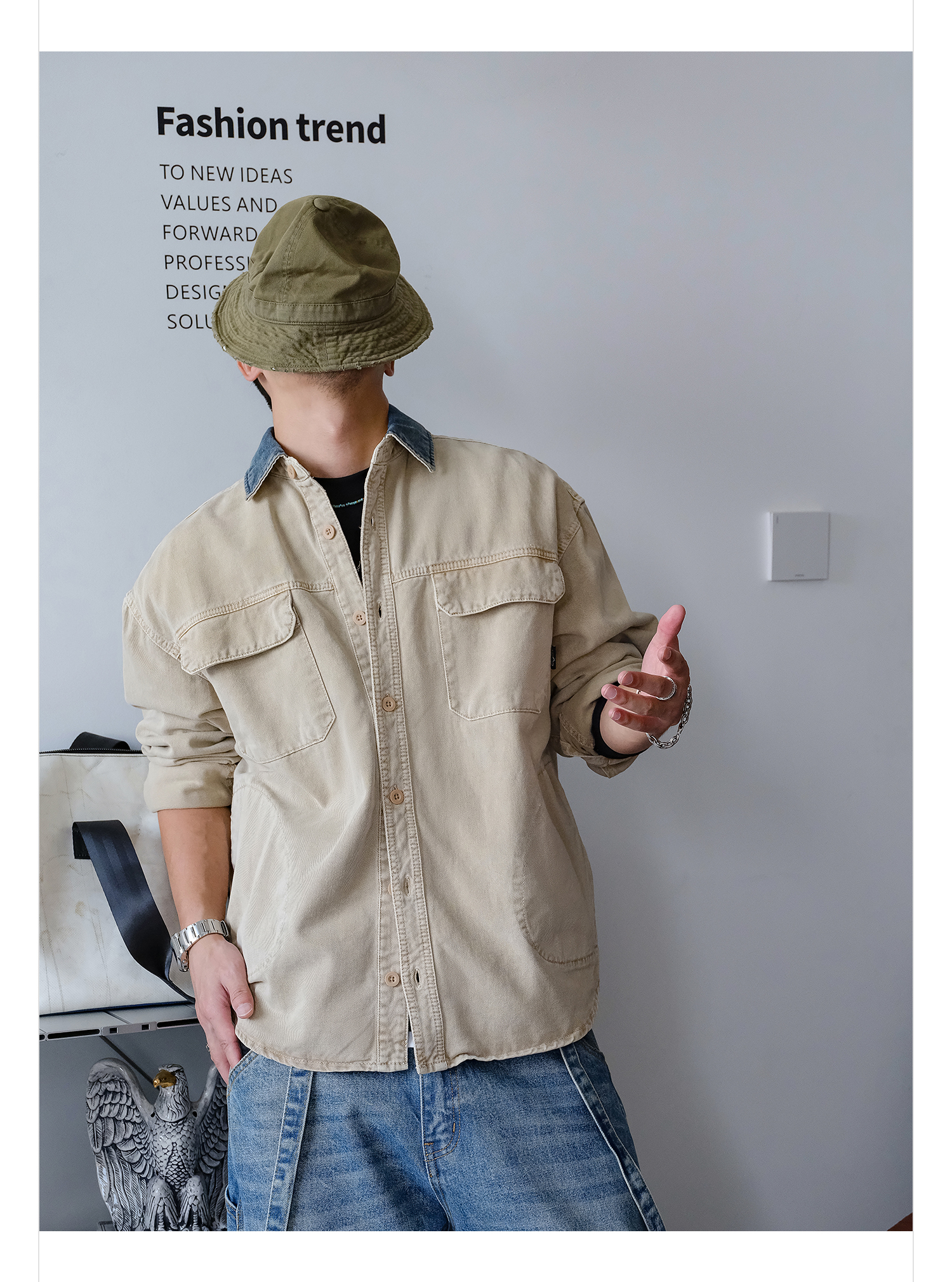 徐太浪复古工装卡其色夹克男2025新款秋季潮牌男装休闲缉明线外套