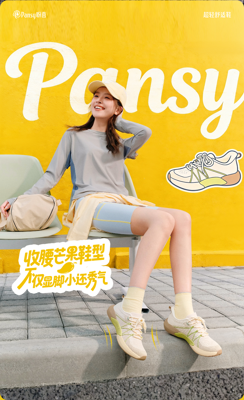 Pansy盼喜女鞋秒穿一脚蹬透气宽胖脚户外休闲运动鞋2026春季新款HD4308