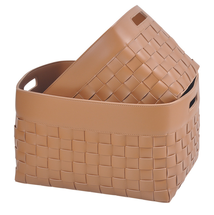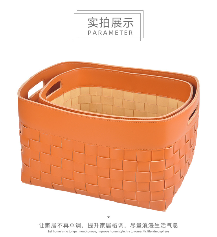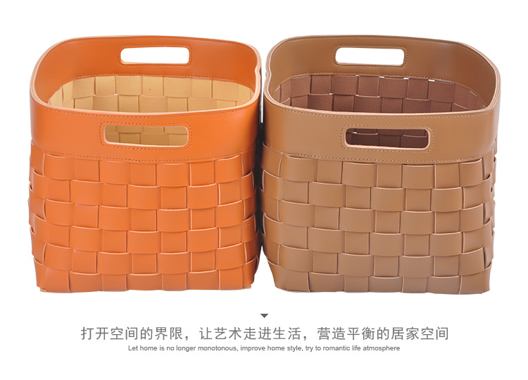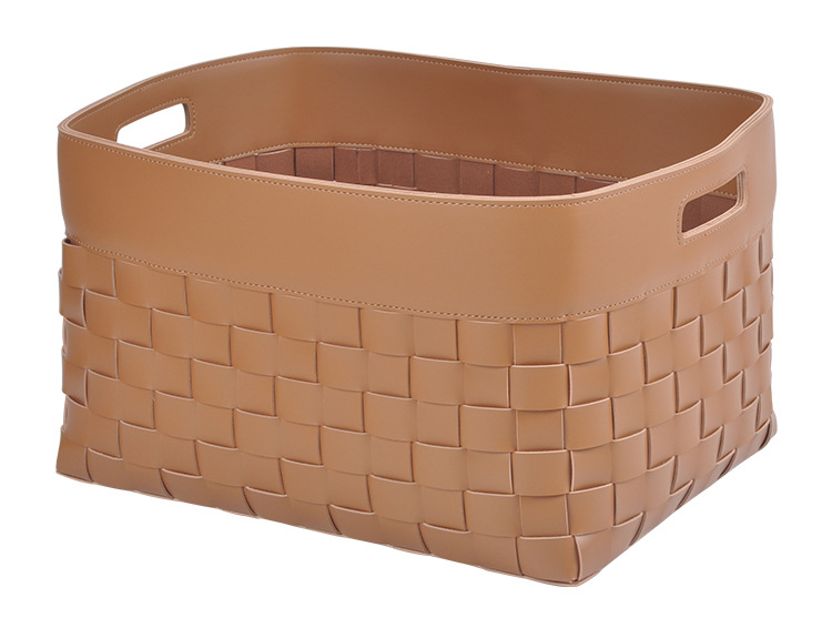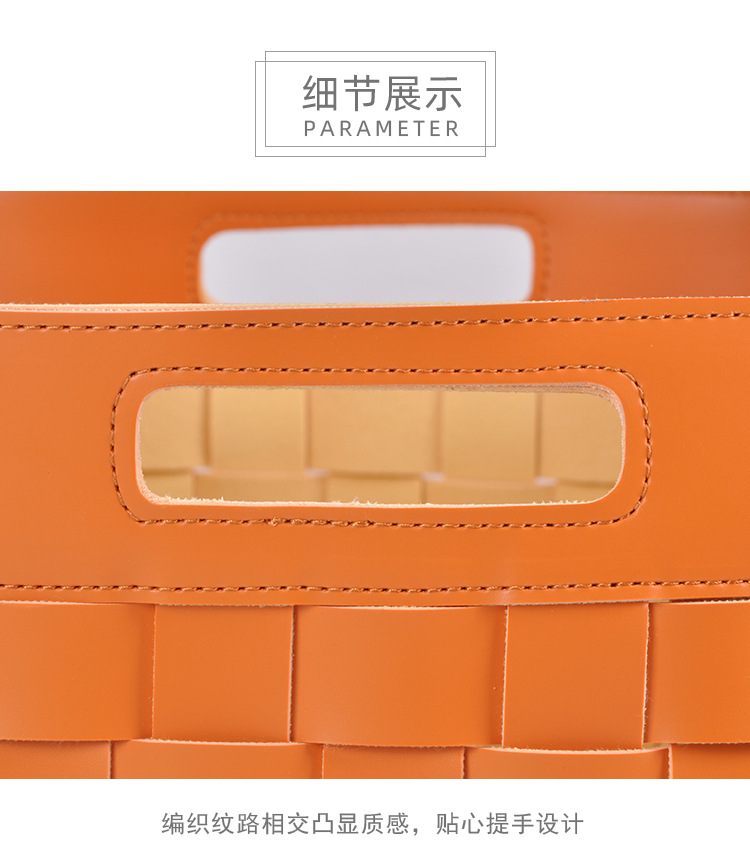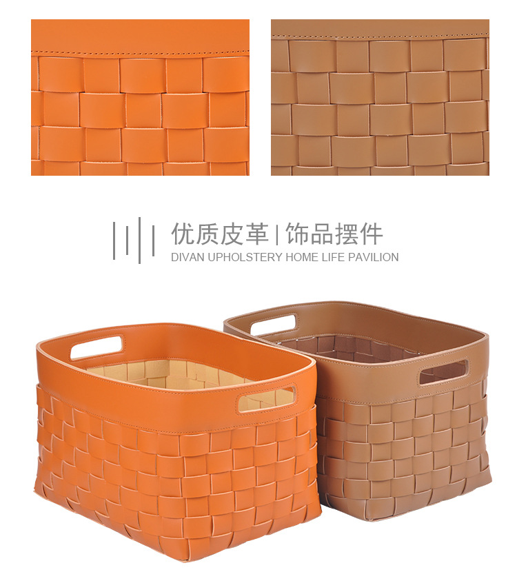 【白色/灰色/咖色】娜家轻奢皮革编织收纳筐