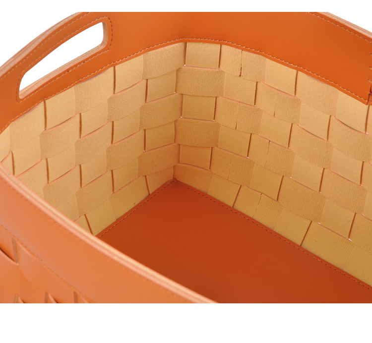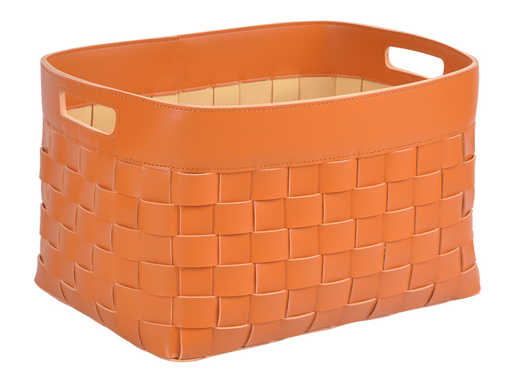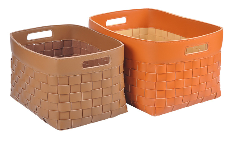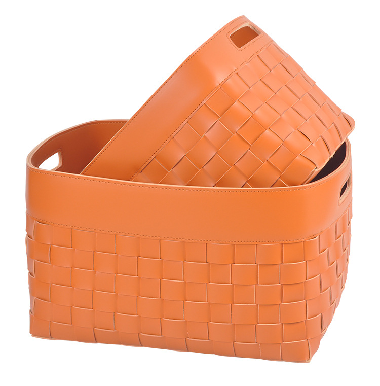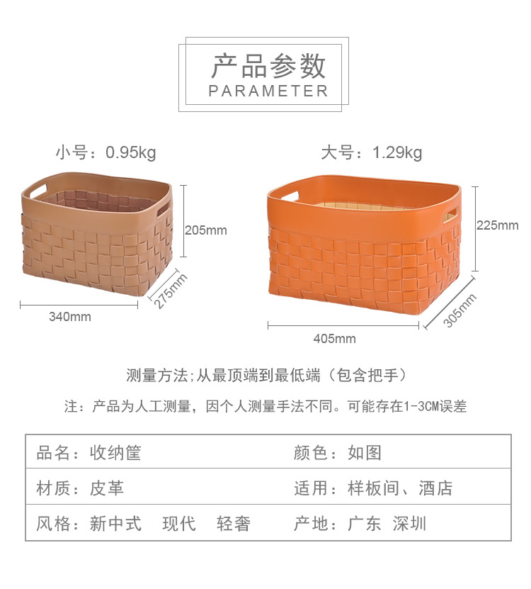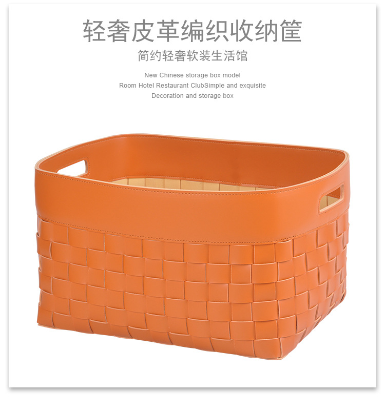 【白色/灰色/咖色】娜家轻奢皮革编织收纳筐