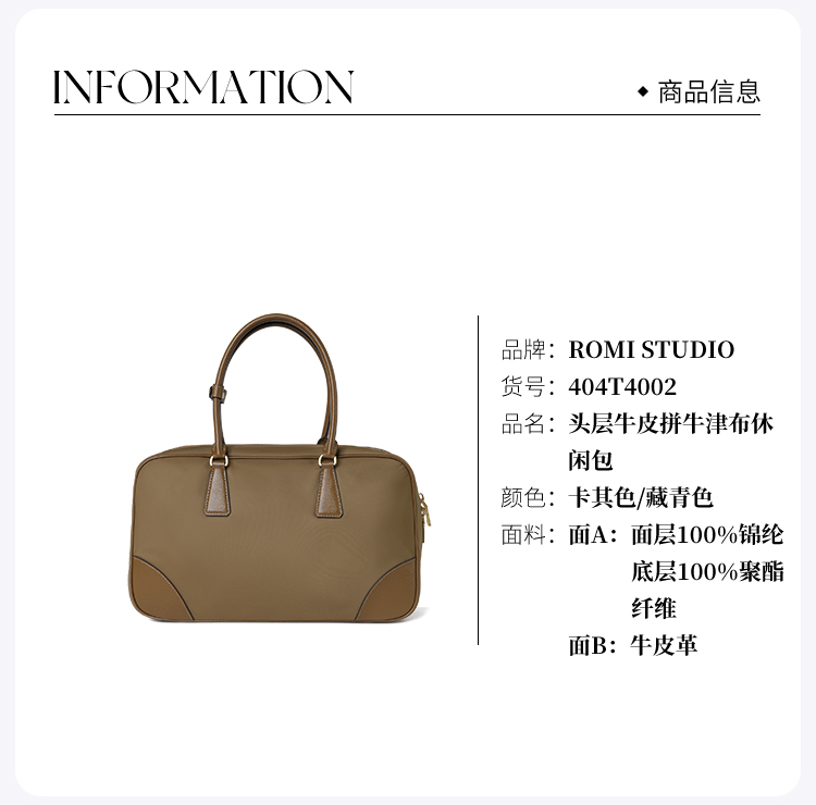 ROMI STUDIO意大利进口头层牛皮拼牛津布单肩休闲包 404T4002