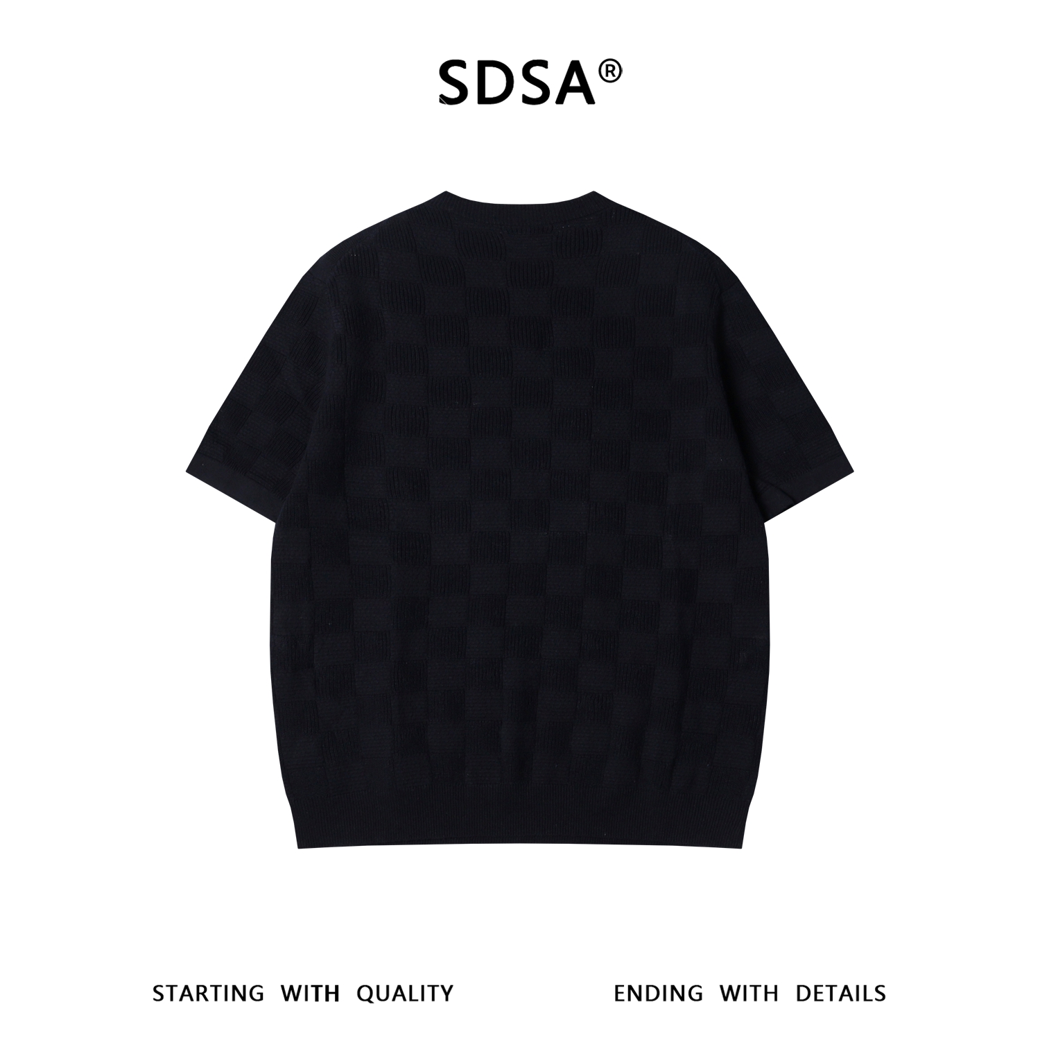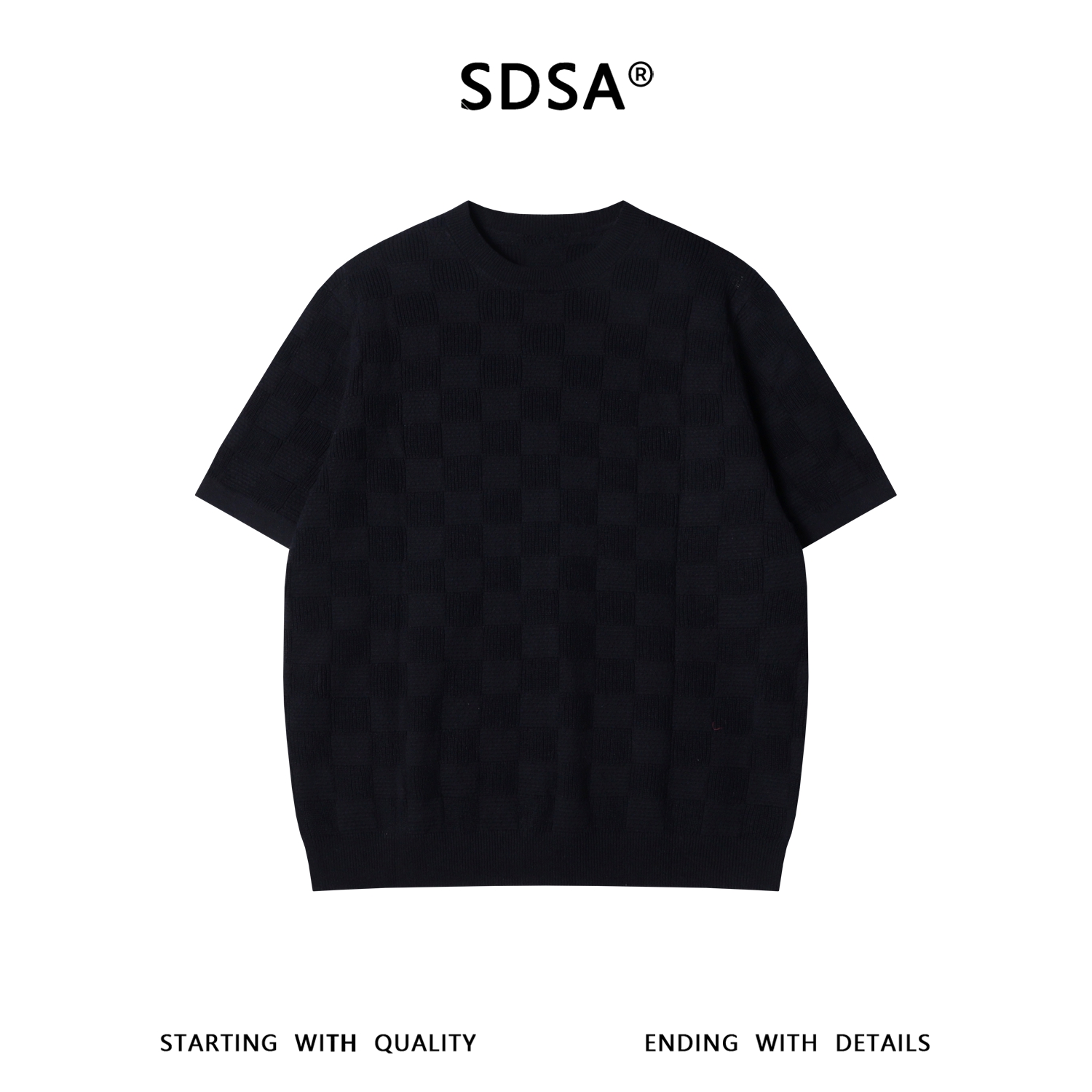 SDSA男装2026新款高贵轻奢潮牌简约棋盘格针织圆领短袖T恤百搭