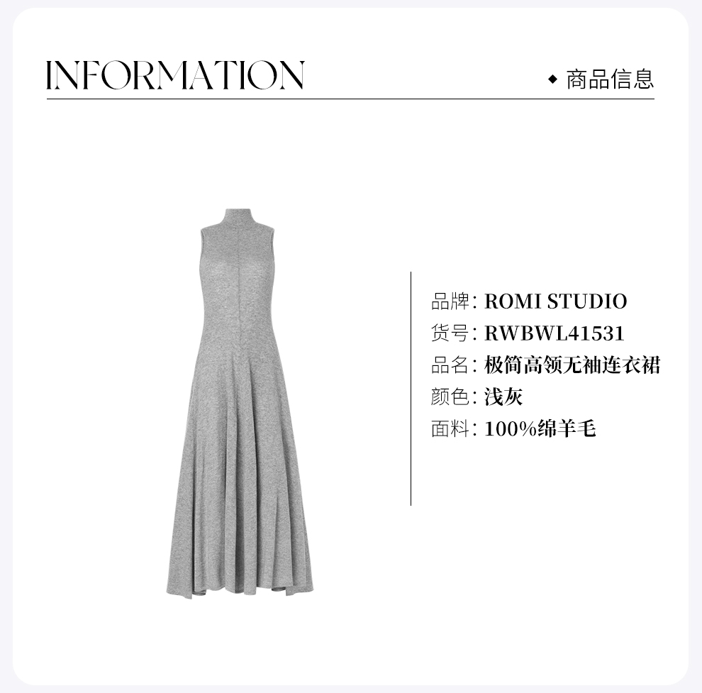 ROMI STUDIO“格雷优雅”100%绵羊毛高领无袖收腰连衣裙 RWBWL41531