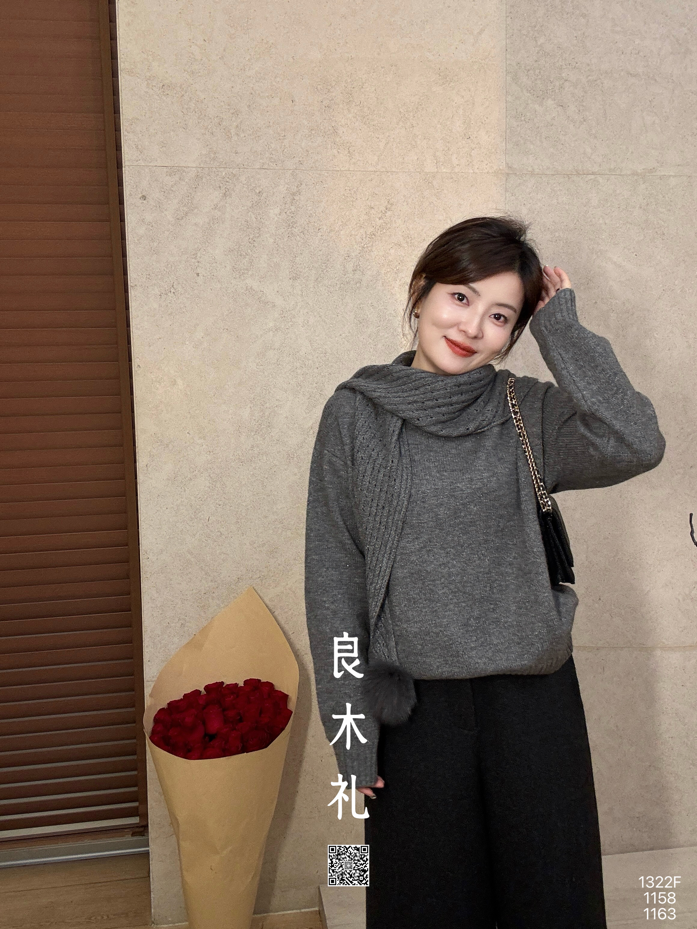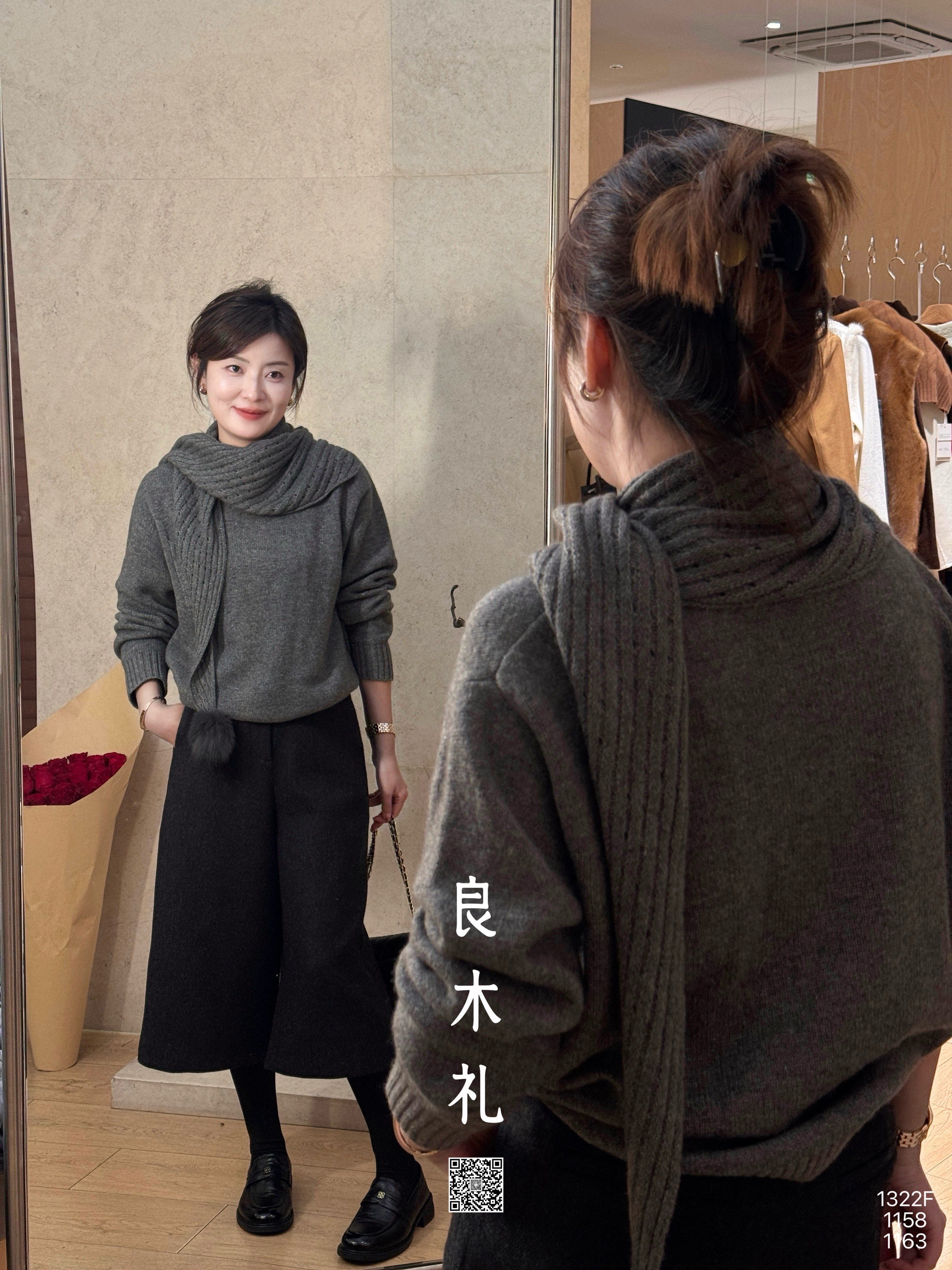 【预售7天】良木礼羊毛圆领上衣(披肩)(1322F)