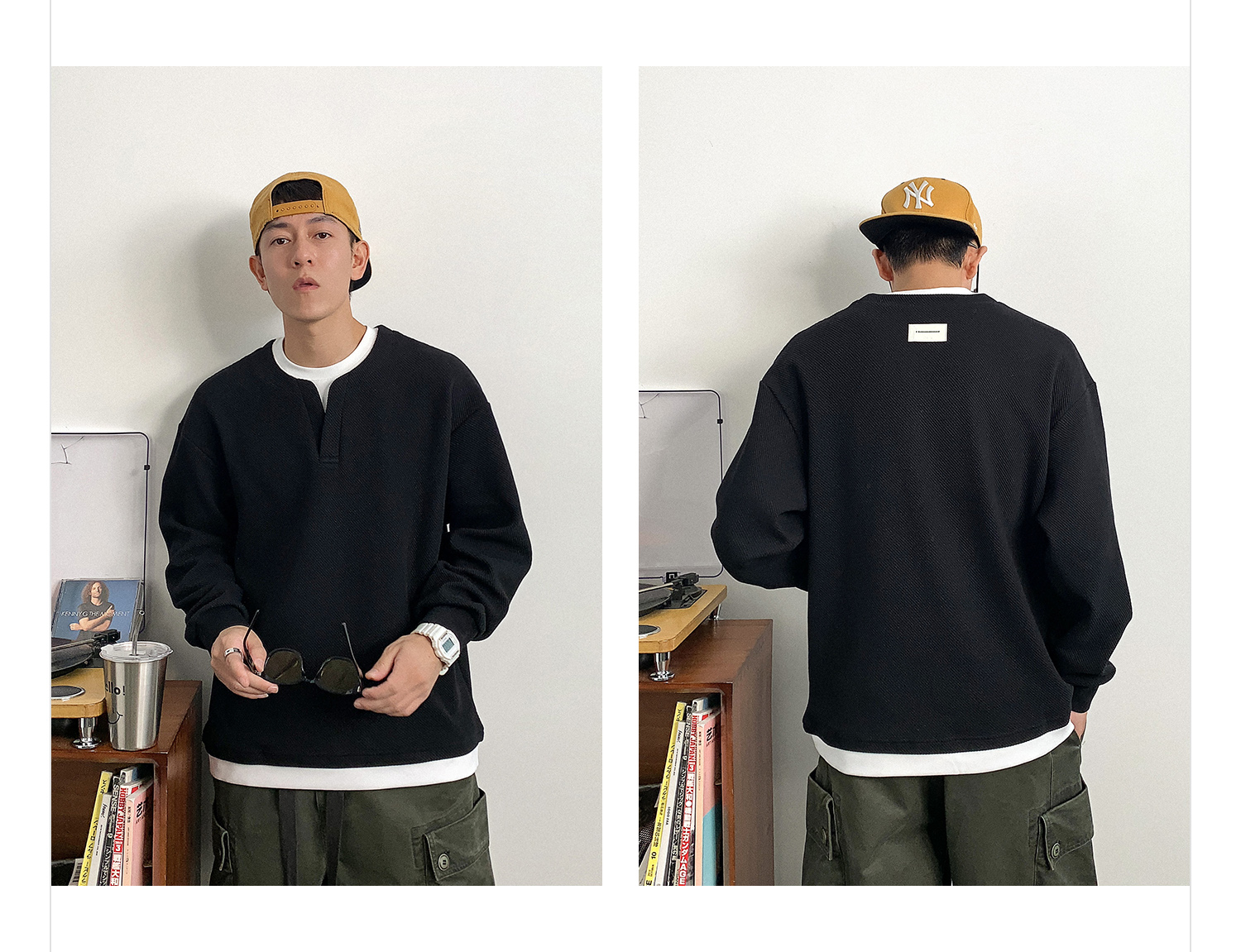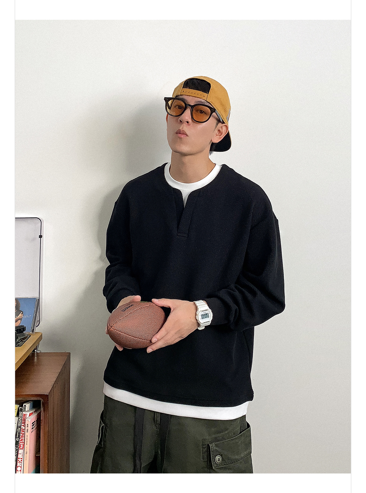 徐太浪设计感拼接假两件卫衣男秋装新款撞色上衣潮牌简约百搭外套