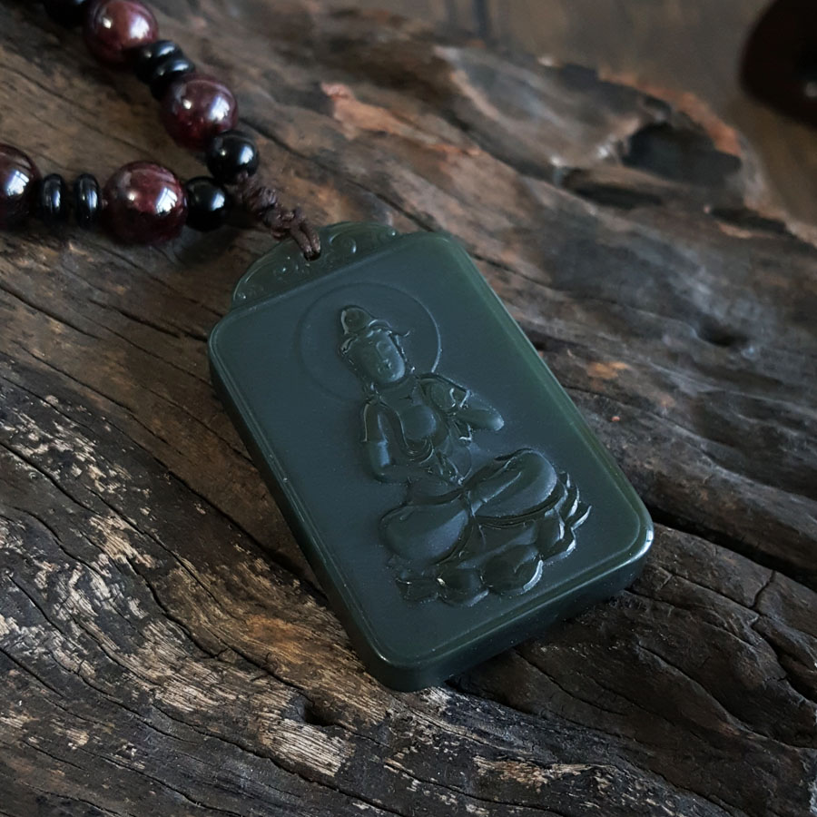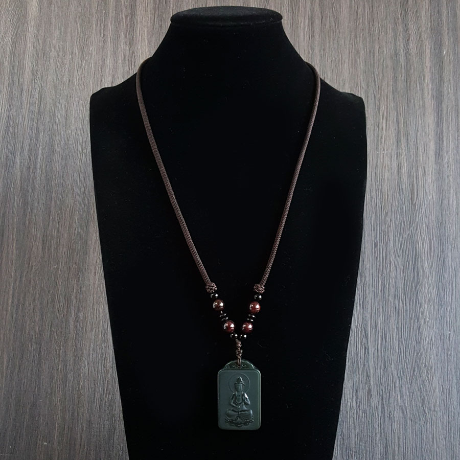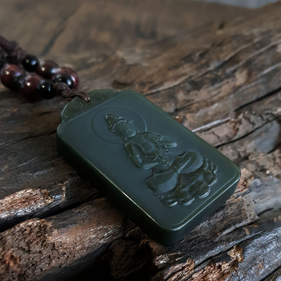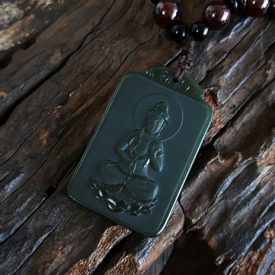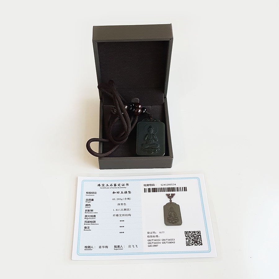 【天然正品】天然无杂裂观音造型和田玉青玉(平安、吉祥)吊坠项链48.7*29.7*8.0MM(皆取最大值)男士现售价:780特价!161224NJM17