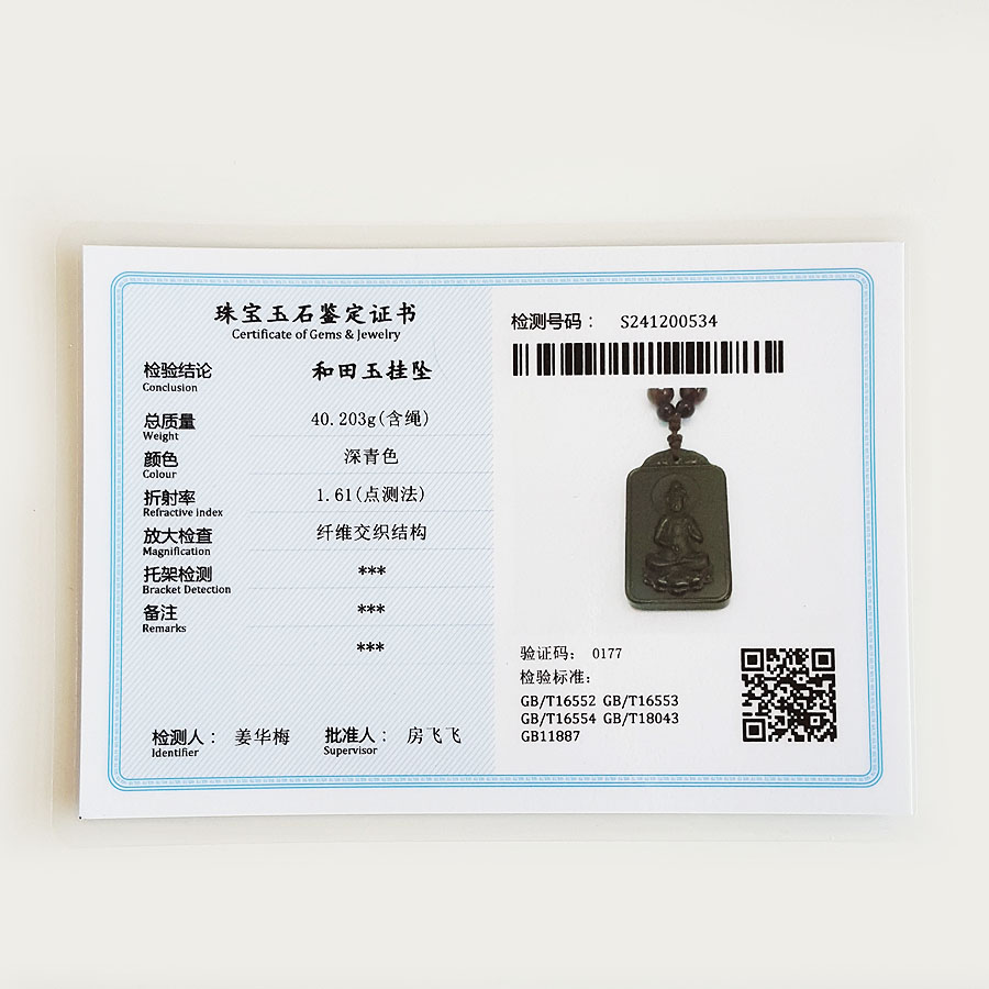 名称 | 天然无杂裂观音造型和田玉青玉(平安、吉祥)吊坠项链 |