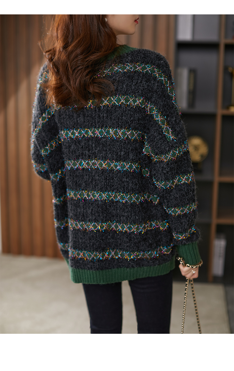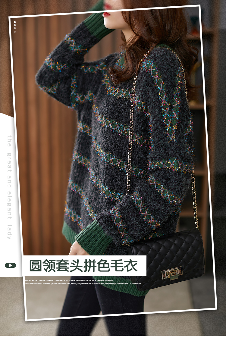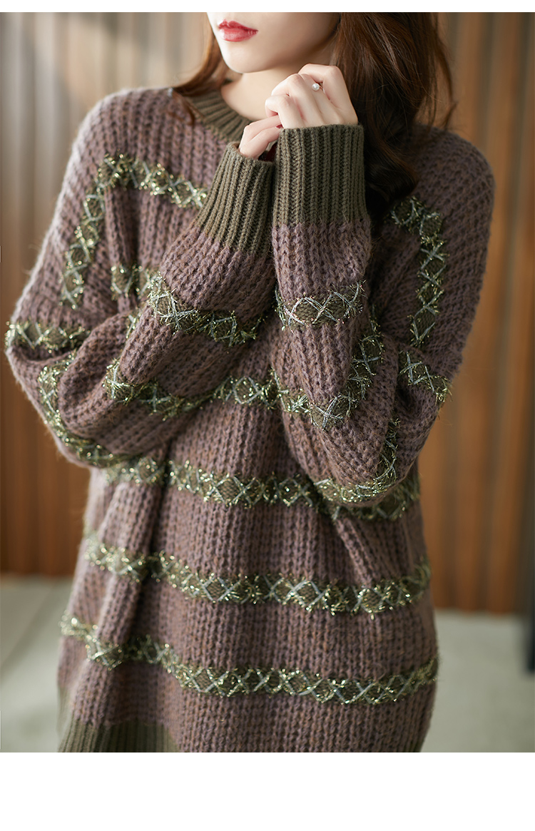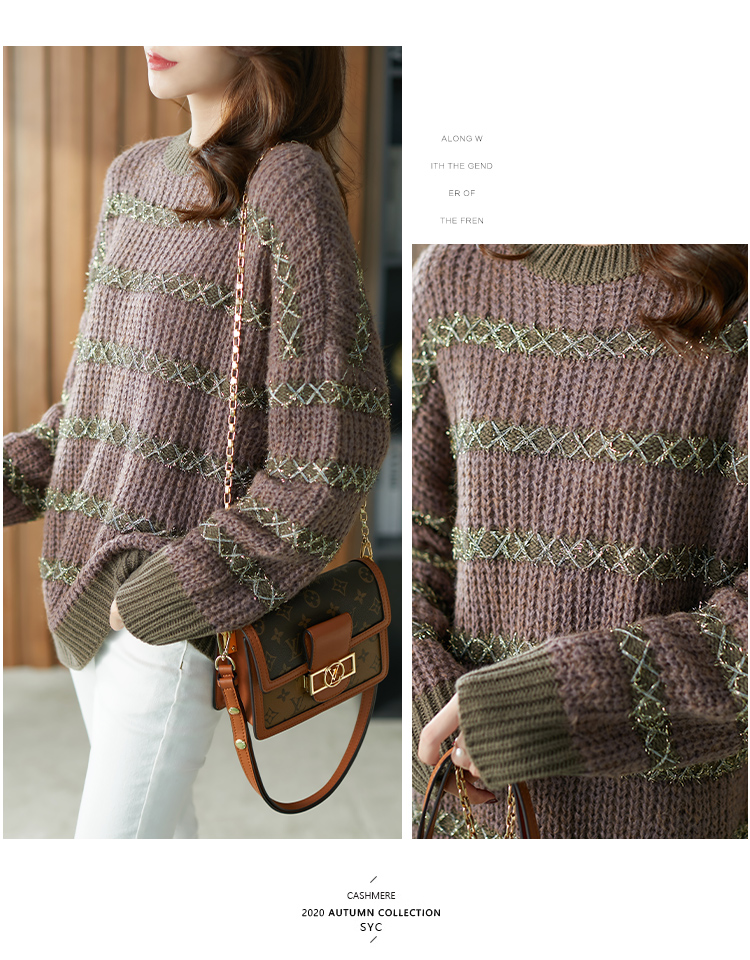 宽松毛衣女套头慵懒2023春秋新款时尚彩线条纹针织打底衫外穿