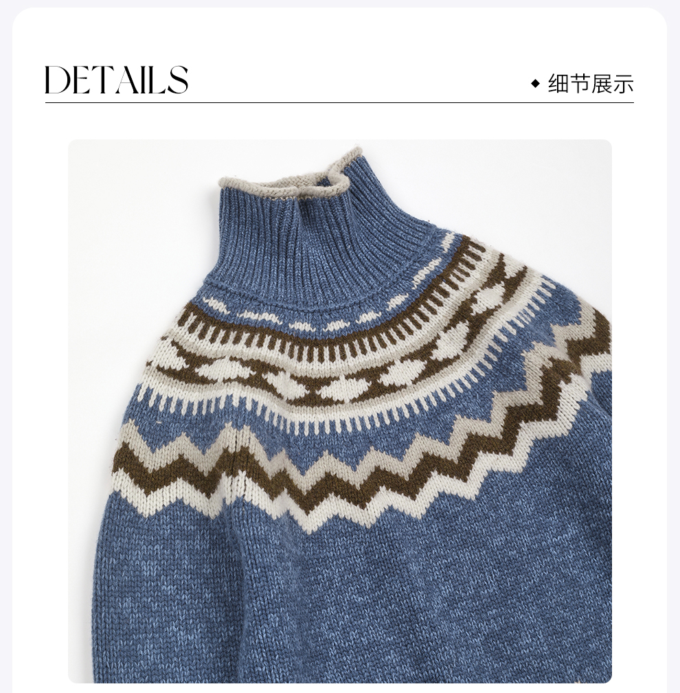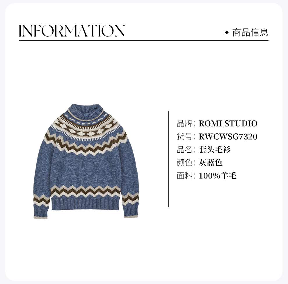 ROMI STUDIO复古费尔岛灰蓝羊毛衣松弛羊毛针织毛衫RWCWSG7320