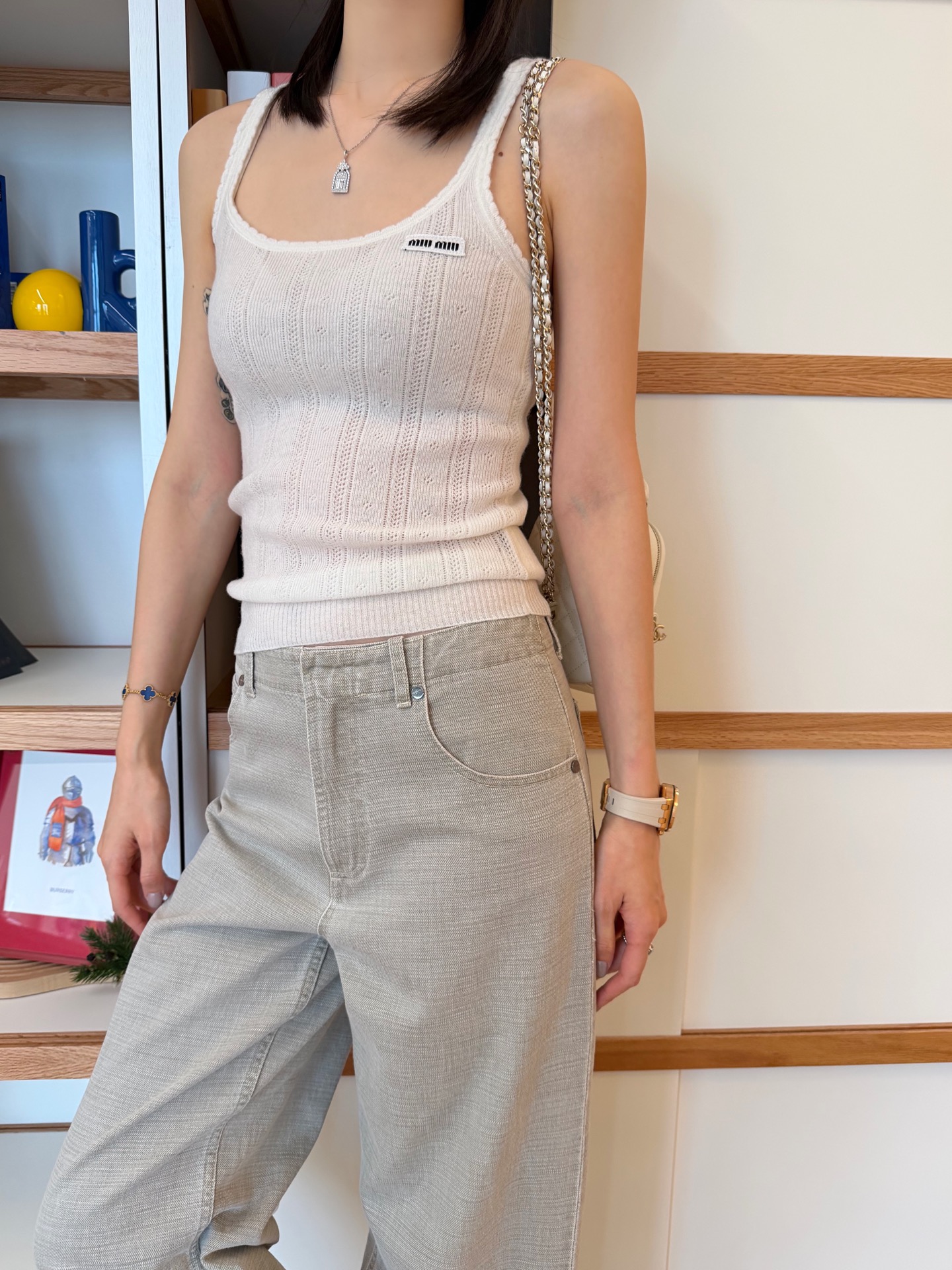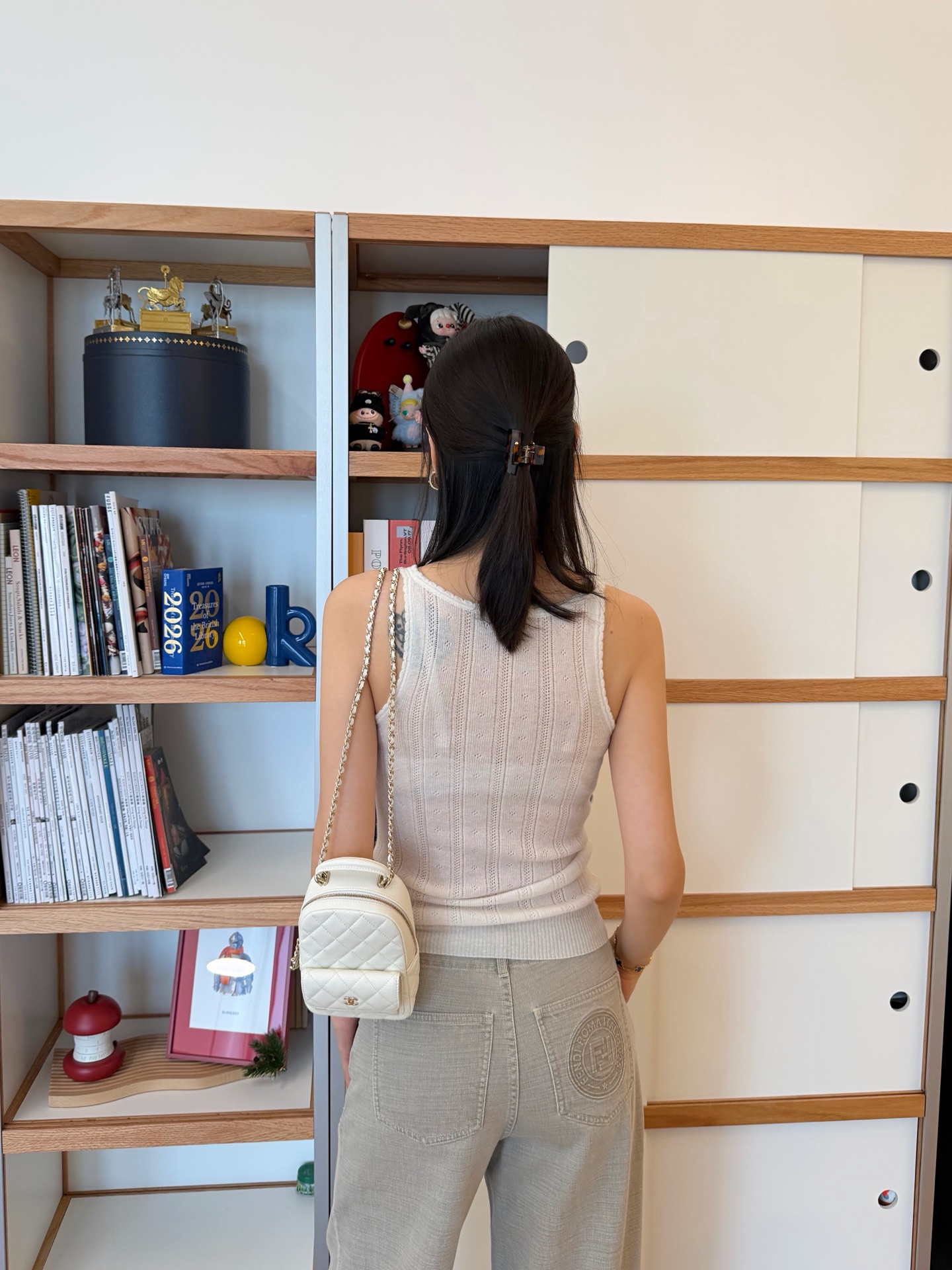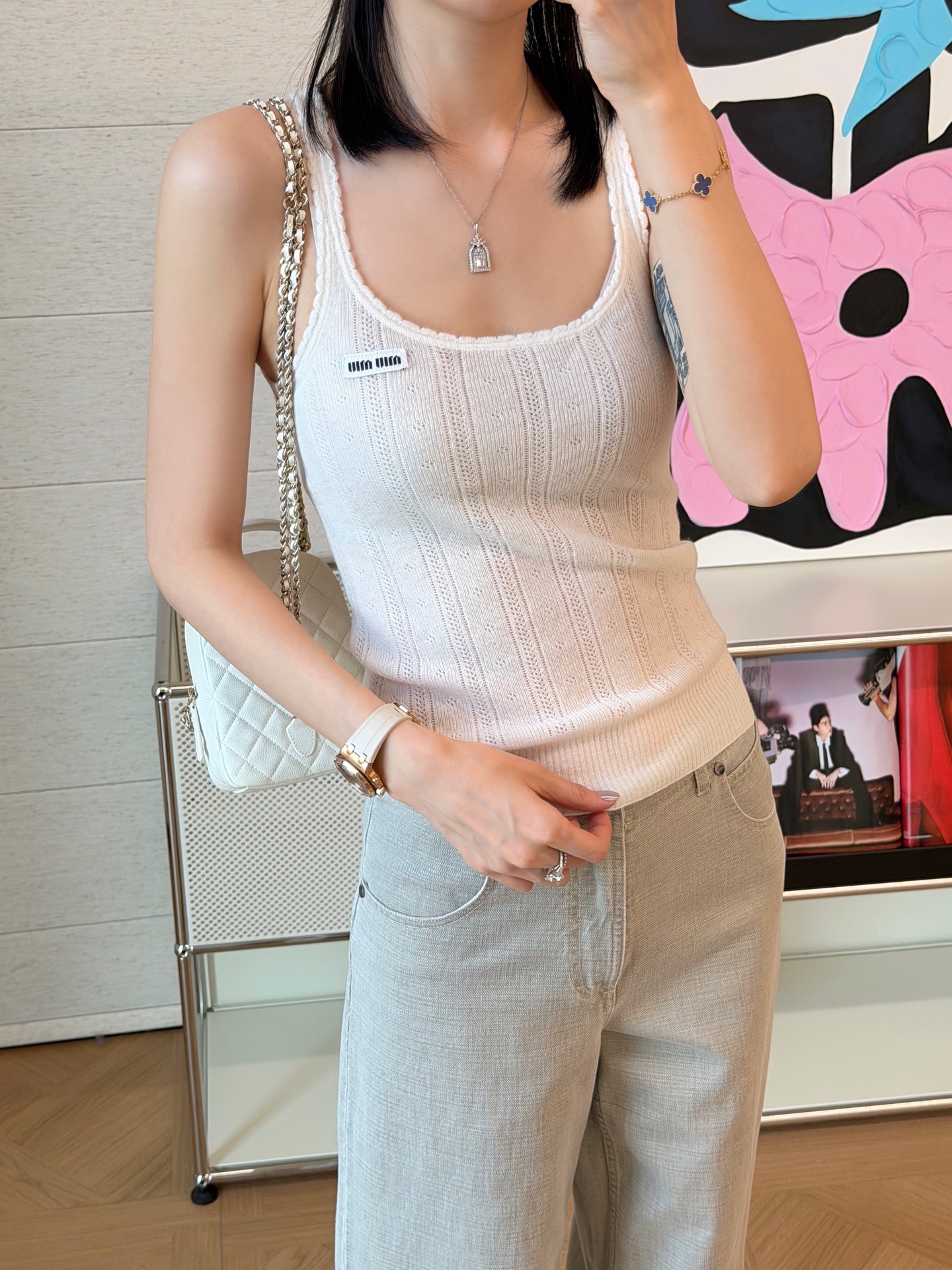 【新款发售】最新款徽标字母背心🆕 真的很难不让人爱上😜 羊绒纱线亲肤超软糯😉🔜 正面徽标细节打造率性时尚感✨ 剪裁垂顺流畅,细肩带设计简约大气且流露女人味🫶🏻 轻松拉长颈部线条🤩 四季皆可穿✔️ 单穿时诠释性感与温柔💖 叠穿其他内搭则氛围感十足💯 绝对是衣橱必备🈵️ 时髦又显高级💫 尺码SML
