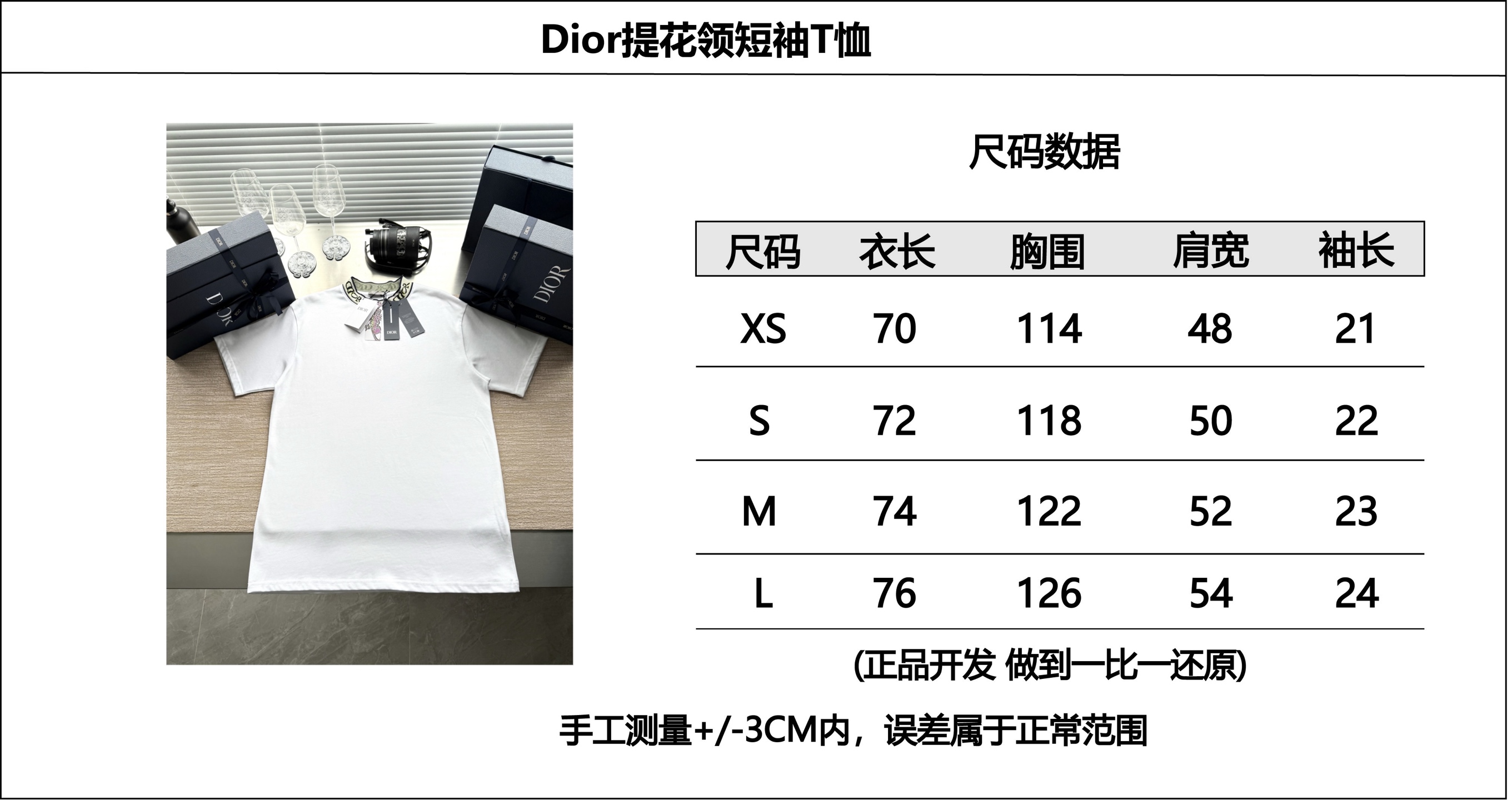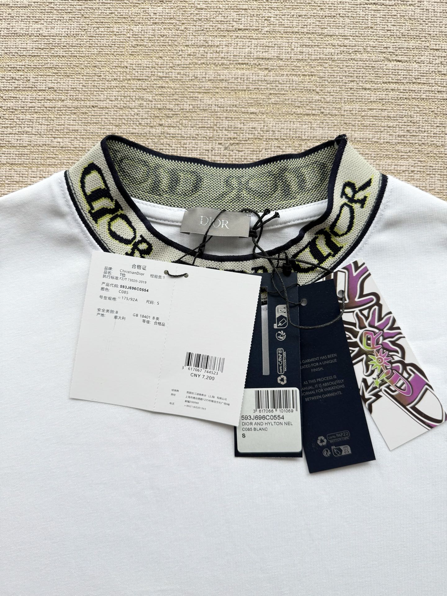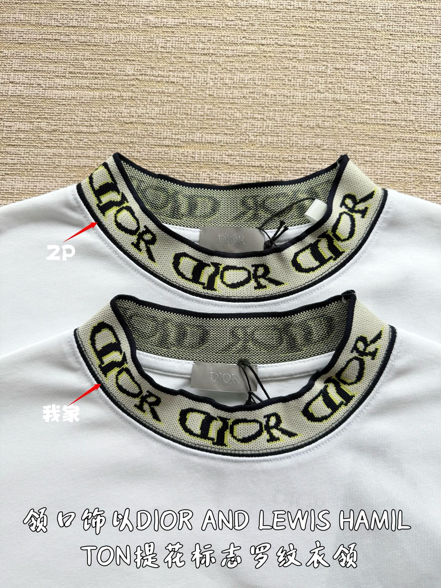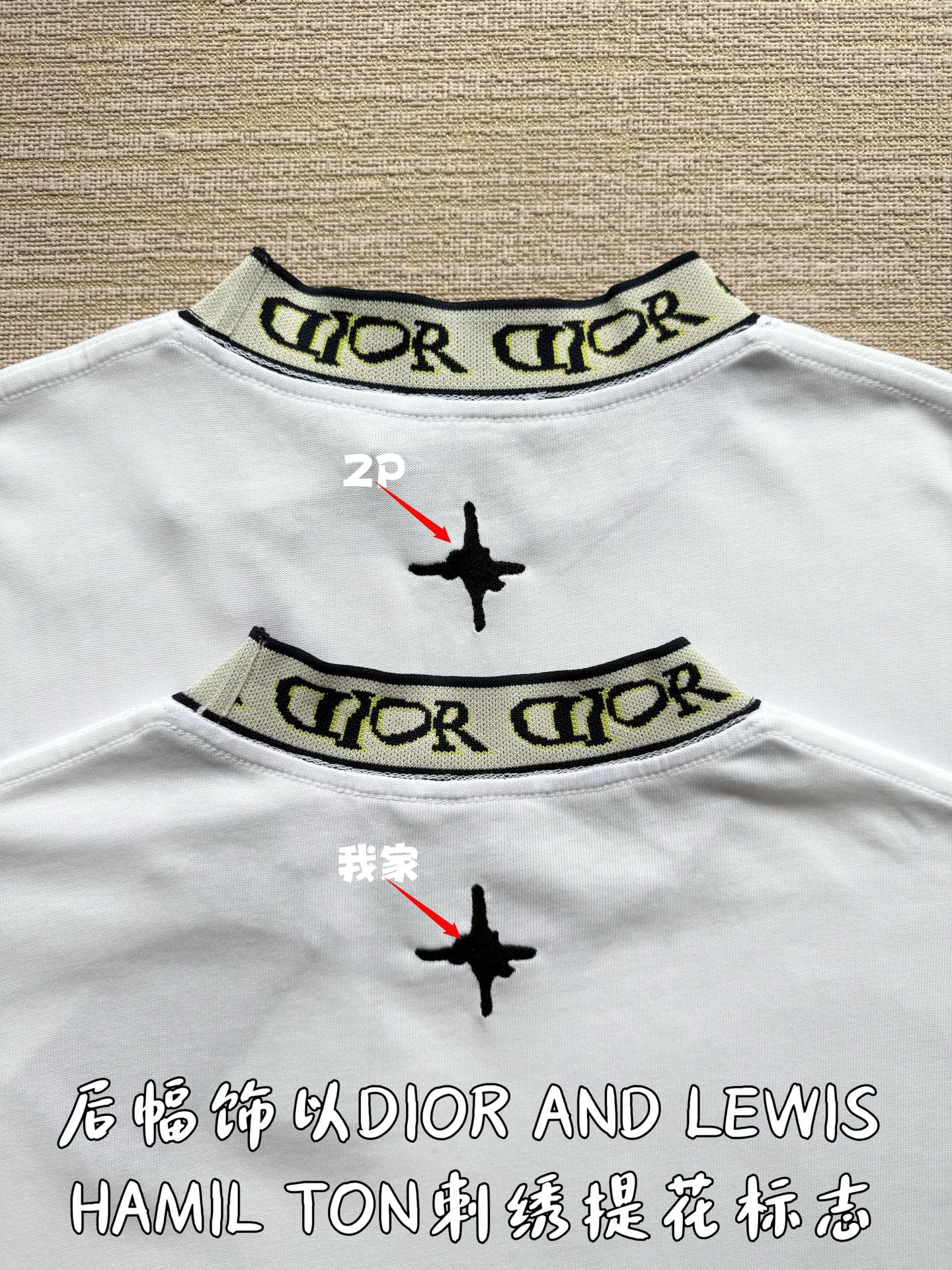 Dior25SS提花领短袖T恤‼️整件衣服7200购买Zp拆解打造,定制白色平纹针织面料,意大利制造,领口饰以DIOR AND LEWIS HAMIL TON提花标志裂纹衣领,袖口 下摆双层锁边超高密度走线,真正做到1:1copy 闭眼入 码数:XS S M L
