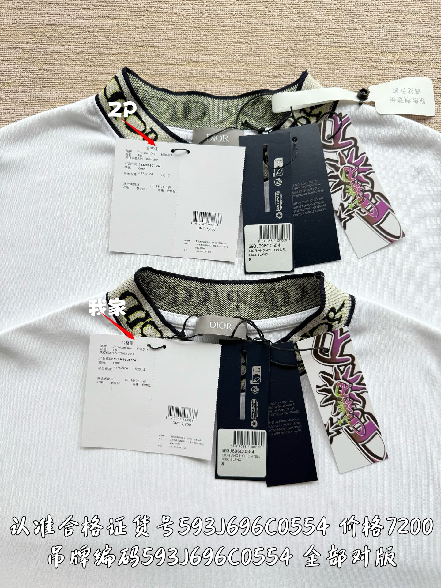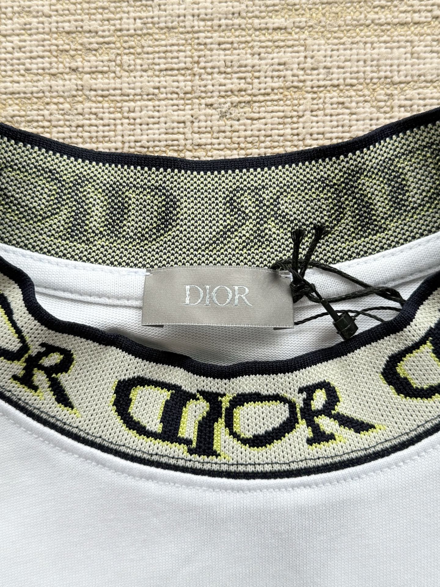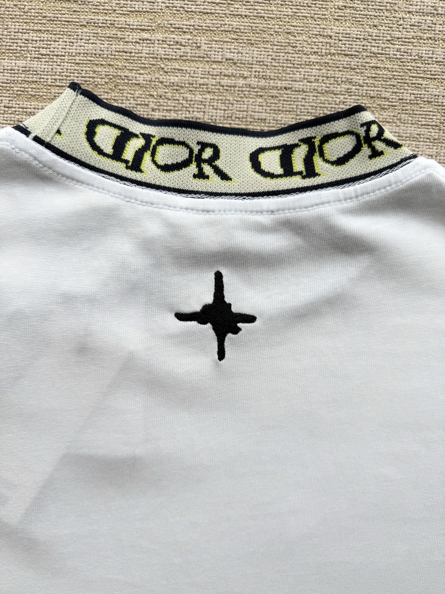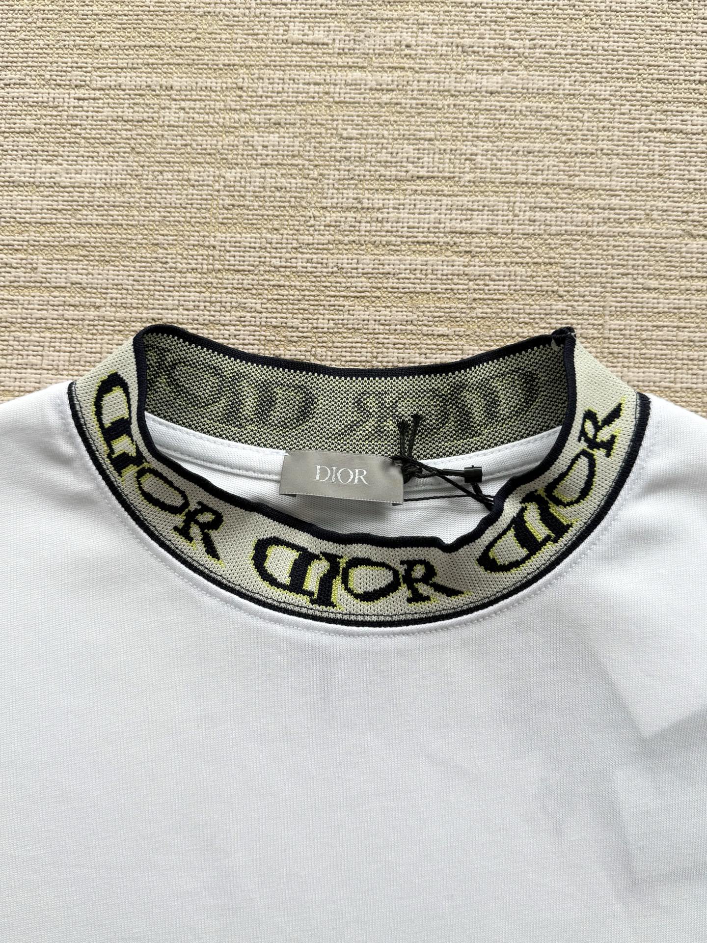 Dior25SS提花领短袖T恤‼️整件衣服7200购买Zp拆解打造,定制白色平纹针织面料,意大利制造,领口饰以DIOR AND LEWIS HAMIL TON提花标志裂纹衣领,袖口 下摆双层锁边超高密度走线,真正做到1:1copy 闭眼入 码数:XS S M L