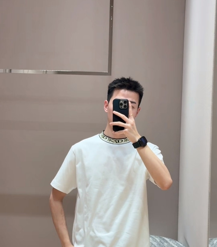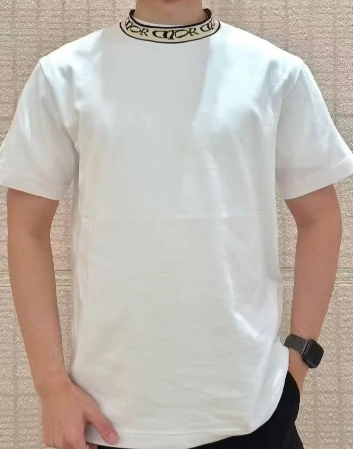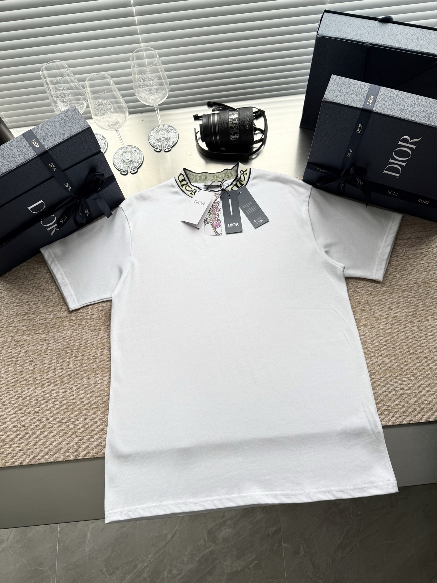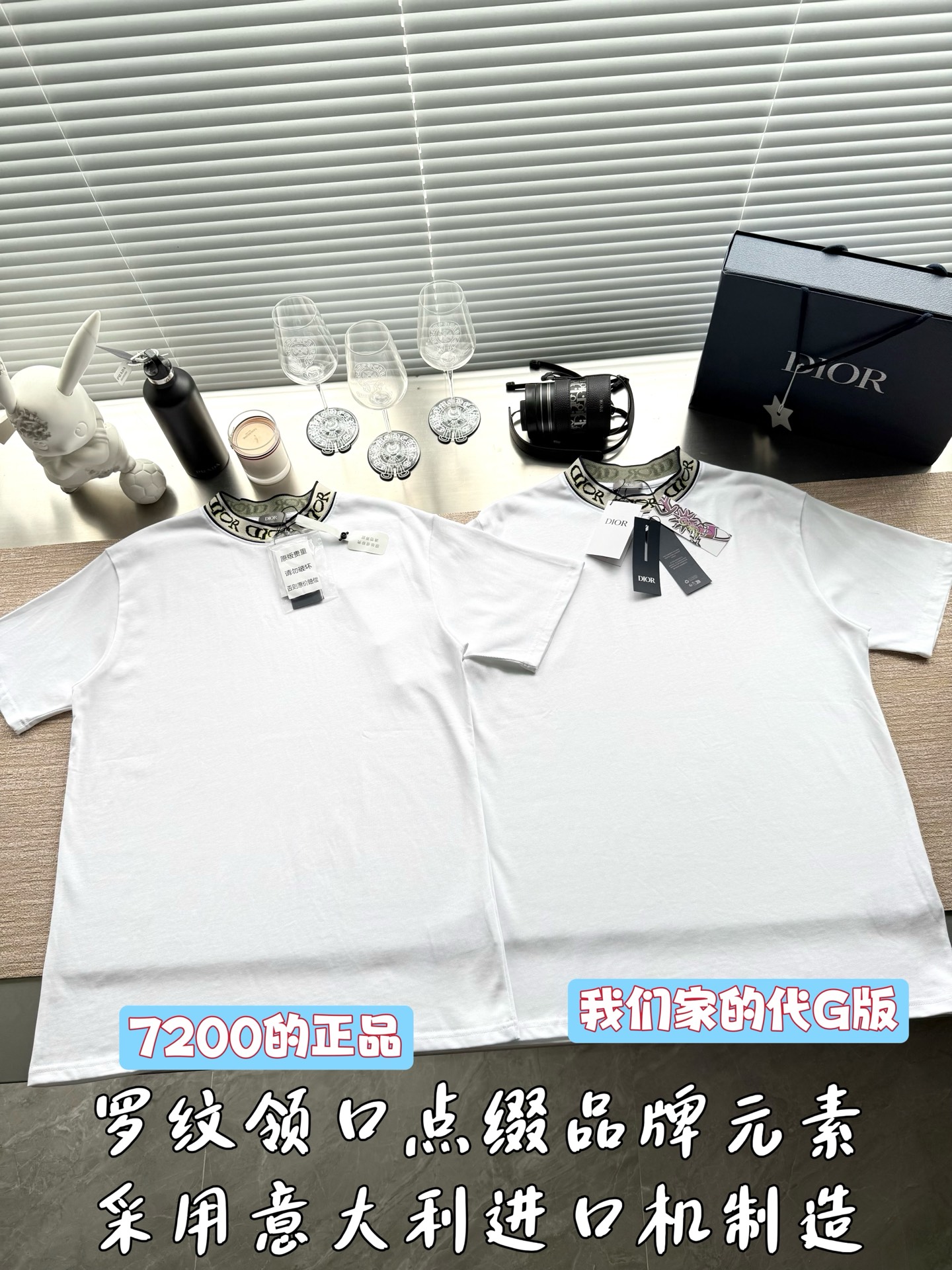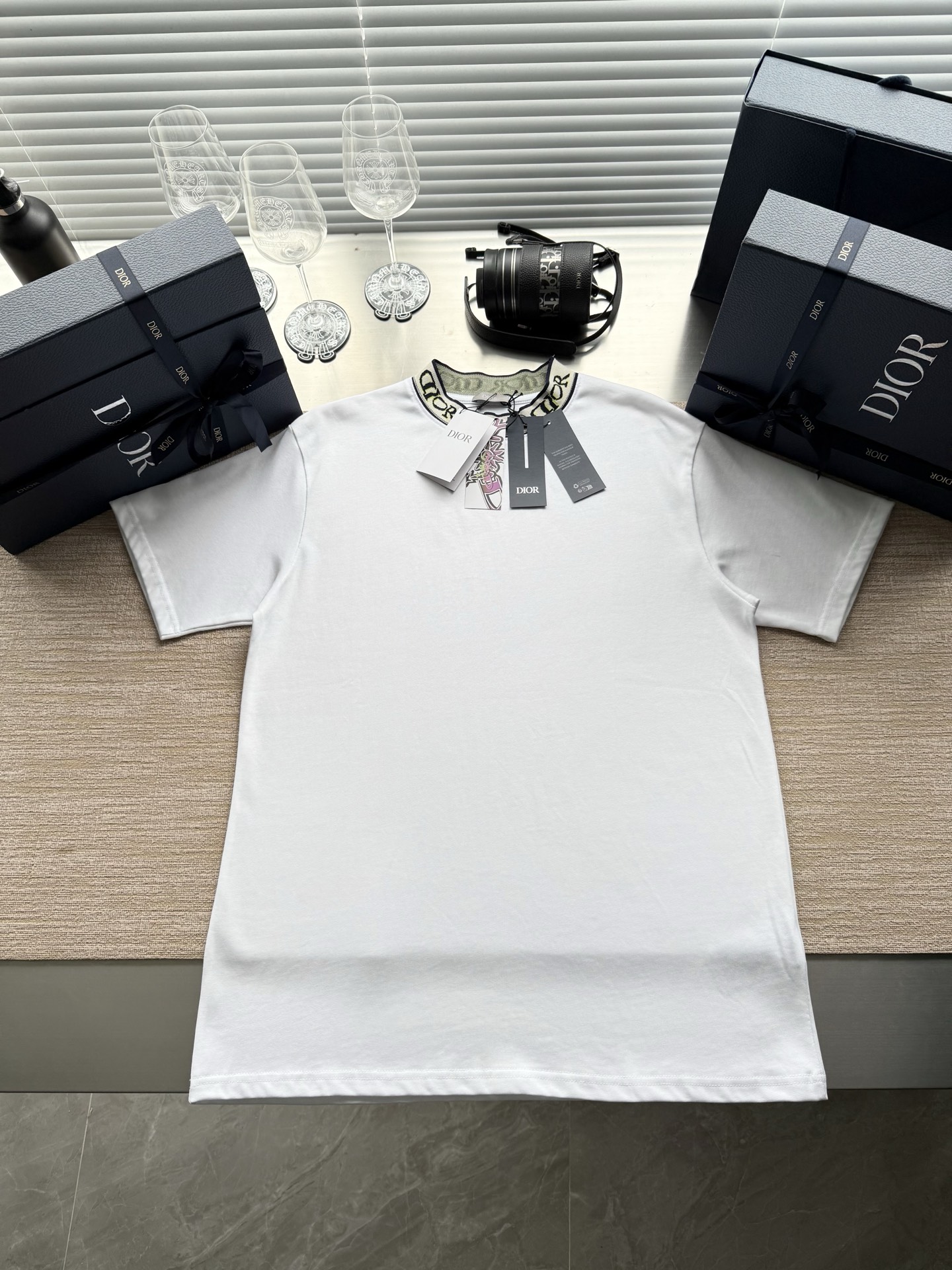 Dior25SS提花领短袖T恤‼️整件衣服7200购买Zp拆解打造,定制白色平纹针织面料,意大利制造,领口饰以DIOR AND LEWIS HAMIL TON提花标志裂纹衣领,袖口 下摆双层锁边超高密度走线,真正做到1:1copy 闭眼入 码数:XS S M L