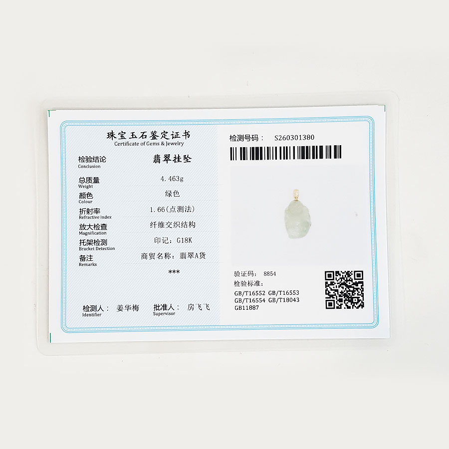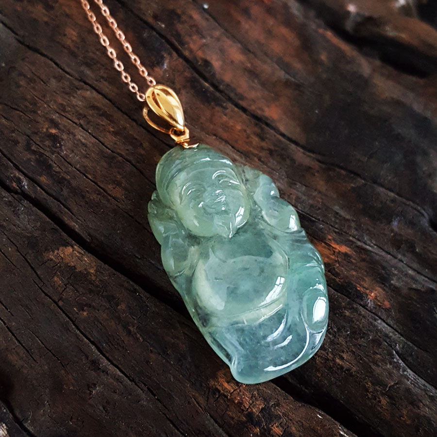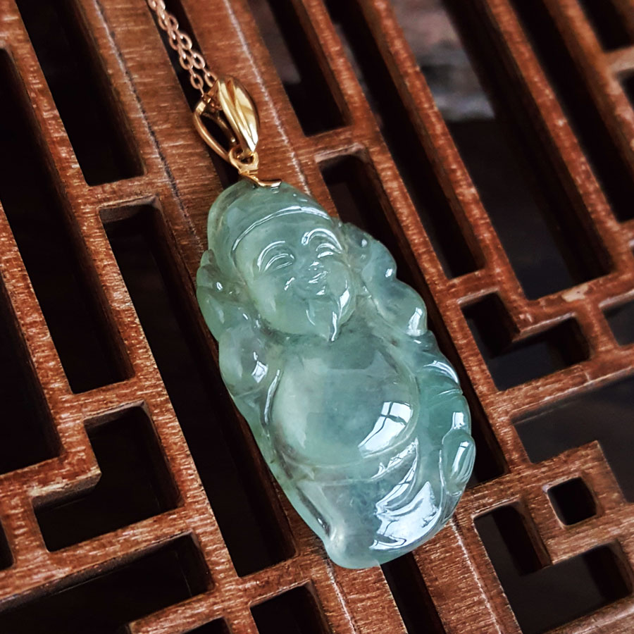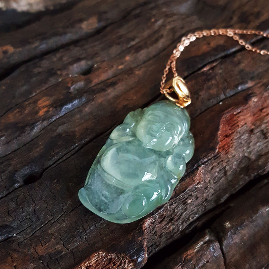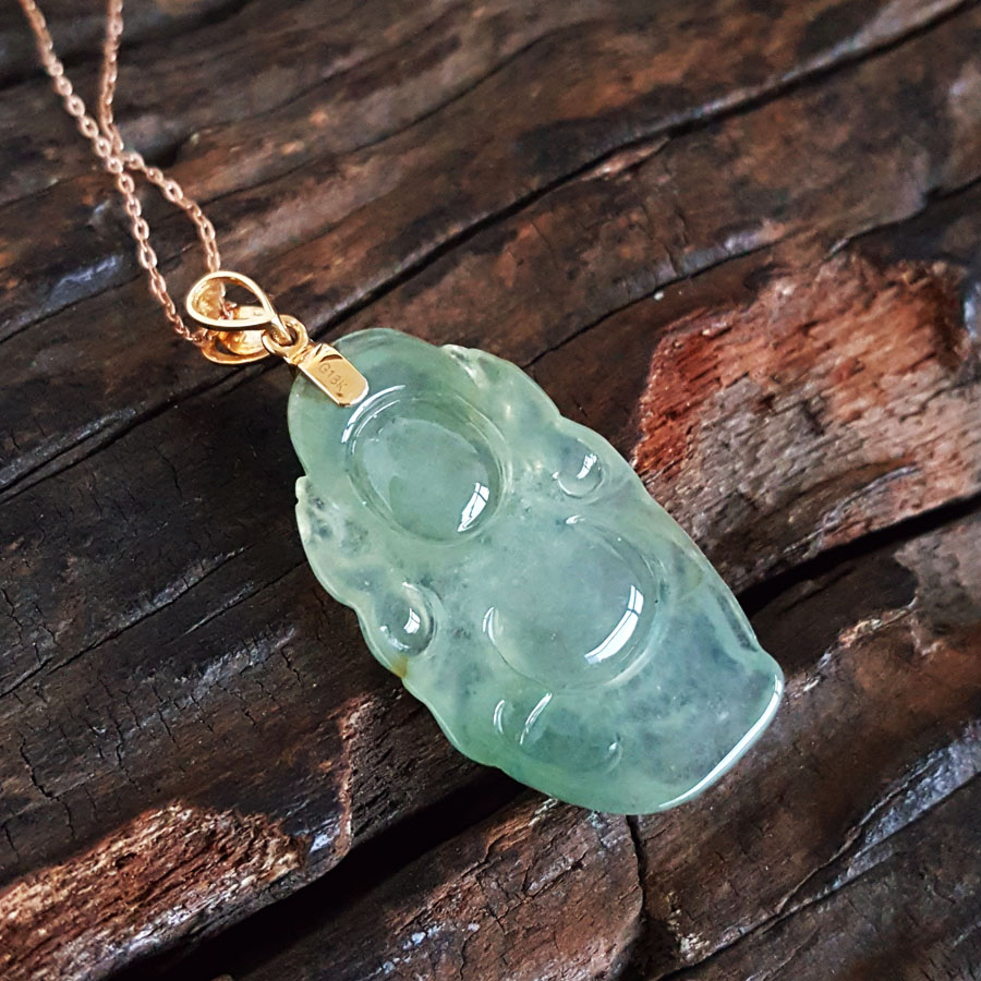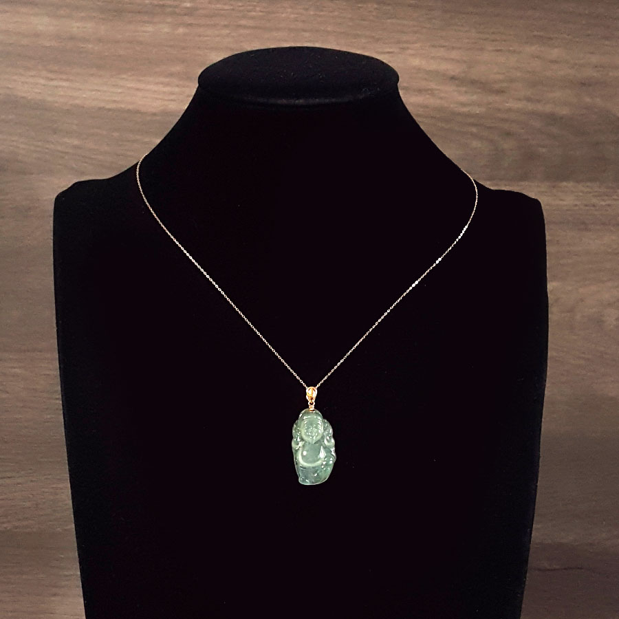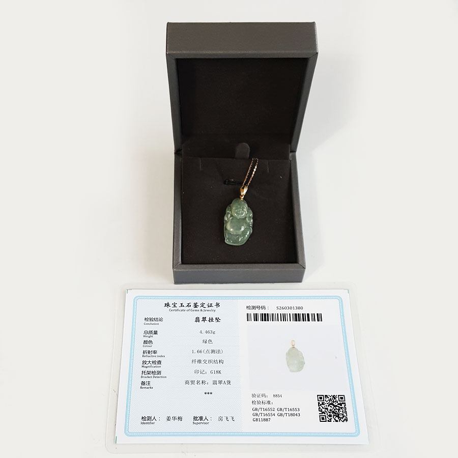 名称 | AU750黄金镶天然细腻冰种财神造型(招财纳福)翡翠吊坠项链 |