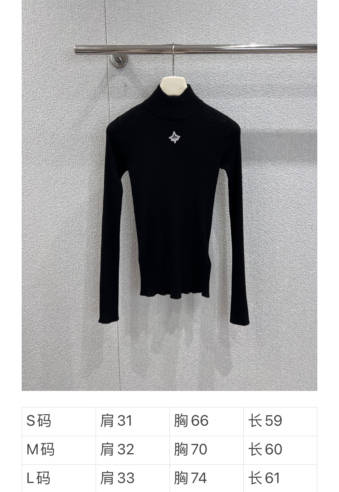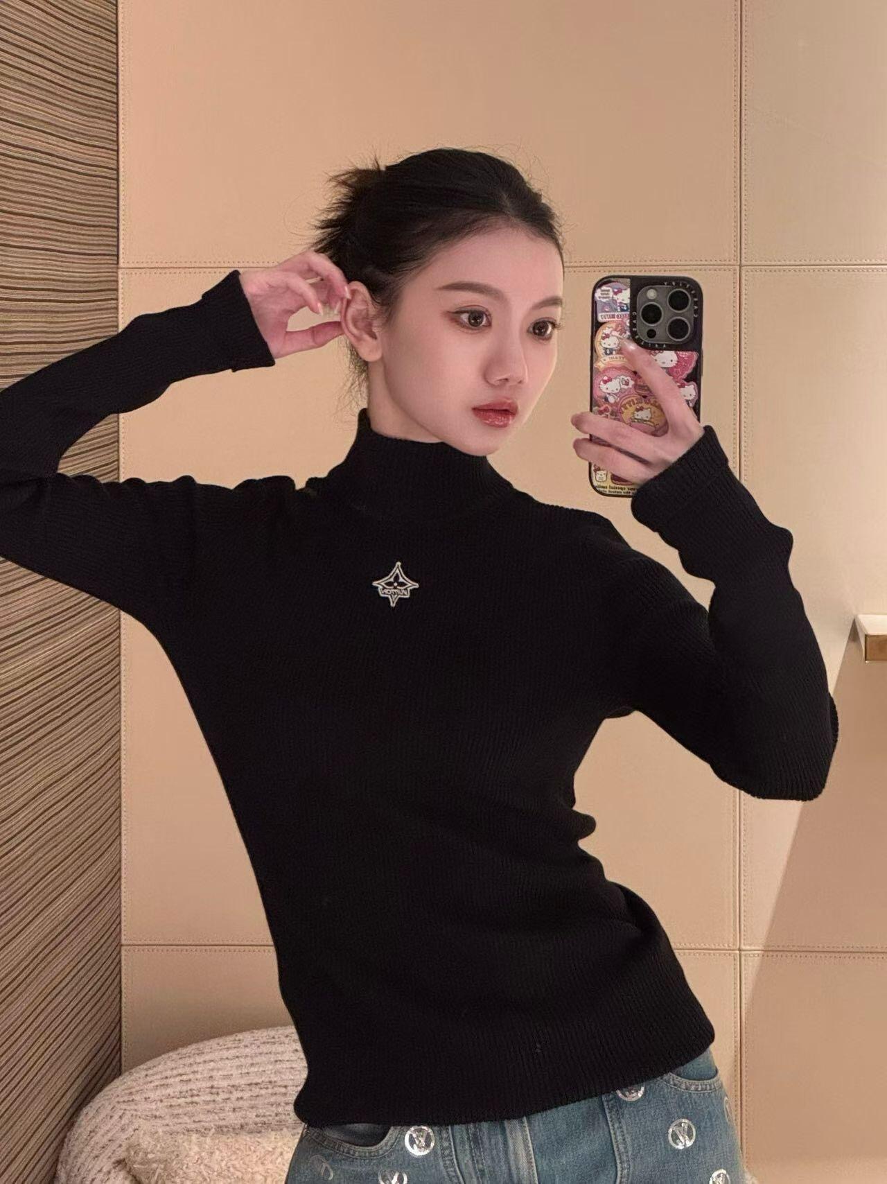Louis Vuitto* 25FW秋冬新款 标志性刺绣黑高领针织衫丨⚠独家yb开发!高版出品!精选细支羊毛混纺针织,胸前低调的星形刺绣,修身罗纹针织+贴合脖颈的高领版型,自带细腻弹性,贴肤不扎还能勾勒身材曲线;哑光黑调自带高级滤镜,耐穿不易起球,修身不紧绷的剪裁,塞裤腰显腿长,配短裙露腰线,叠穿大衣/羽绒服也不会臃肿。现货发售S/M/L