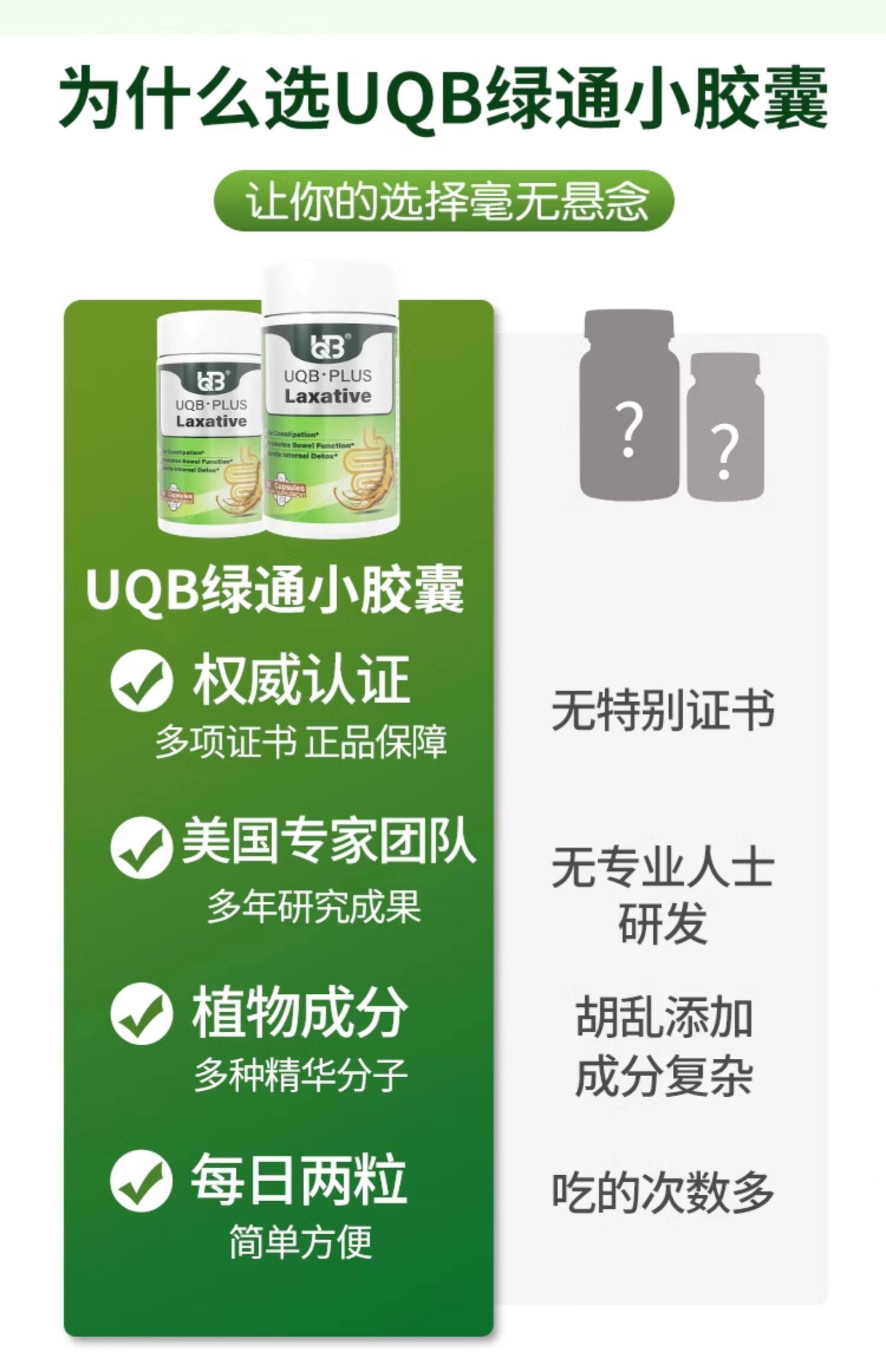 跨境进口|UQB美国原装进口通便胶囊 植物成分 润肠通便(五瓶装)