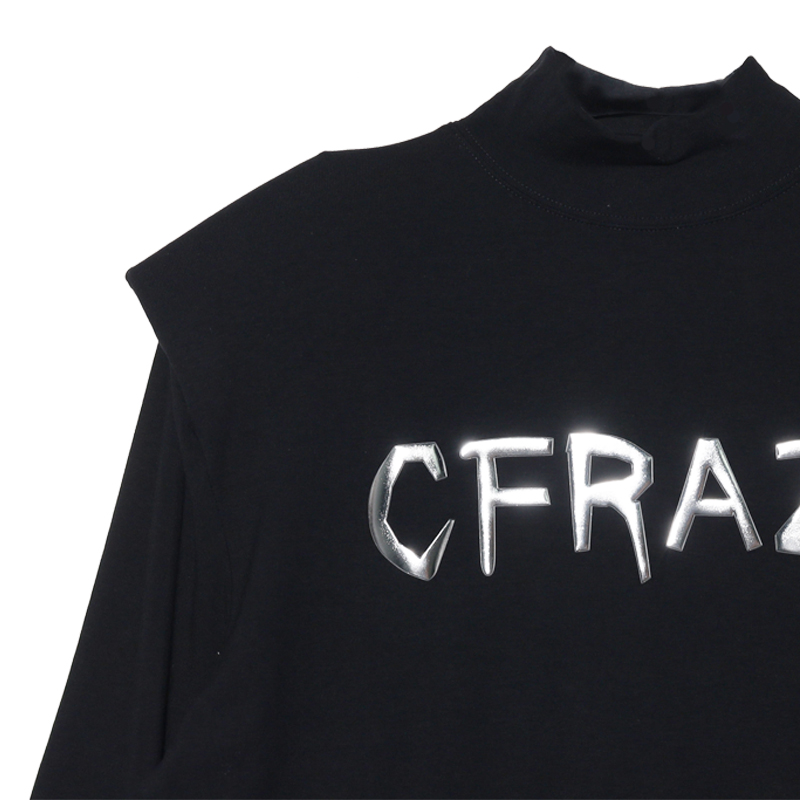 WY174新款半高领长袖高级感潮流字母垫肩情侣T恤百搭宽松男女上