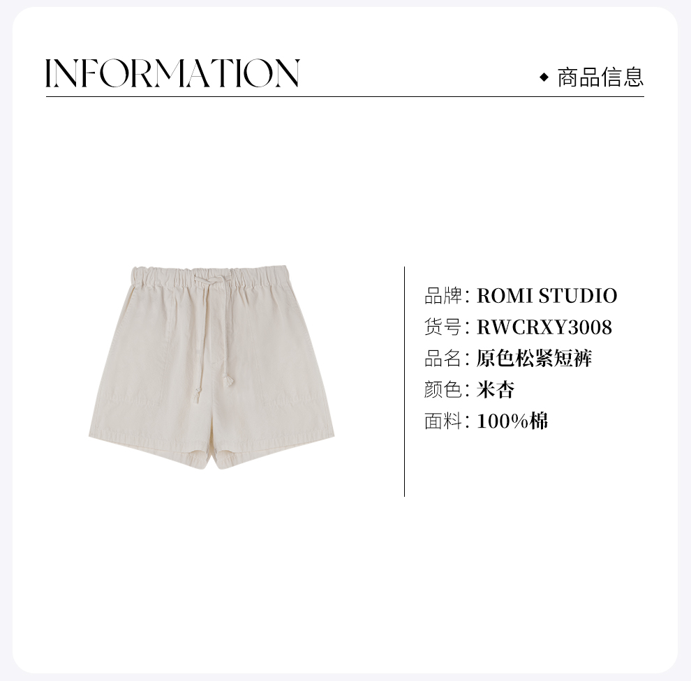 ROMI STUDIO天然未染色新疆长绒棉松紧腰复古洗水短裤RWCRXY3008(现货)