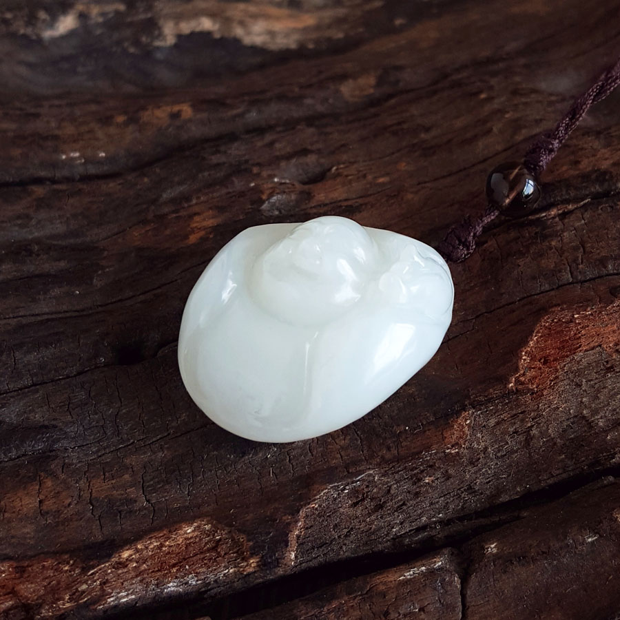 名称 | 天然新疆料细腻一级白油润度佳弥勒佛和田玉吊坠项链 |