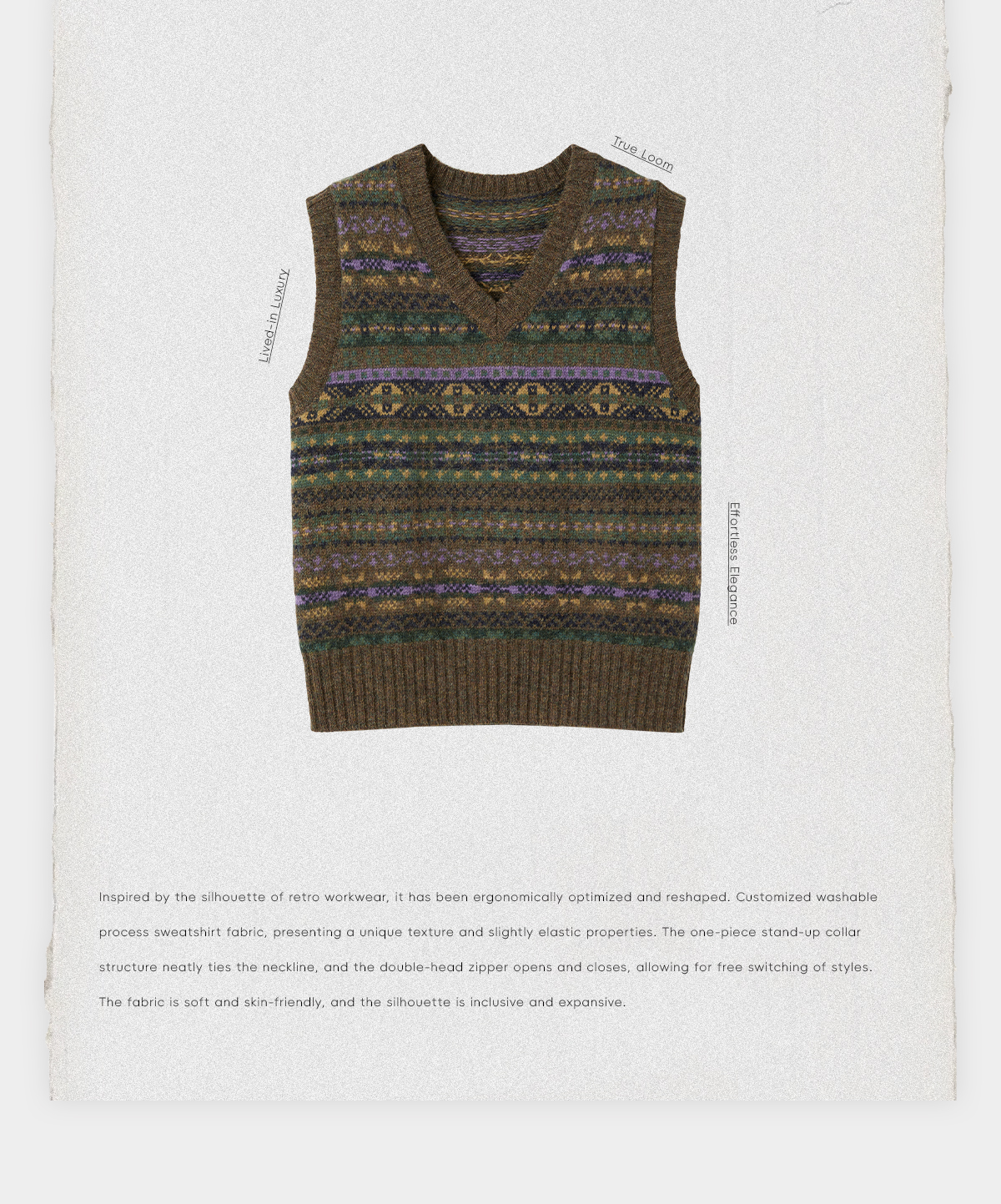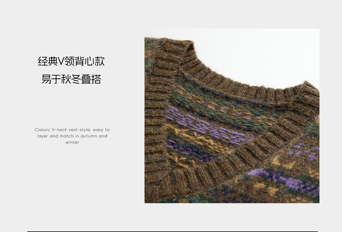 ROMI STUDIO“复古色彩”100羊毛费尔岛温暖毛织背心马甲RWCASZ4917