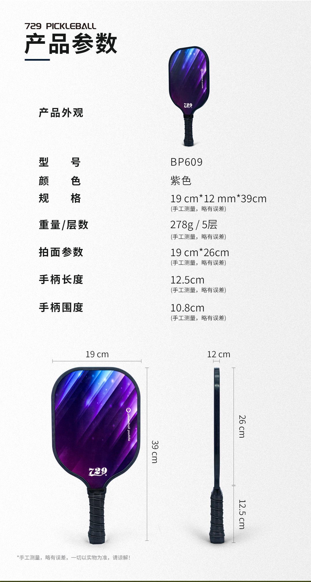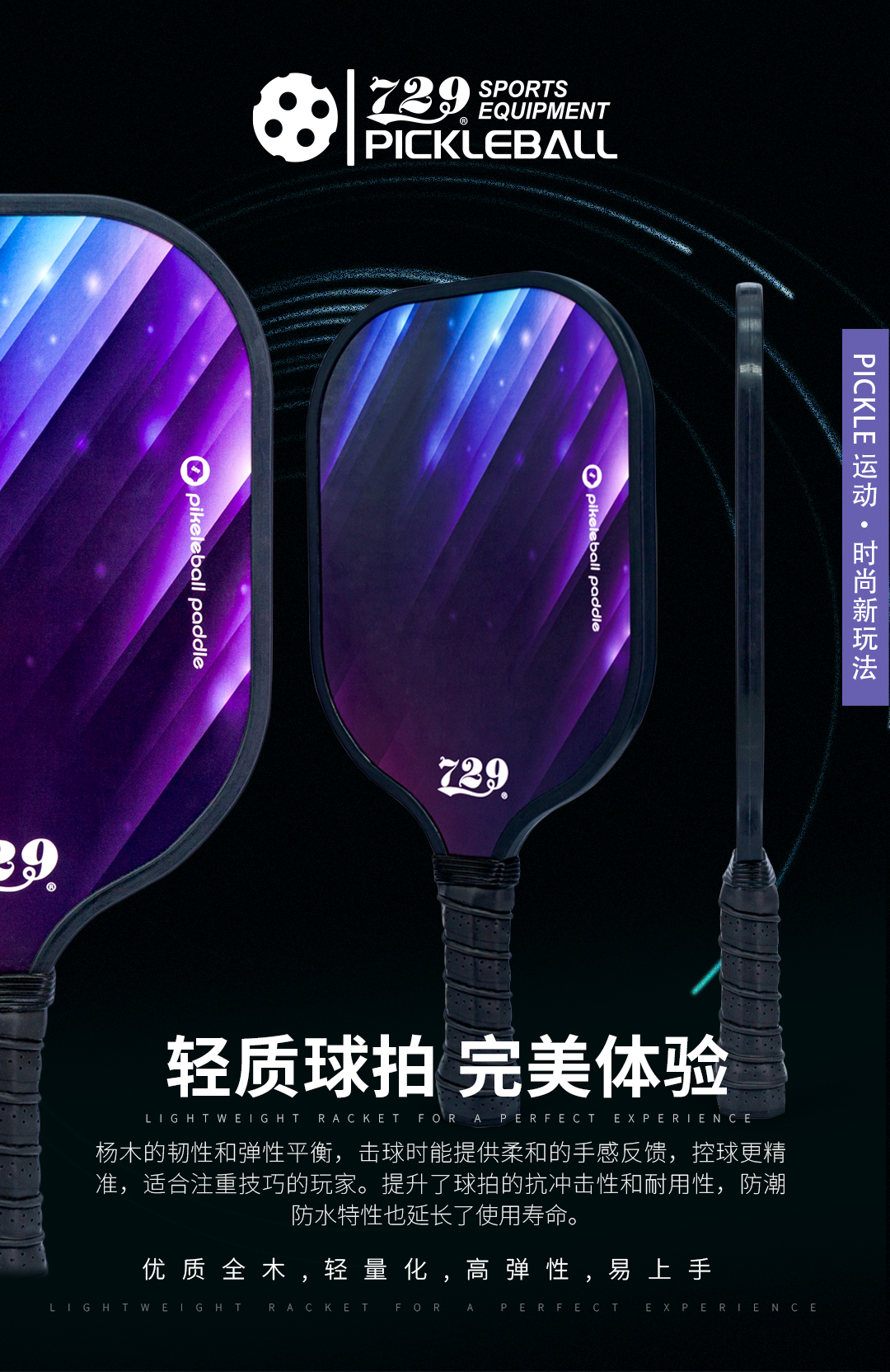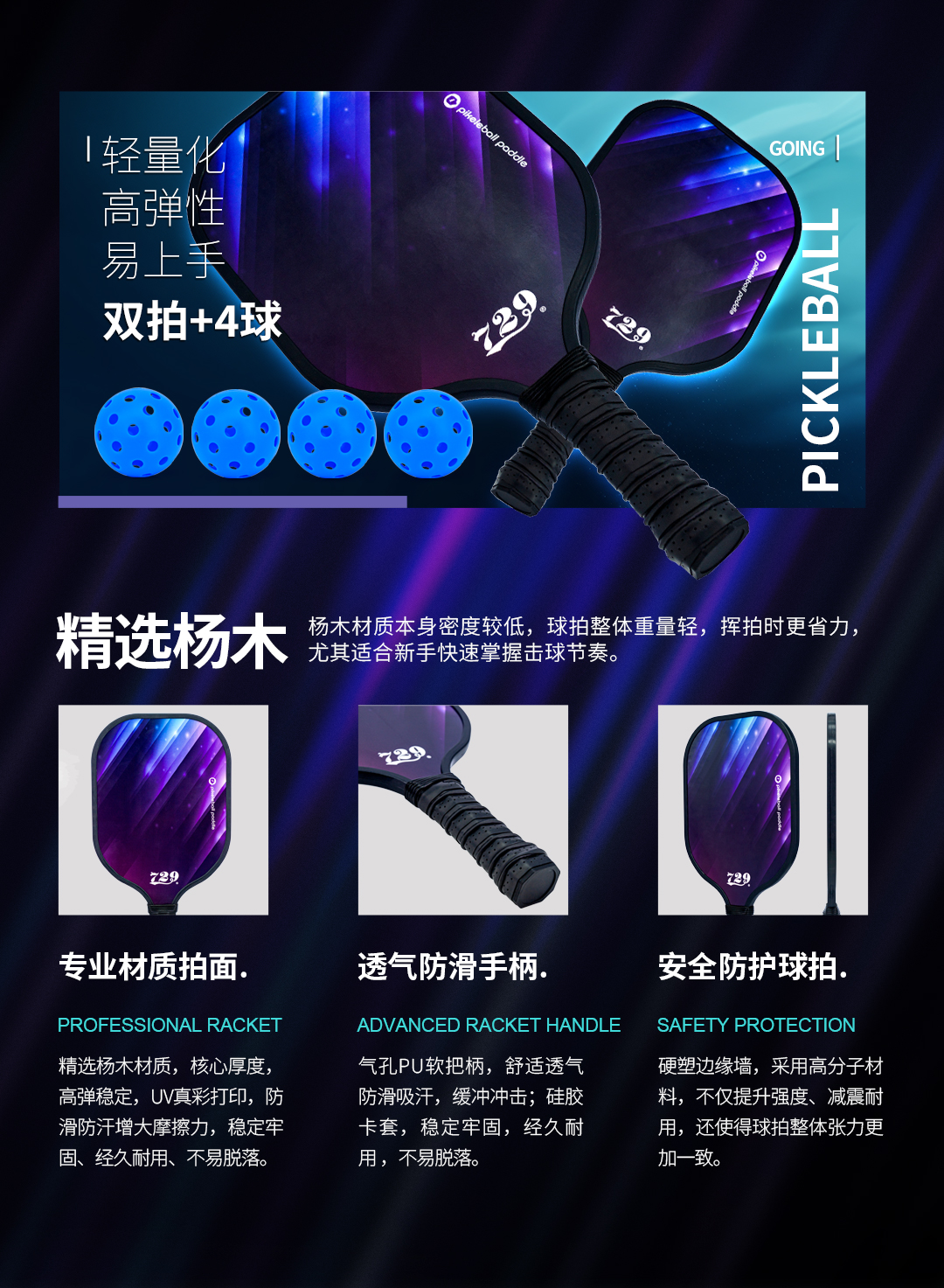 [2拍送4球] 友谊729 匹克球609型五层杨木底板耐打耐磨专业匹克球拍大童成人室内外通用套装