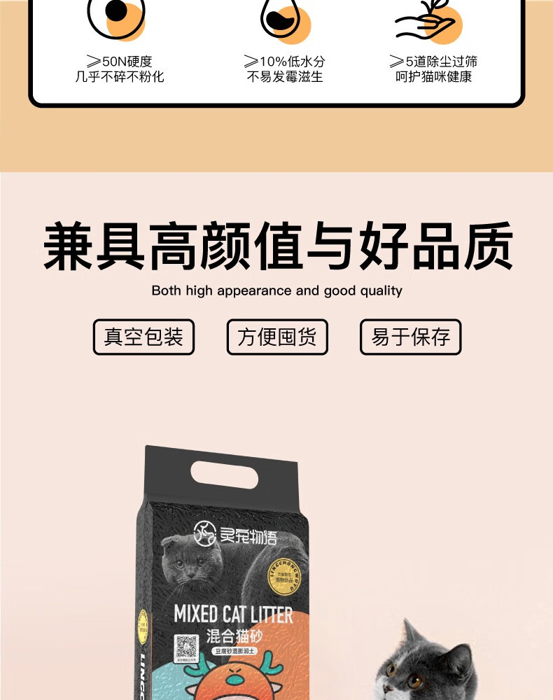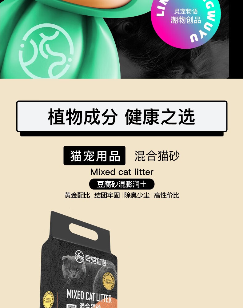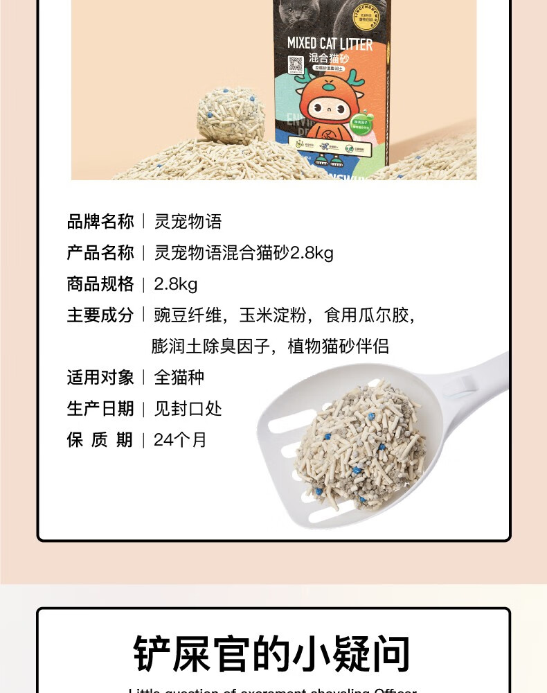 灵宠物语宠物用品混合猫砂2.0原味2.8kg*6袋