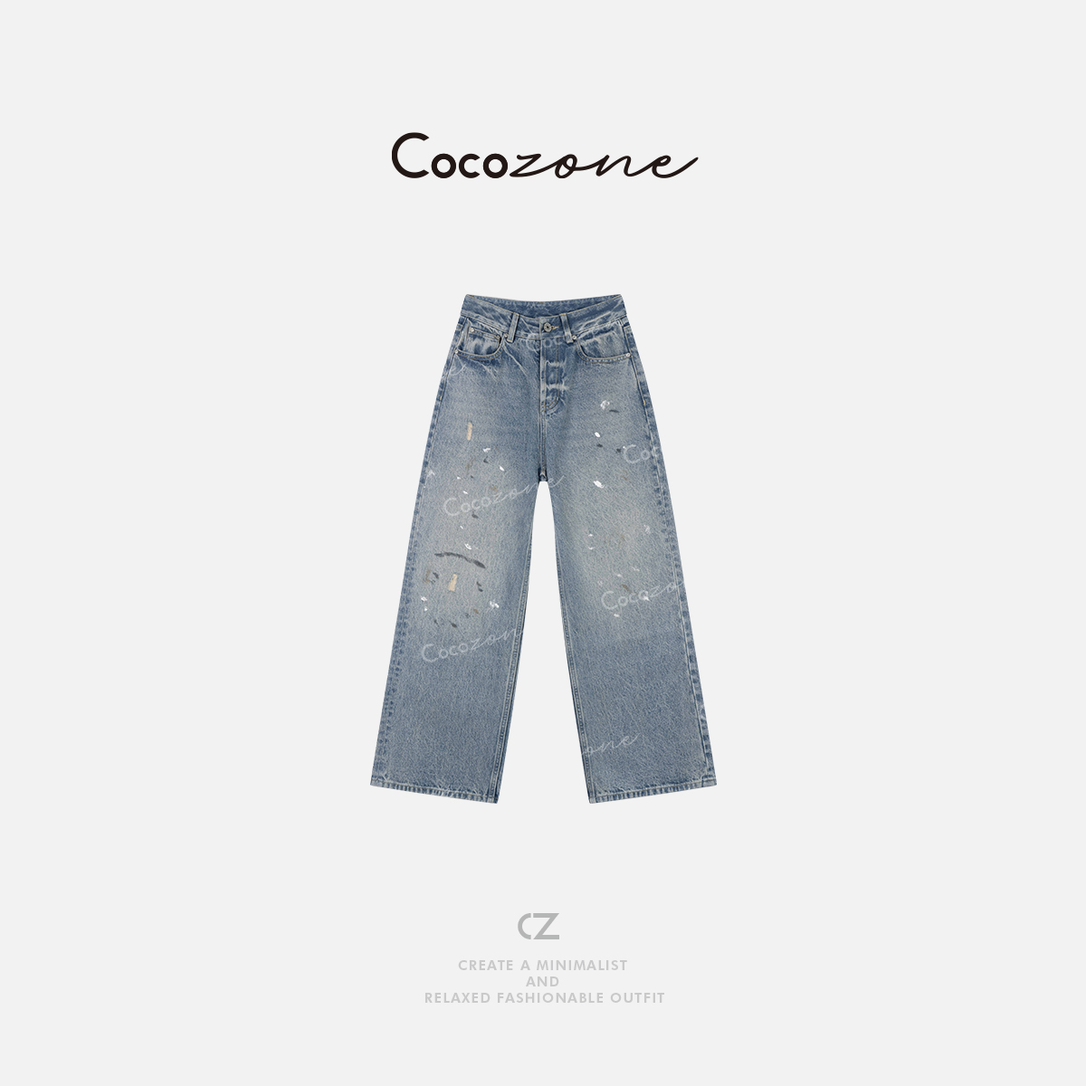 COCO ZONE 2025美式复古水洗磨破直筒牛仔裤CD2A0606