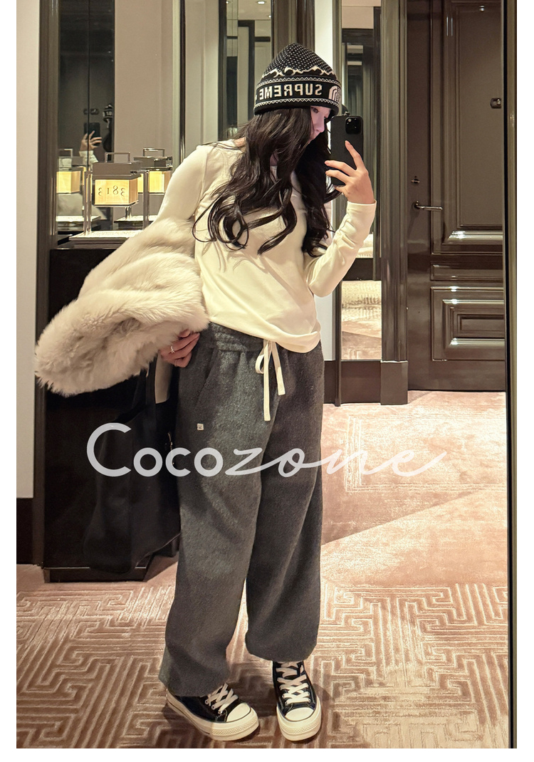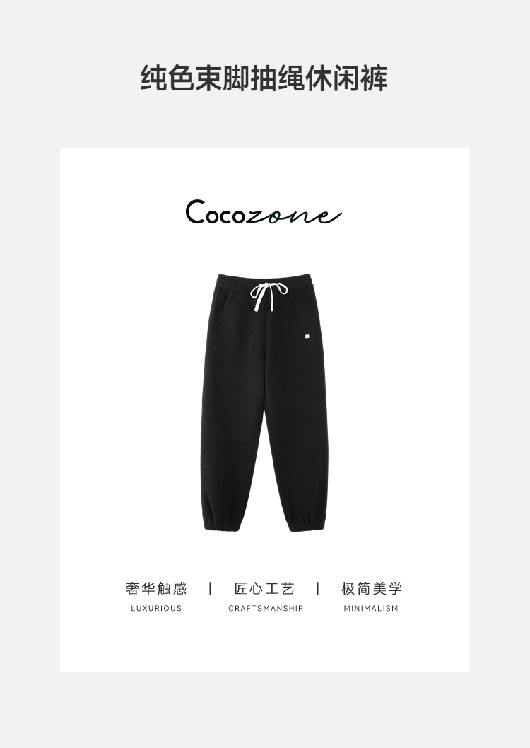 COCO ZONE 刘 一一 "笑脸卫裤"纯色束脚抽绳休闲裤 CD1A1714